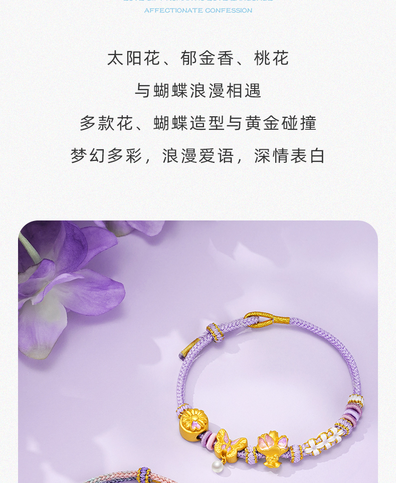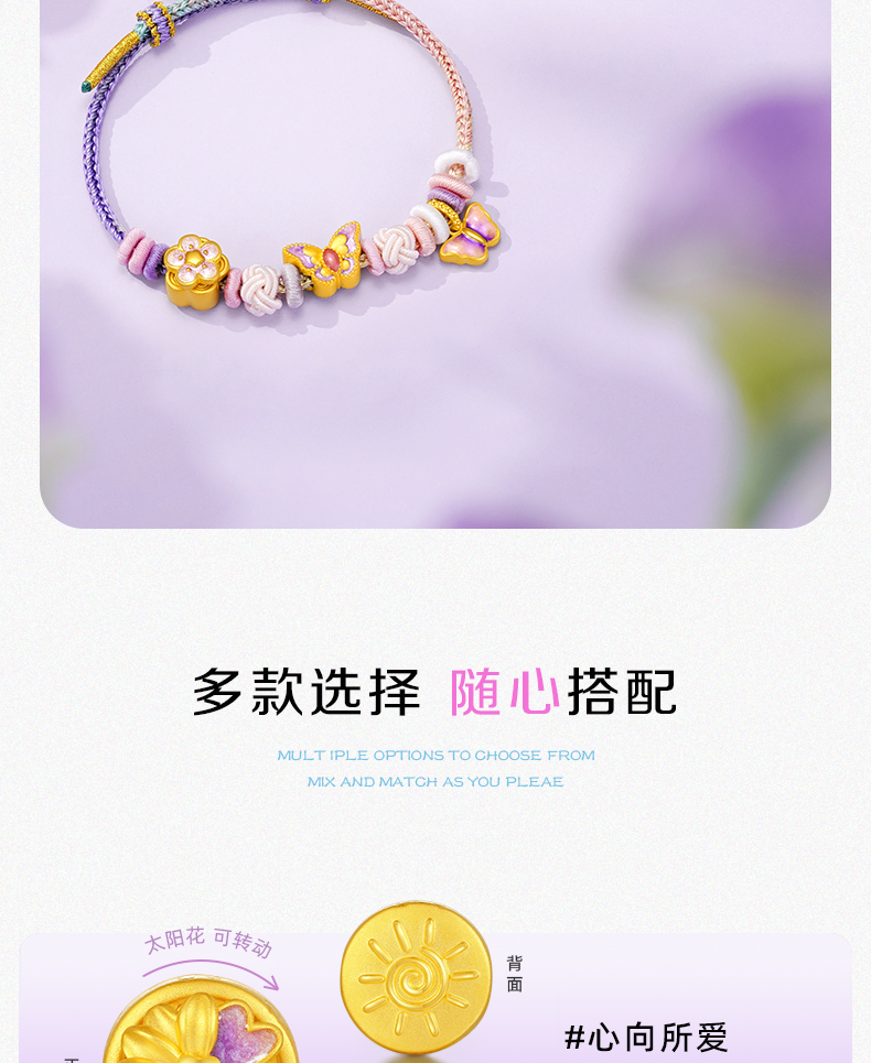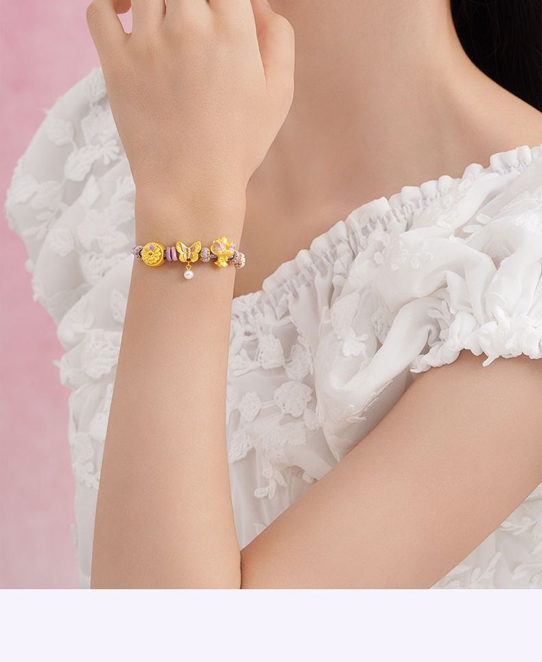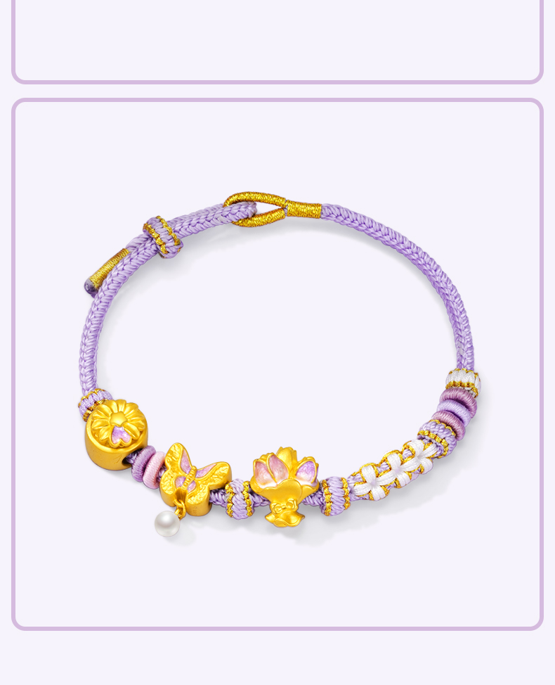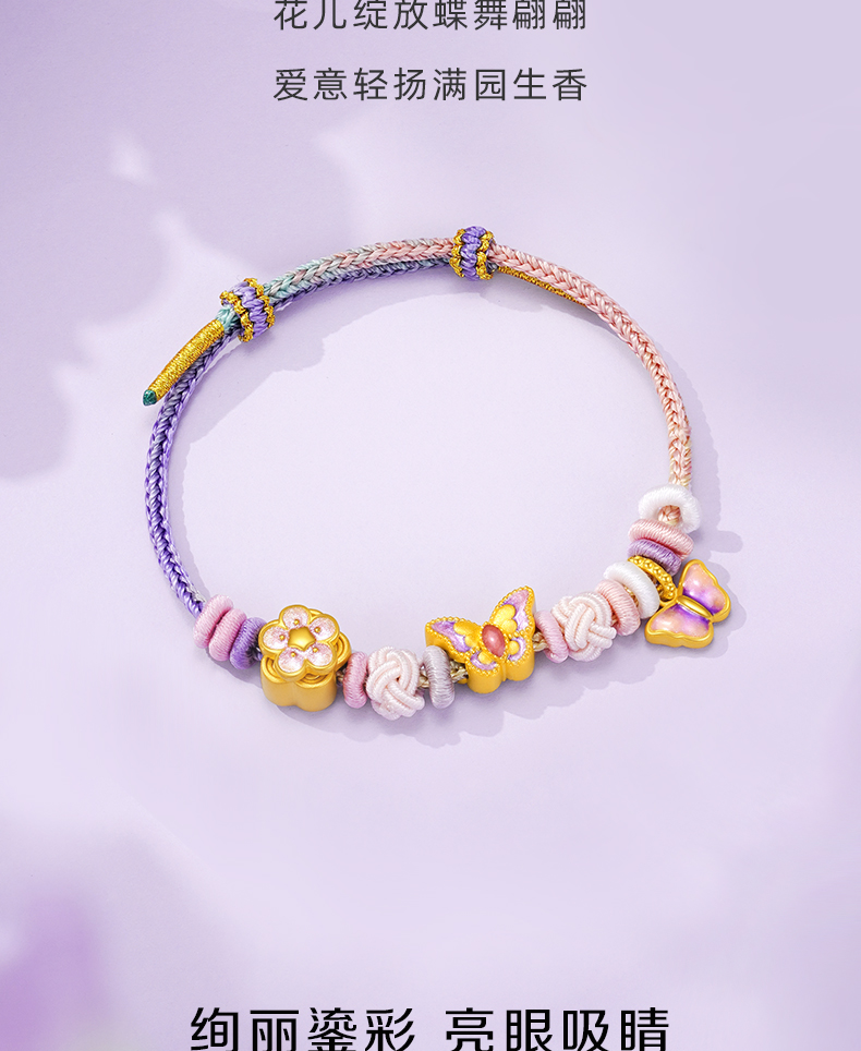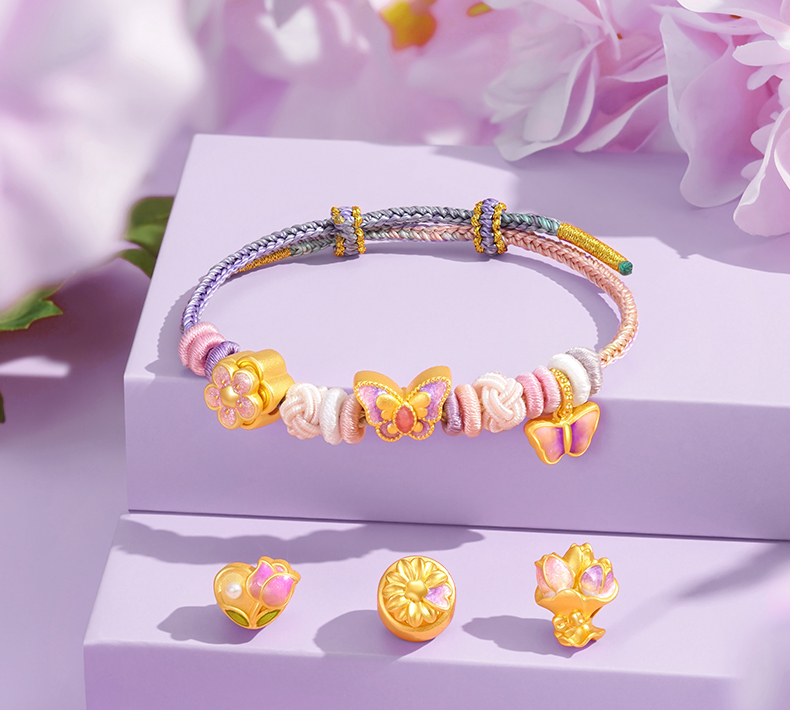 「LOVESTAR-爱的礼物」黄金珐琅转运珠 足金蝴蝶花朵郁金香桃花手串手绳