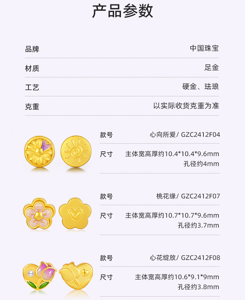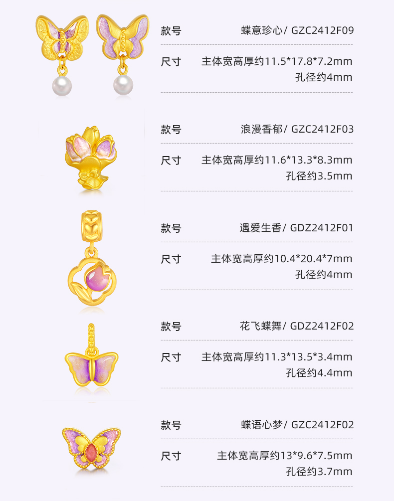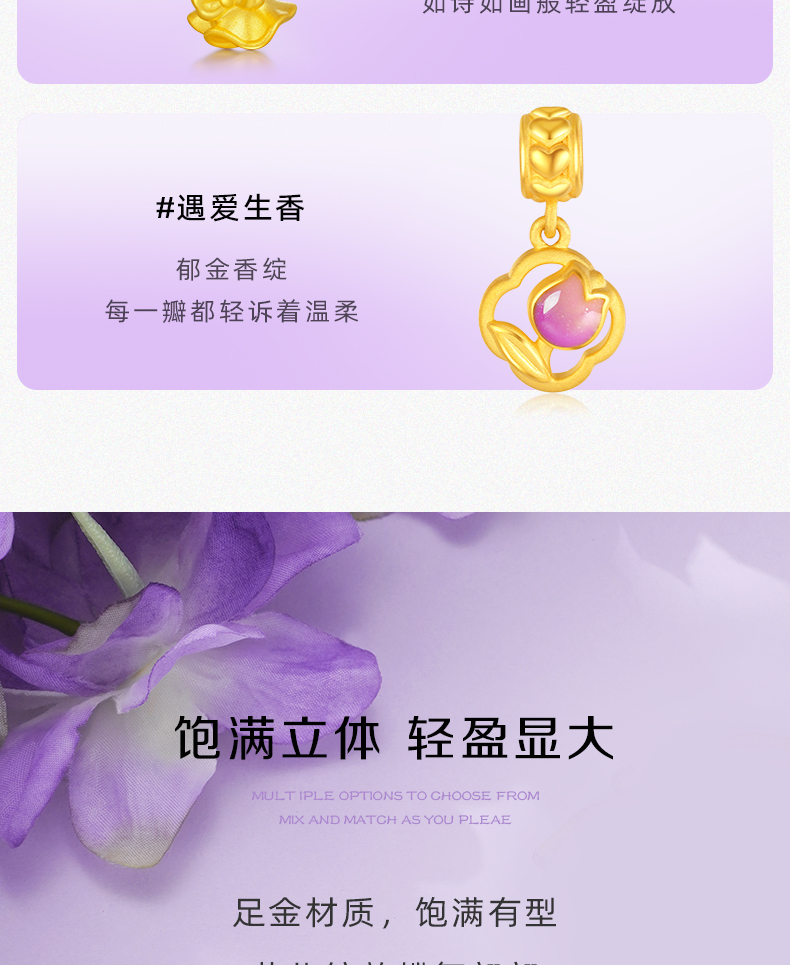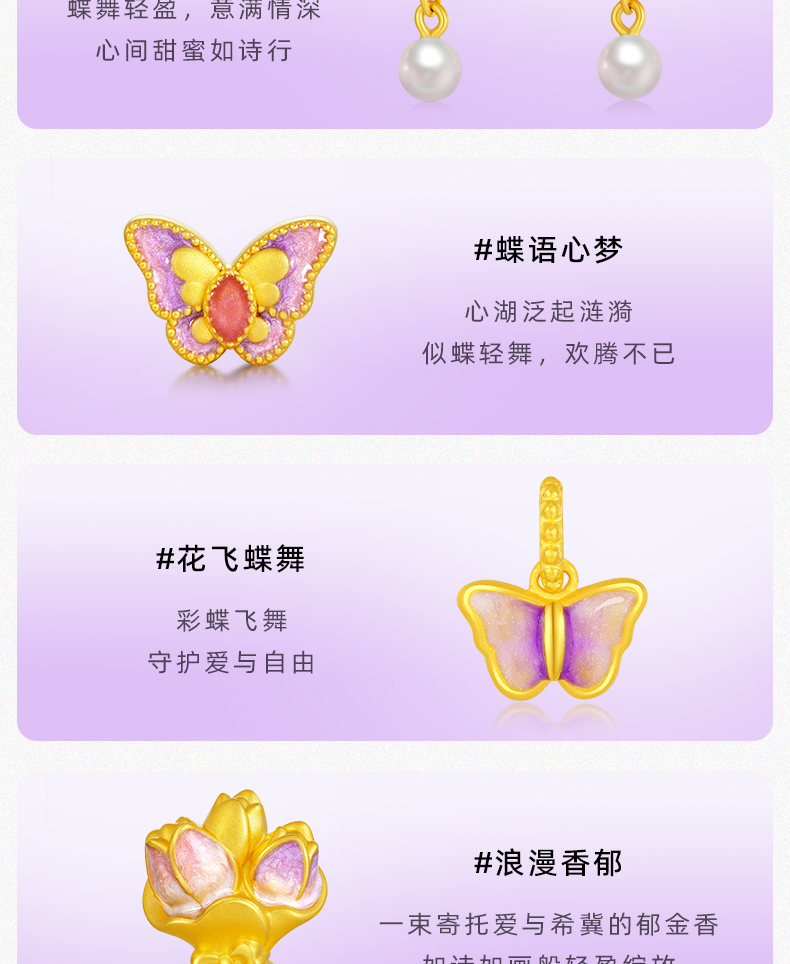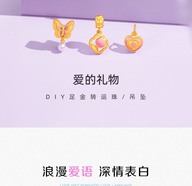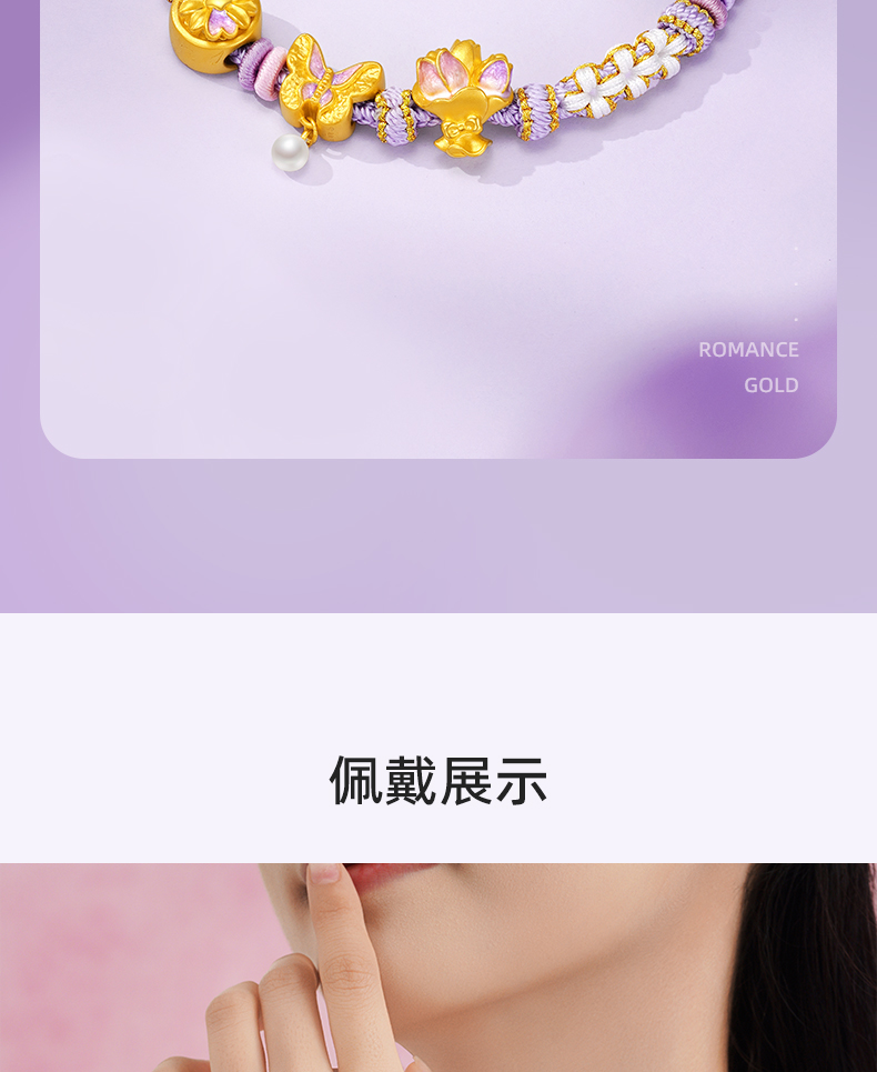 「LOVESTAR-爱的礼物」黄金珐琅转运珠 足金蝴蝶花朵郁金香桃花手串手绳