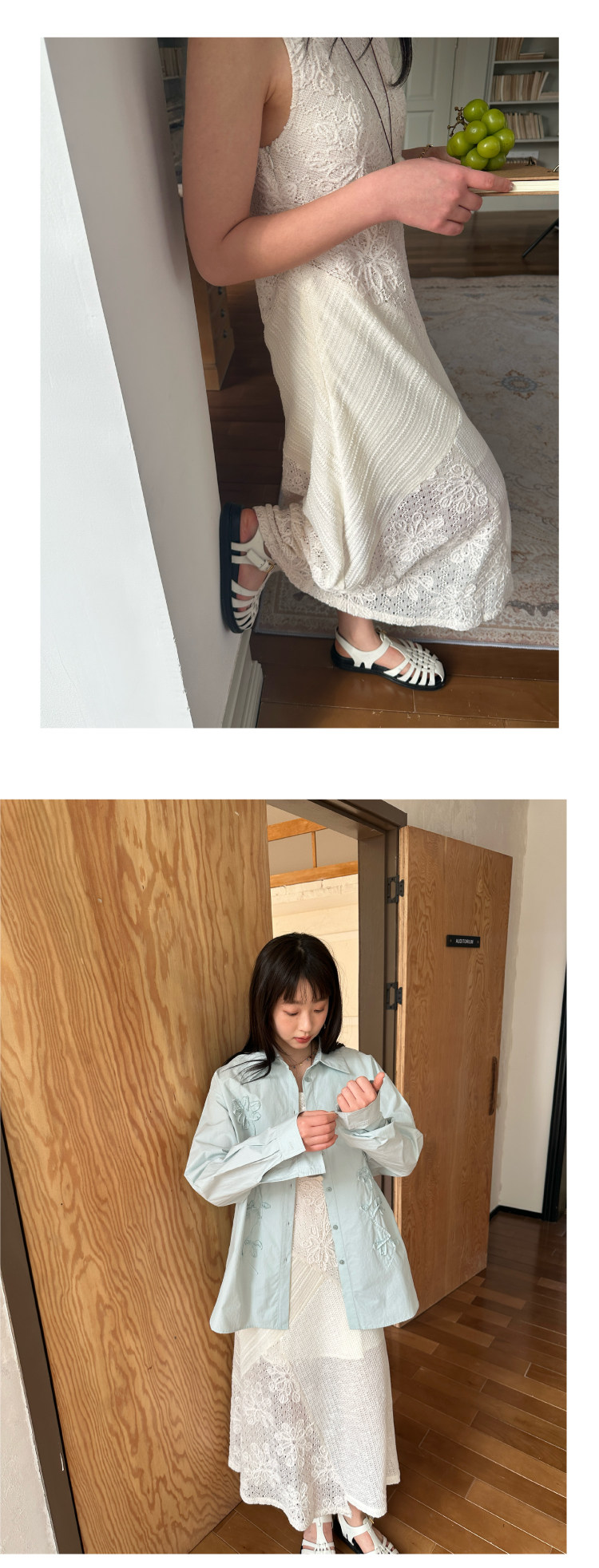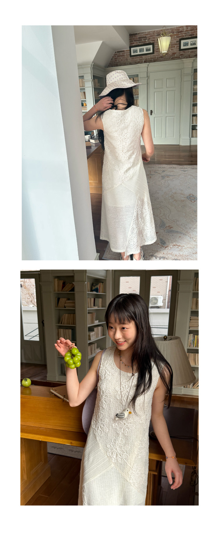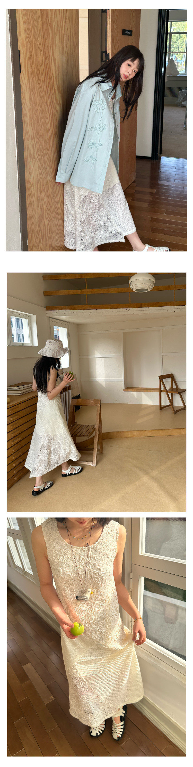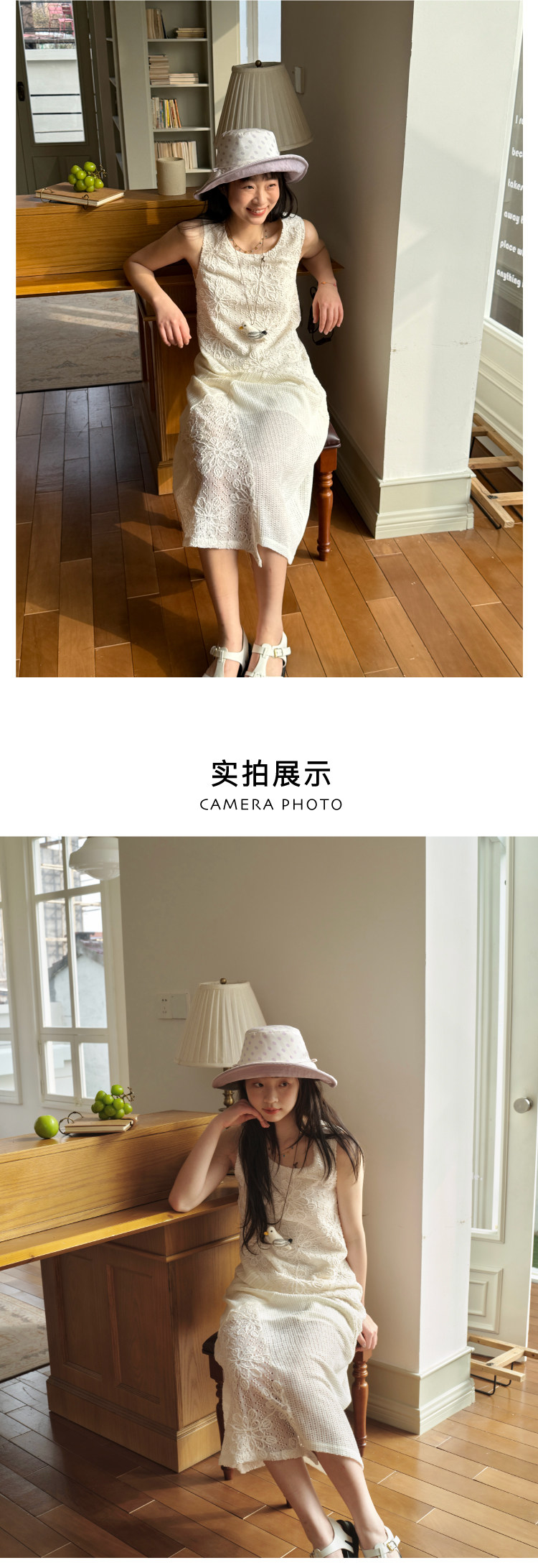 nothe Case布然/NC261813/ 「沙滩轻语」米白色度假感无袖拼接蕾丝绣花针织连衣裙