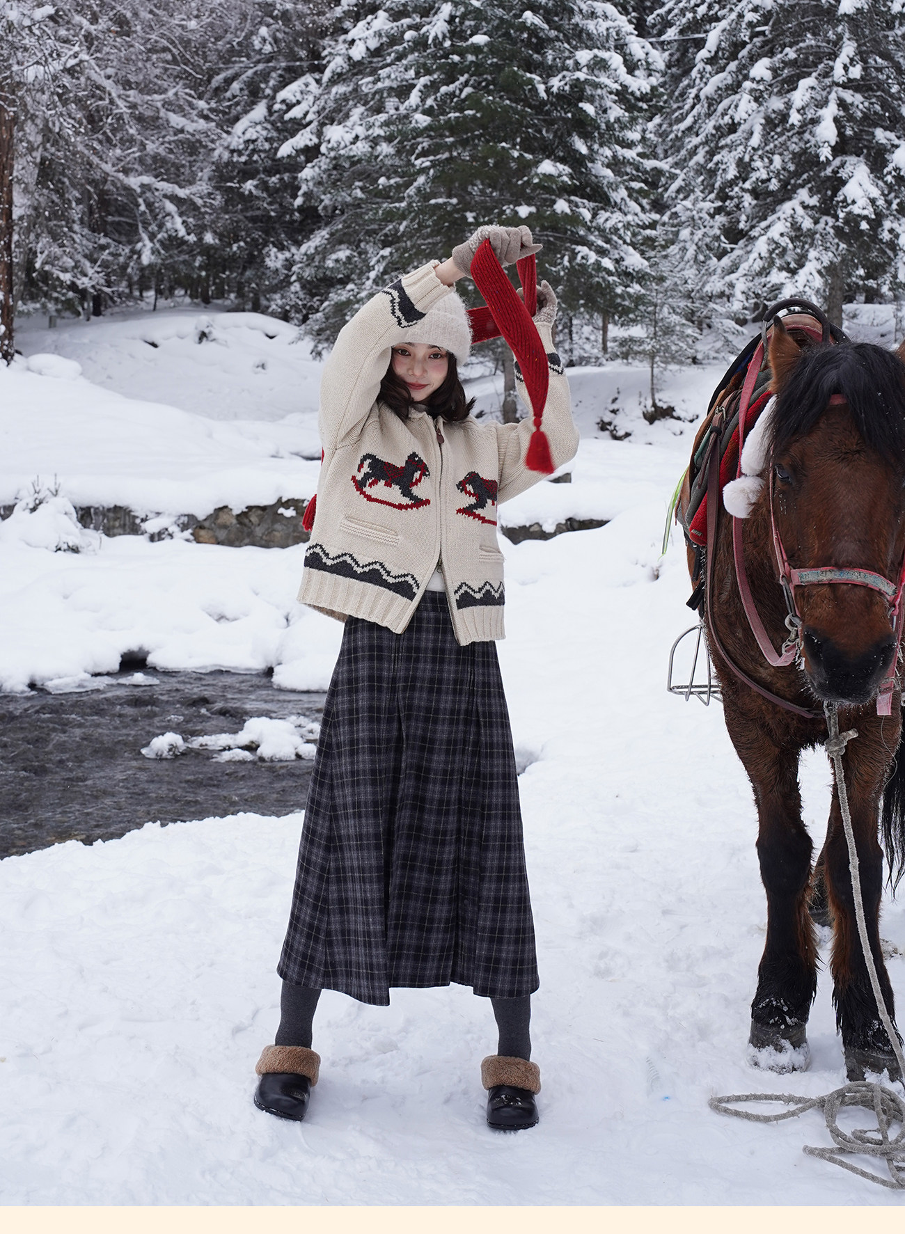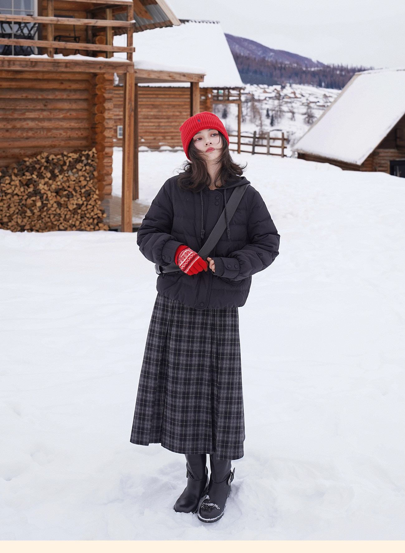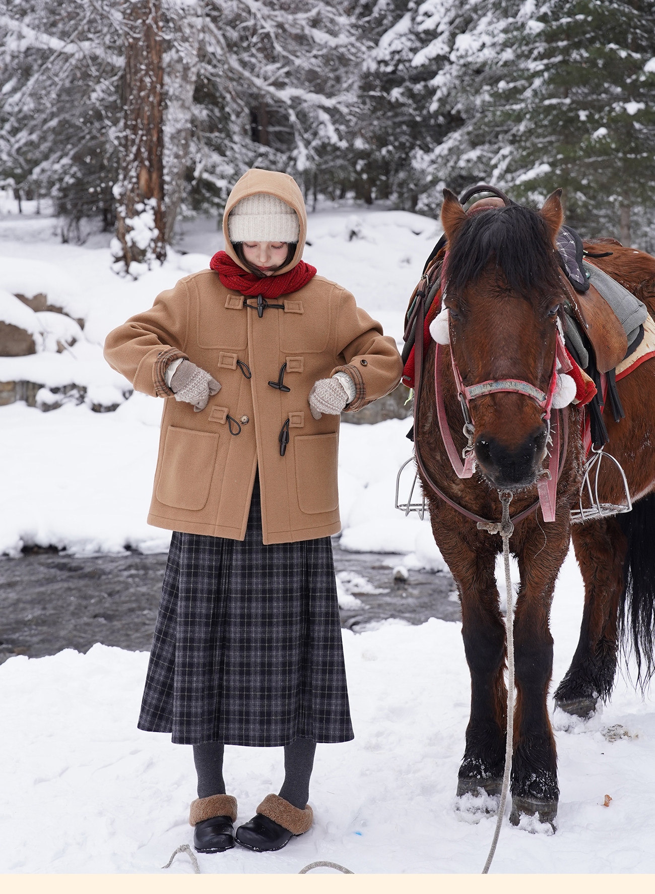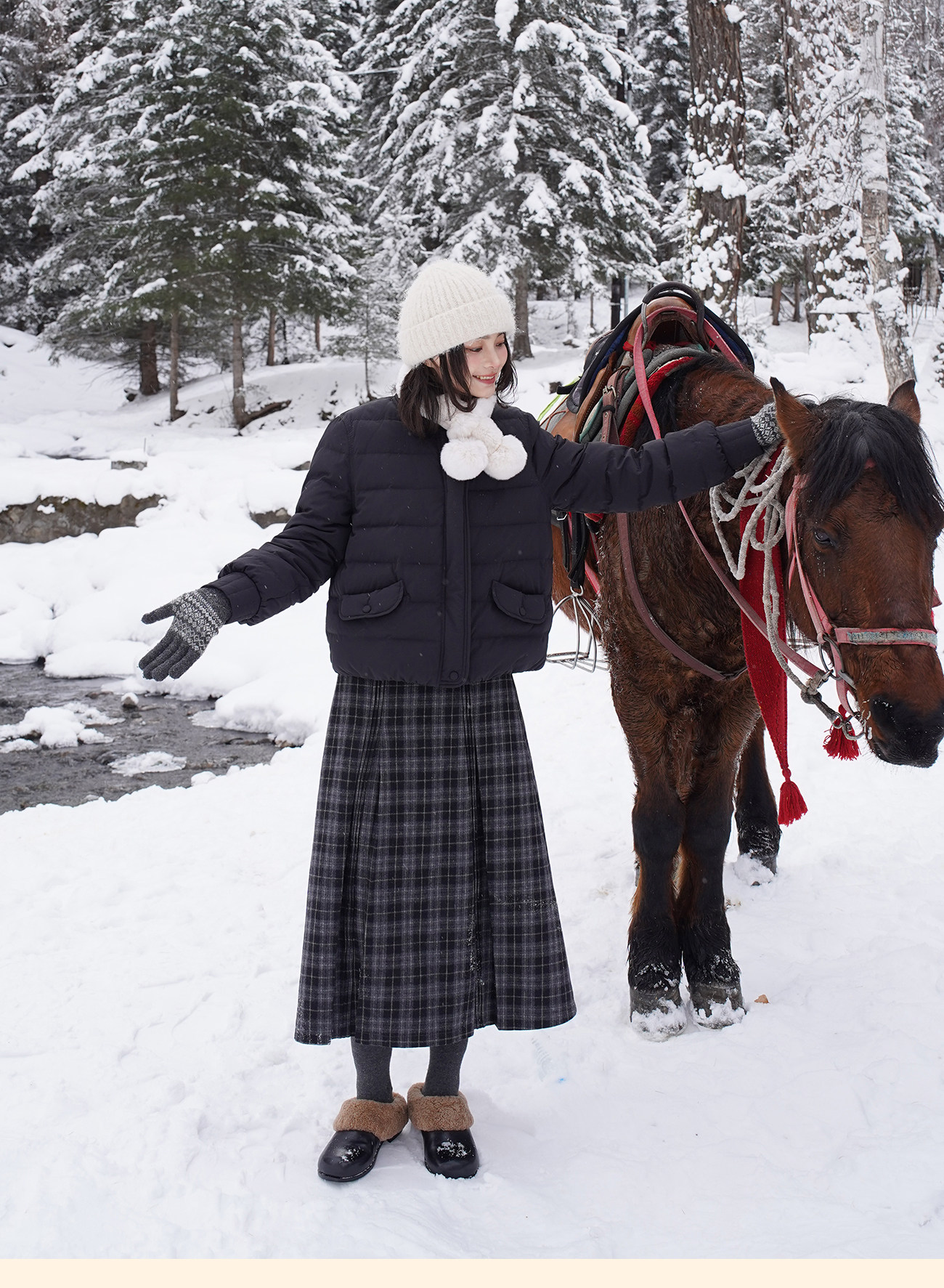 浮生八记/25D287/羊毛呢咖色灰蓝格纹手工捏褶打条百褶长半裙