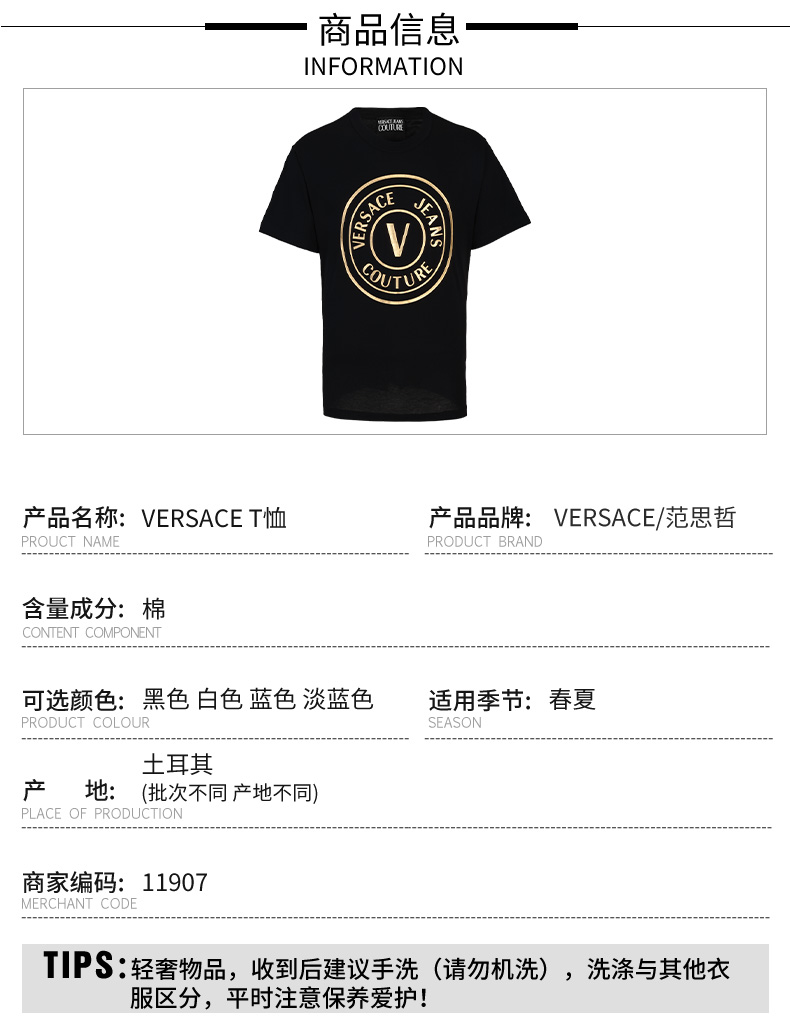 Versace 男士休闲全棉短袖T恤 11907