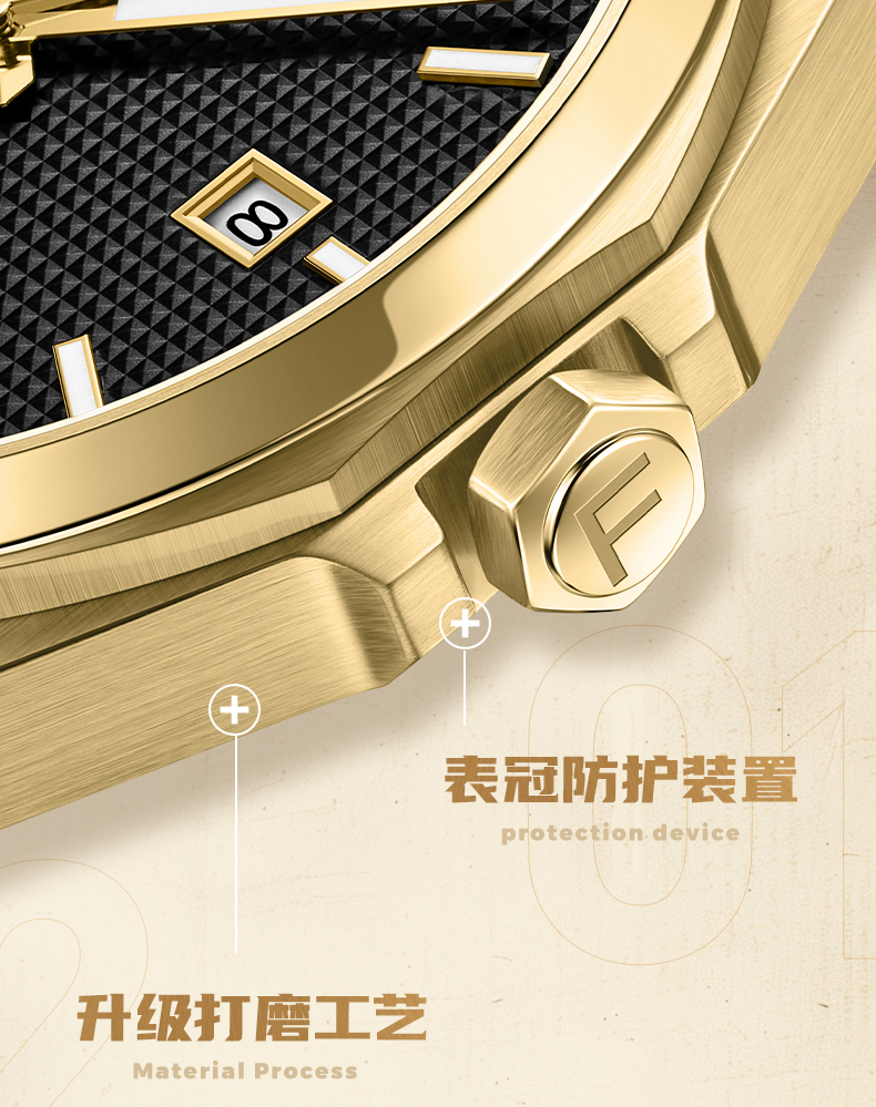 飞亚达芯动系列999真金币真钻情侣款男士机械表GA520012.TGT