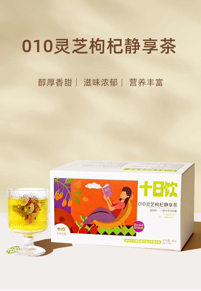 010灵芝枸杞静享茶 2.0版 十日饮 以诗为证 心安神安 醇厚香甜 滋味浓郁 营养丰富
