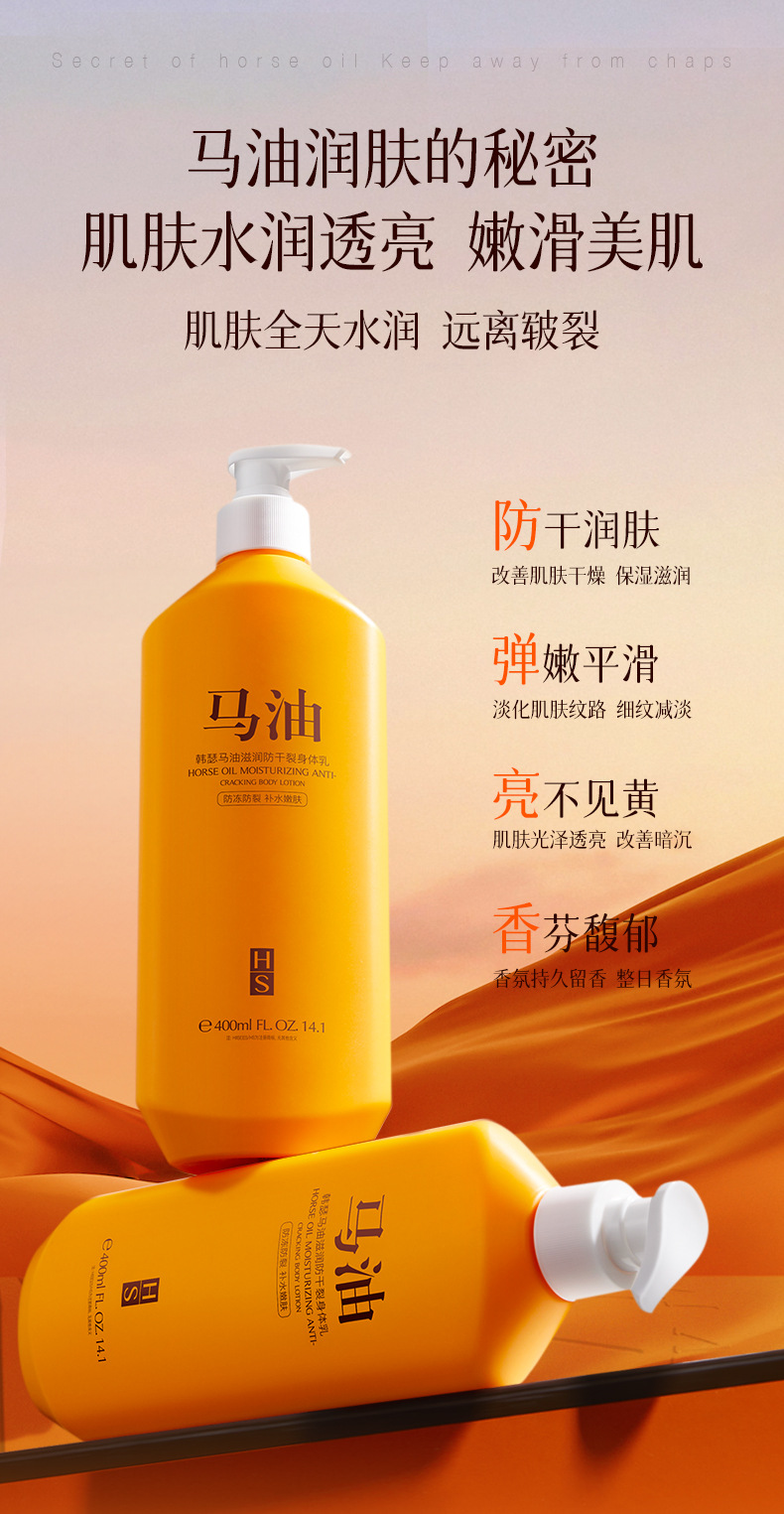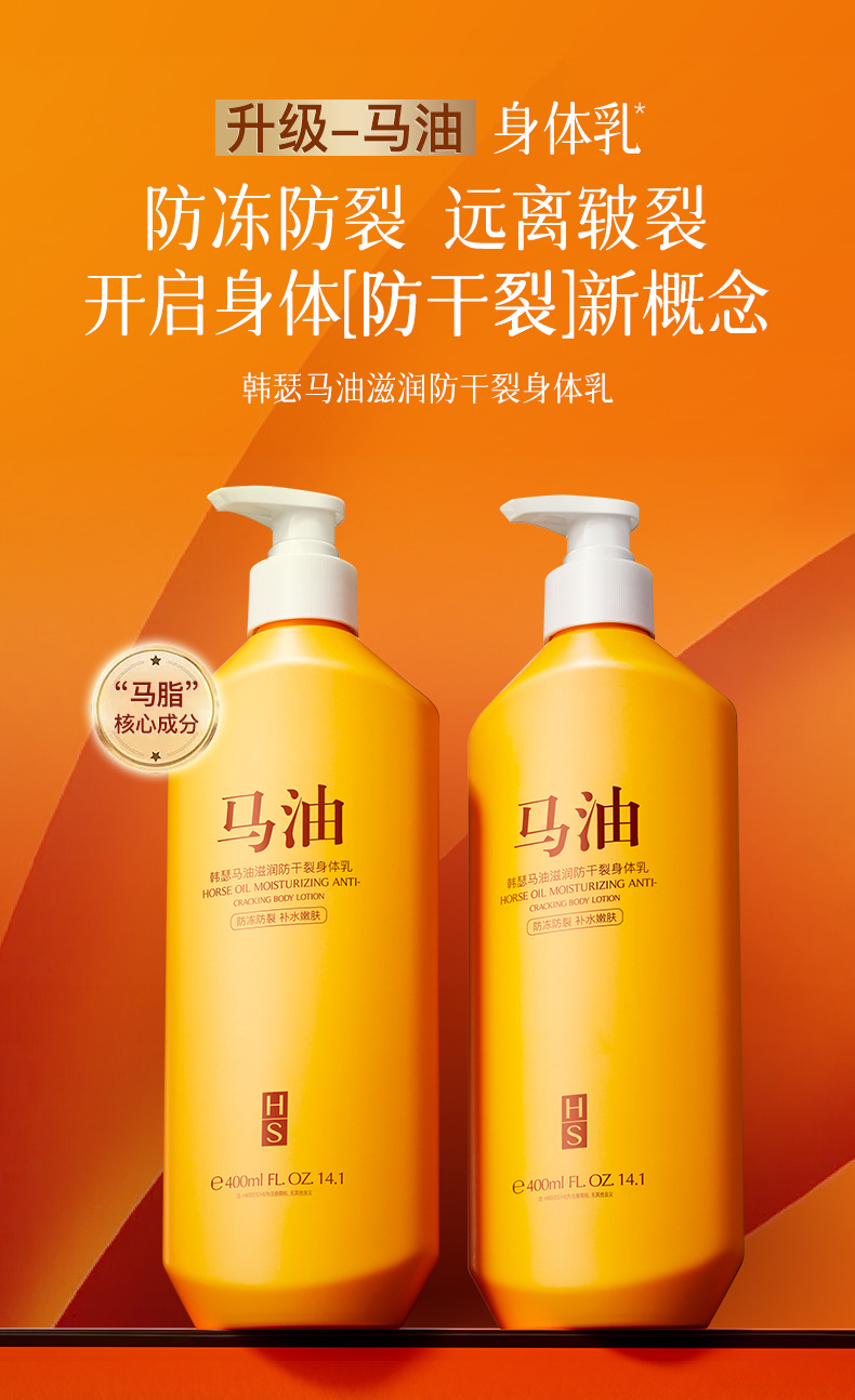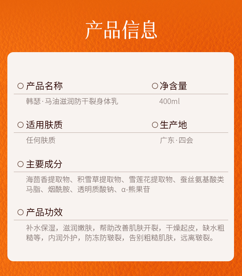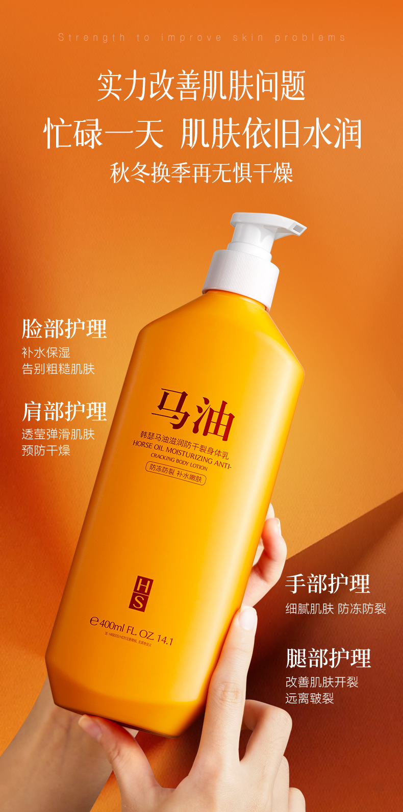 秋冬季新款【马油400ml滋润防干裂身体乳】提亮保湿补水清爽不粘腻手足护理