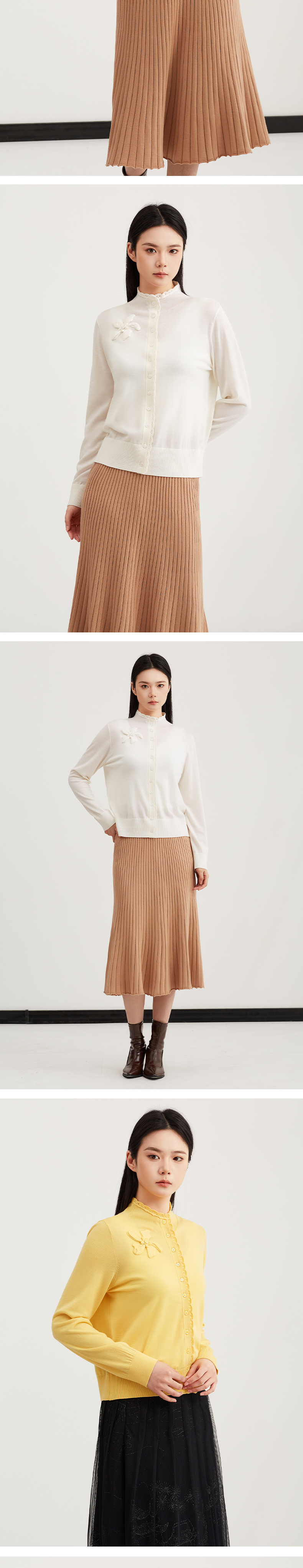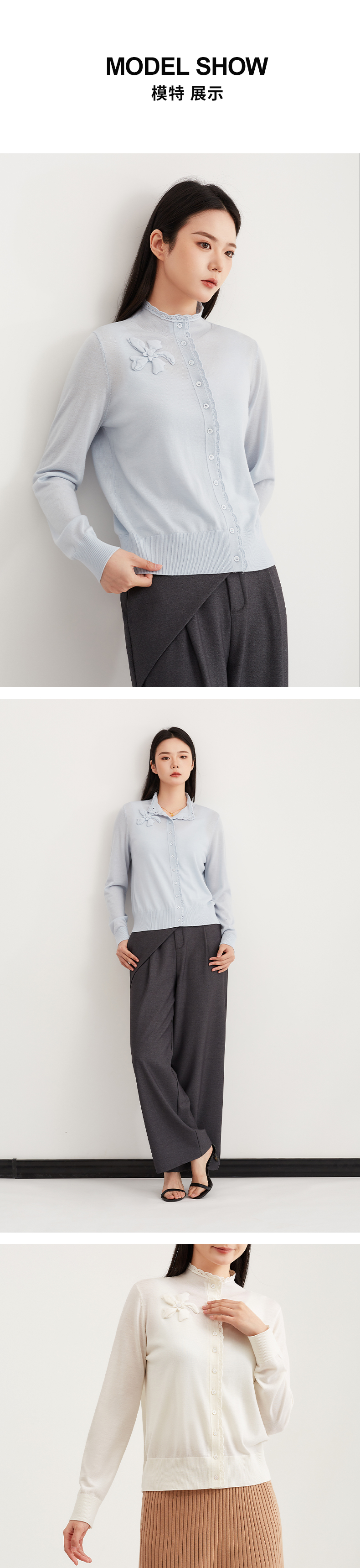 【商场同款】阿菁娜春季新款小香风开衫立体花朵侧边点睛蕾丝包边精致线条一件穿出轻奢质感A31C118501