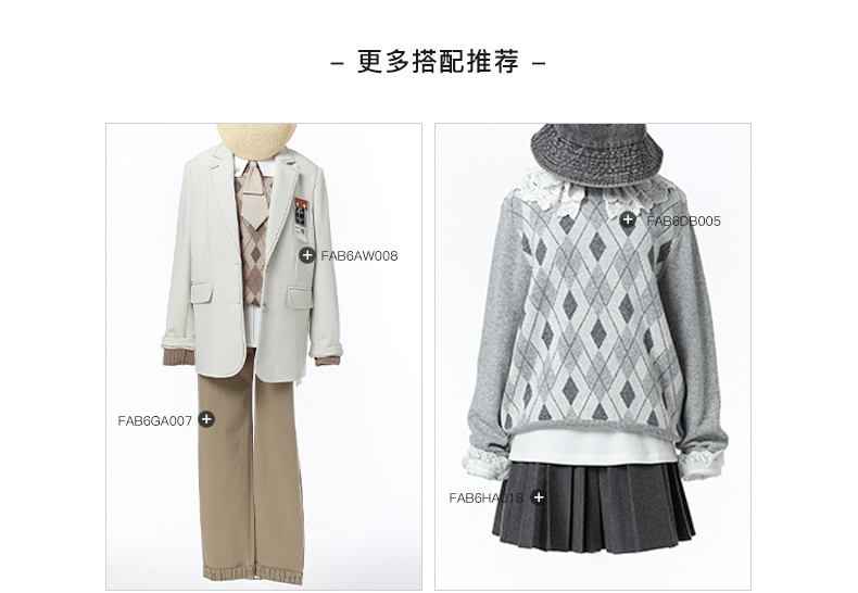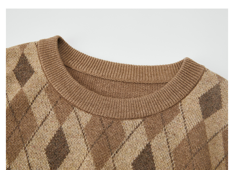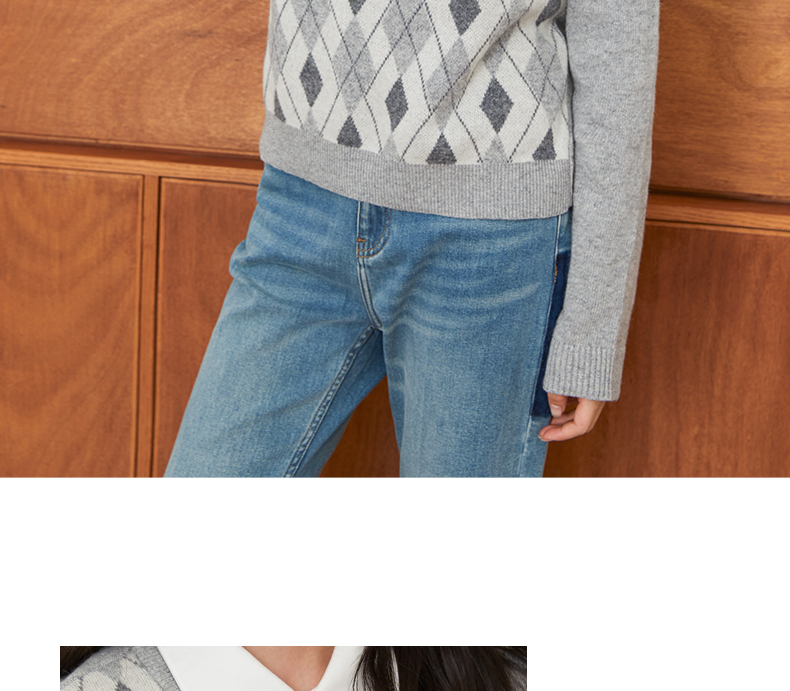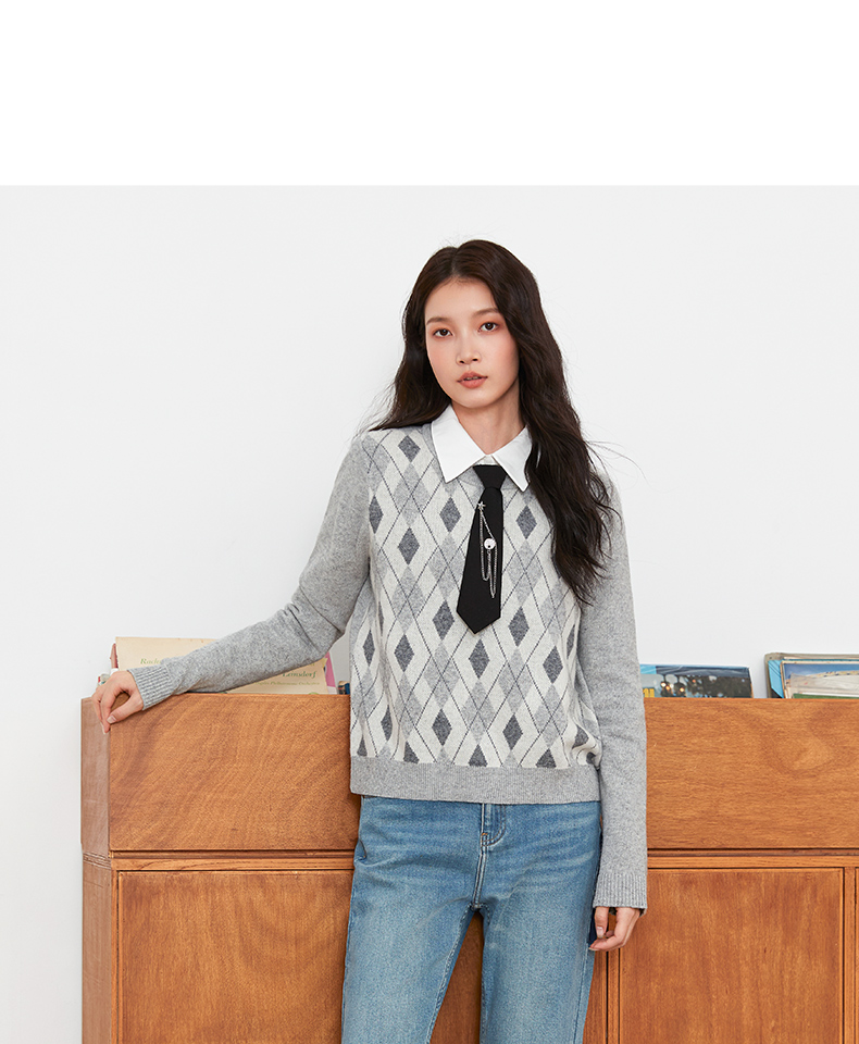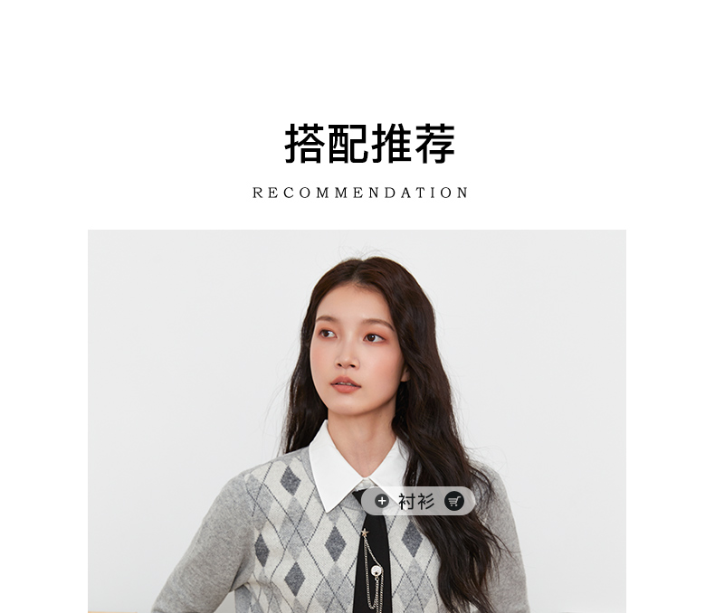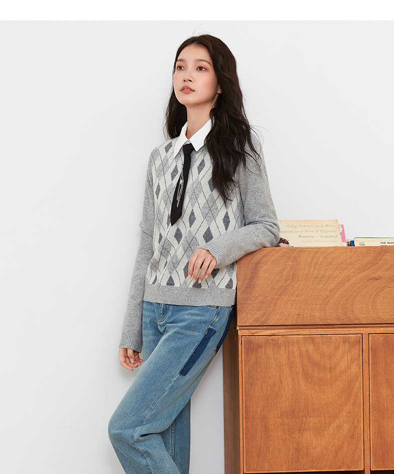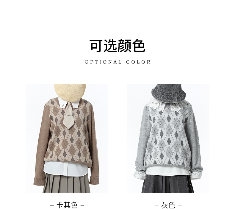Famecoco范可儿针织衫含羊毛菱形刺绣通勤风套头毛衫女装春秋款FAB6DB005