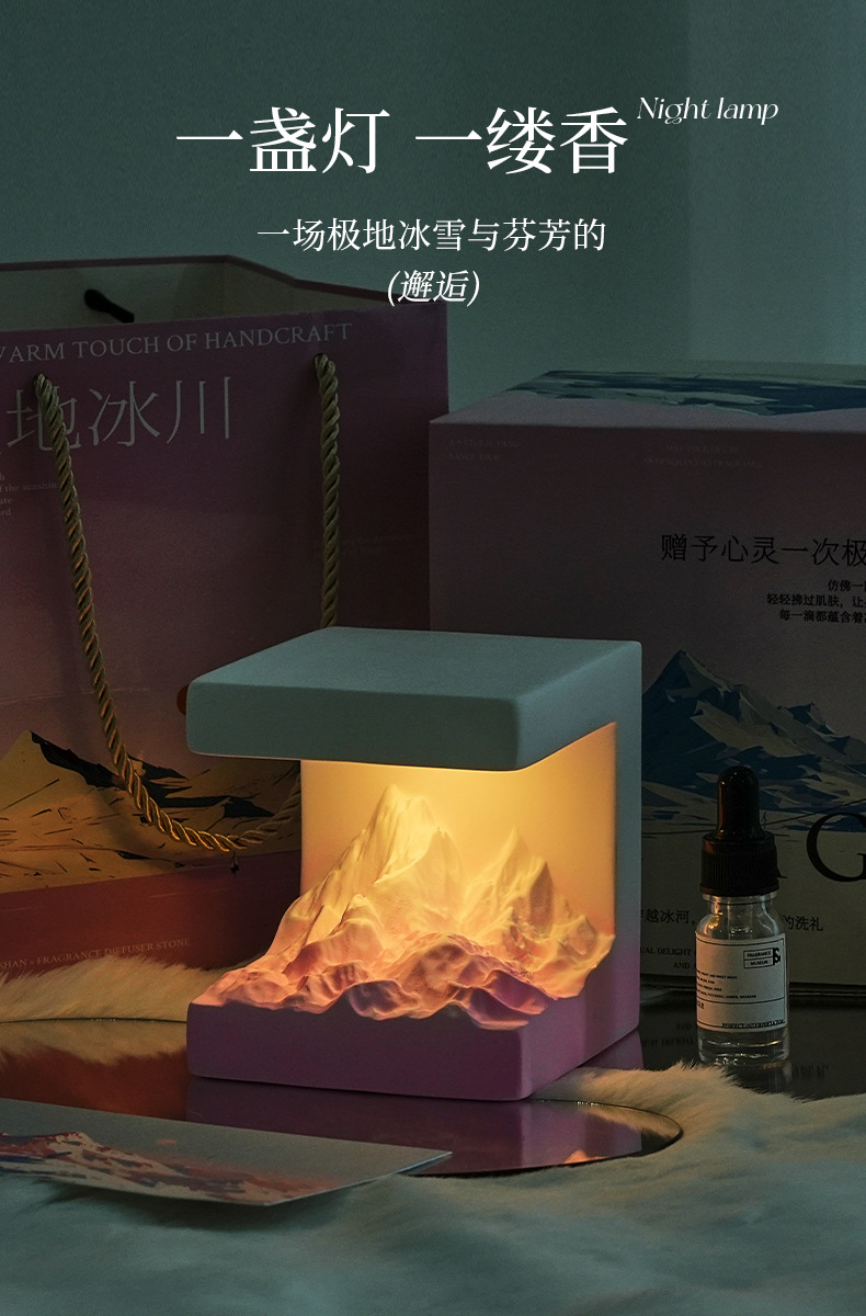 礼盒装【既是香氛又是夜灯】日照金山香薰扩香石生日礼物家居礼品礼盒摆件万圣节毕业礼物。ry