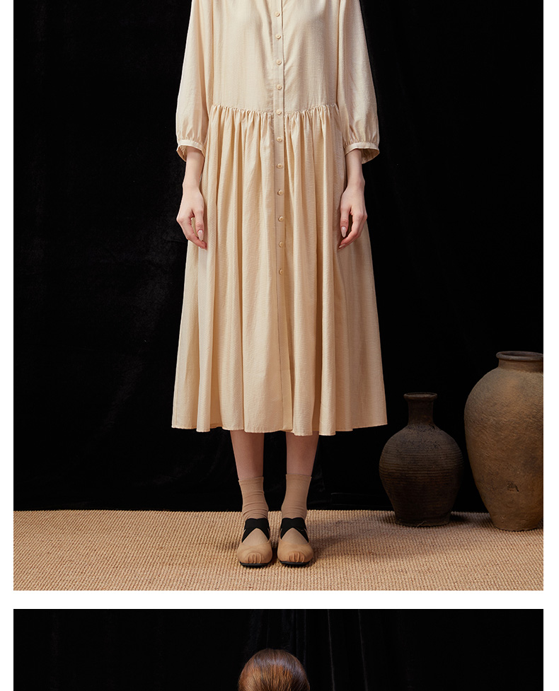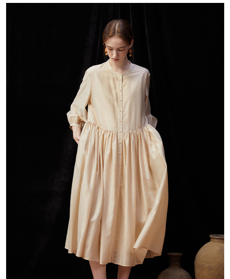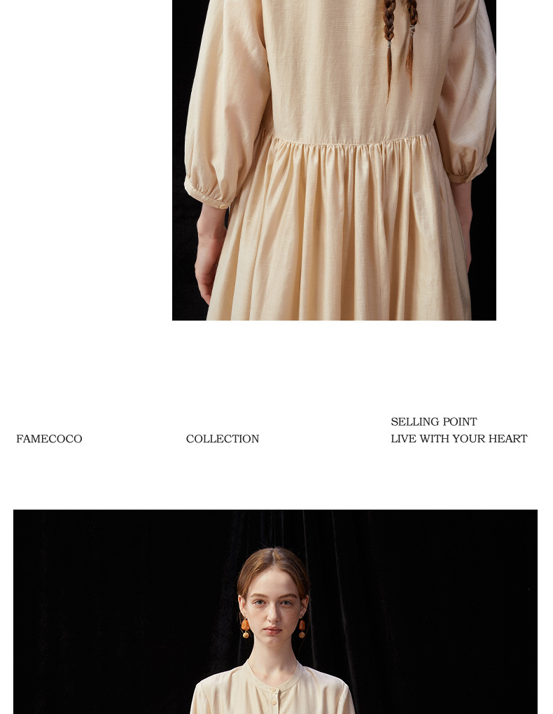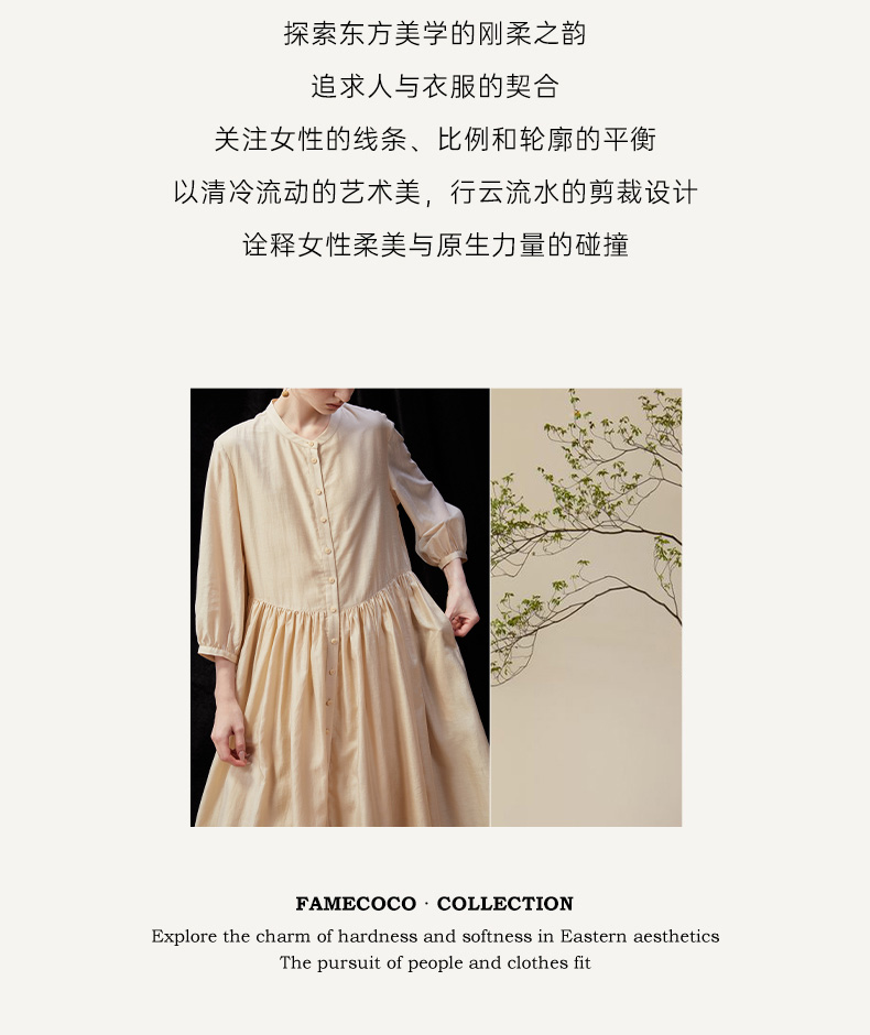 Famecoco范可儿文艺范圆领大裙摆清冷松弛感连衣裙新款FAD3FA010