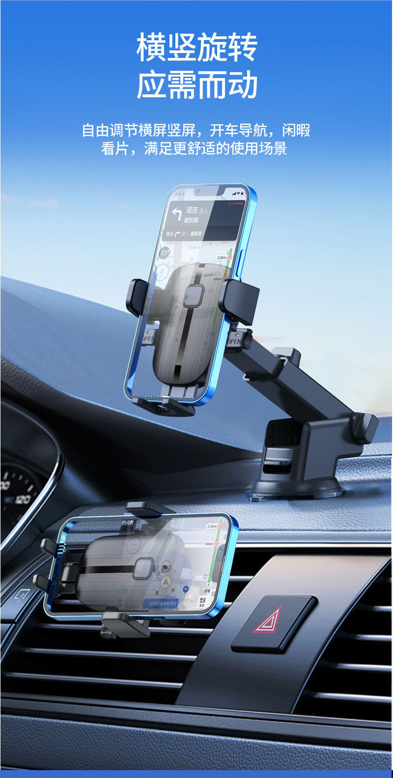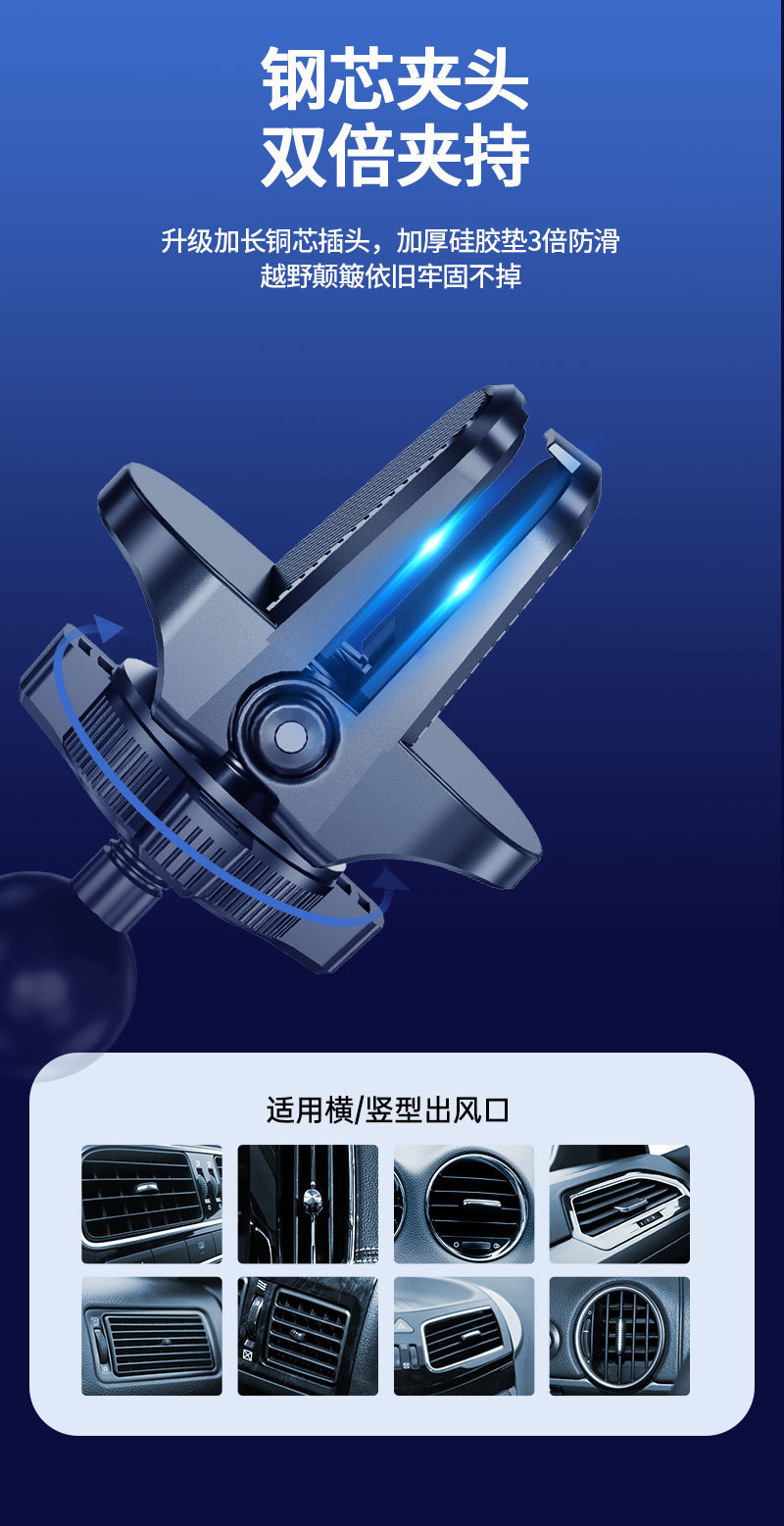 【吸盘式车载手机支架】车上车内手机导航架汽车出风口空调口固定支架倒钩式,横竖旋转,应需而动。ry