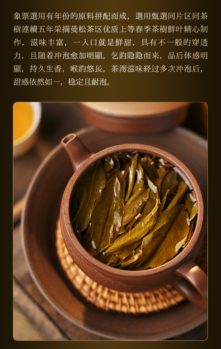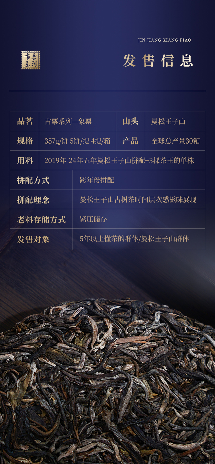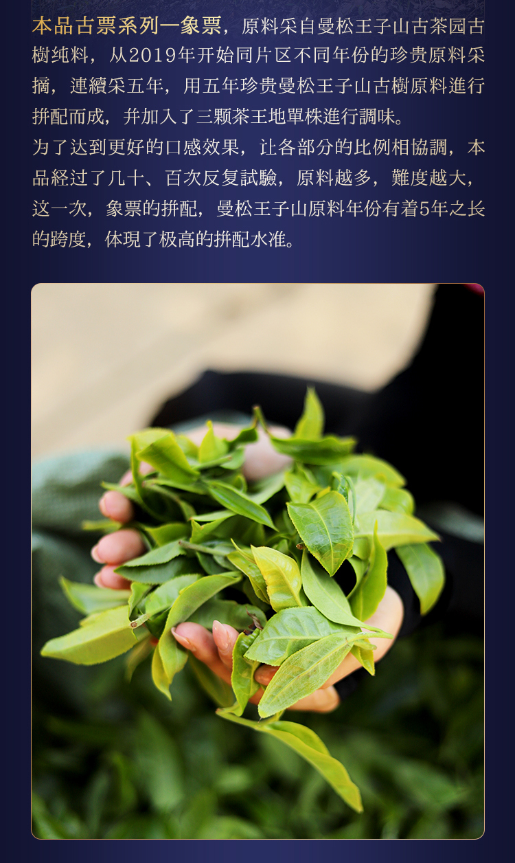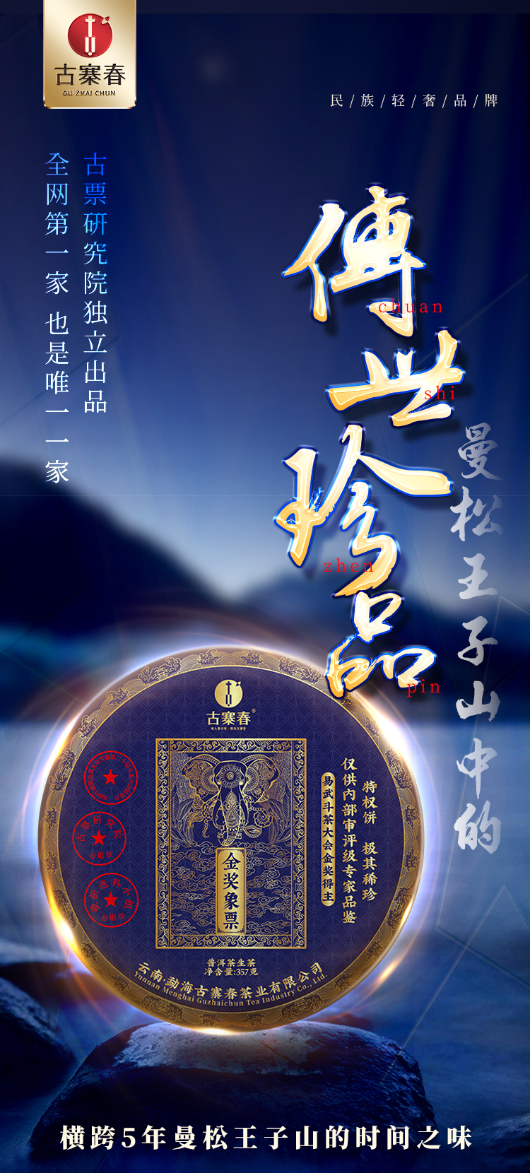 【金奖象票】2024年易武斗茶大会金奖 稀缺古树资源 古票研究院独立出品 横跨五年曼松王子山完美融合普洱茶生茶1箱内含5饼*357克