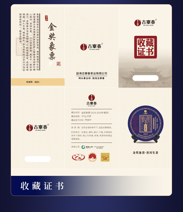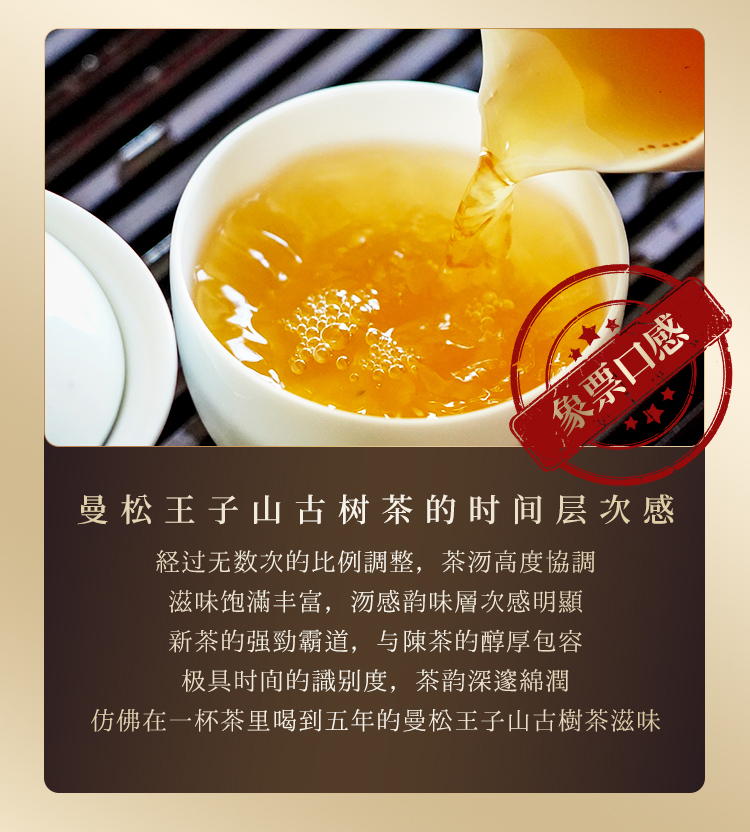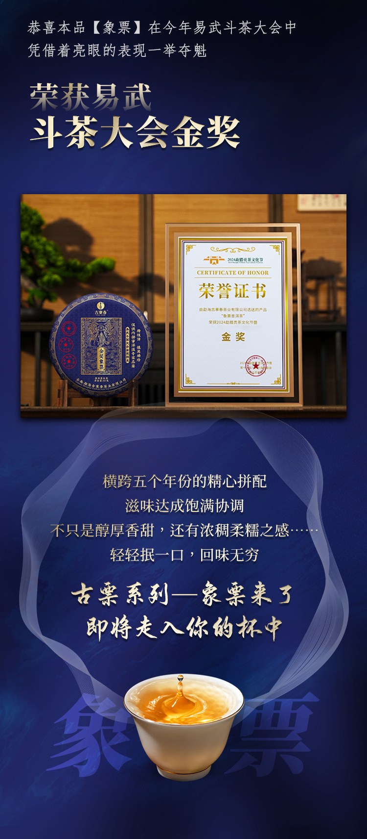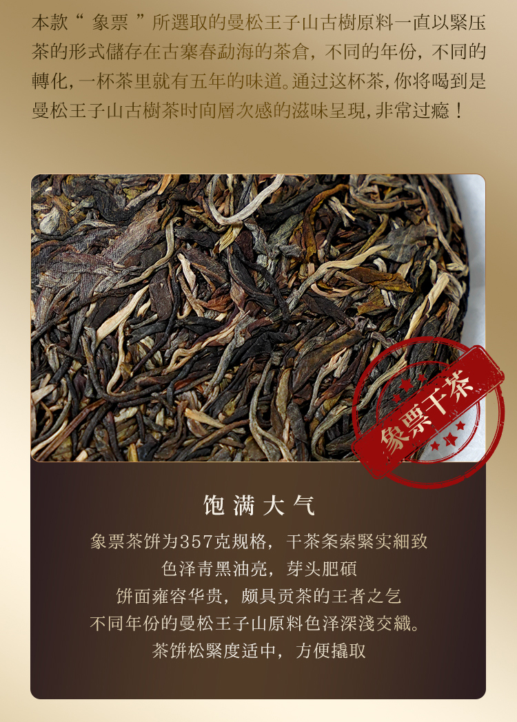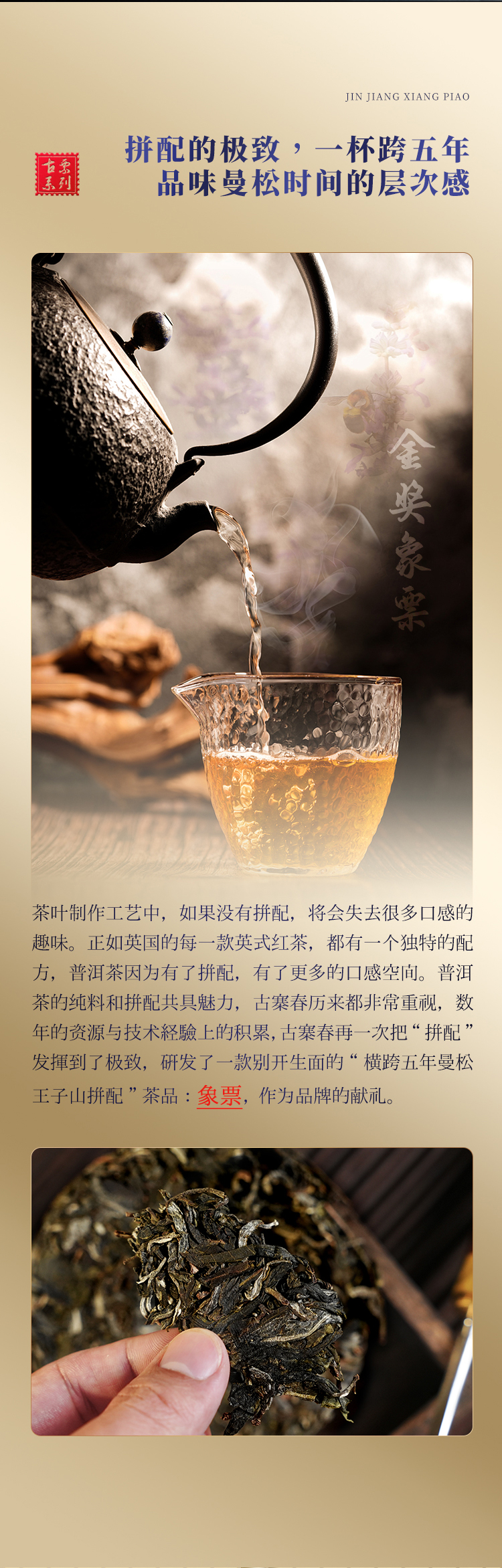 【金奖象票】2024年易武斗茶大会金奖 稀缺古树资源 古票研究院独立出品 横跨五年曼松王子山完美融合普洱茶生茶1箱内含5饼*357克