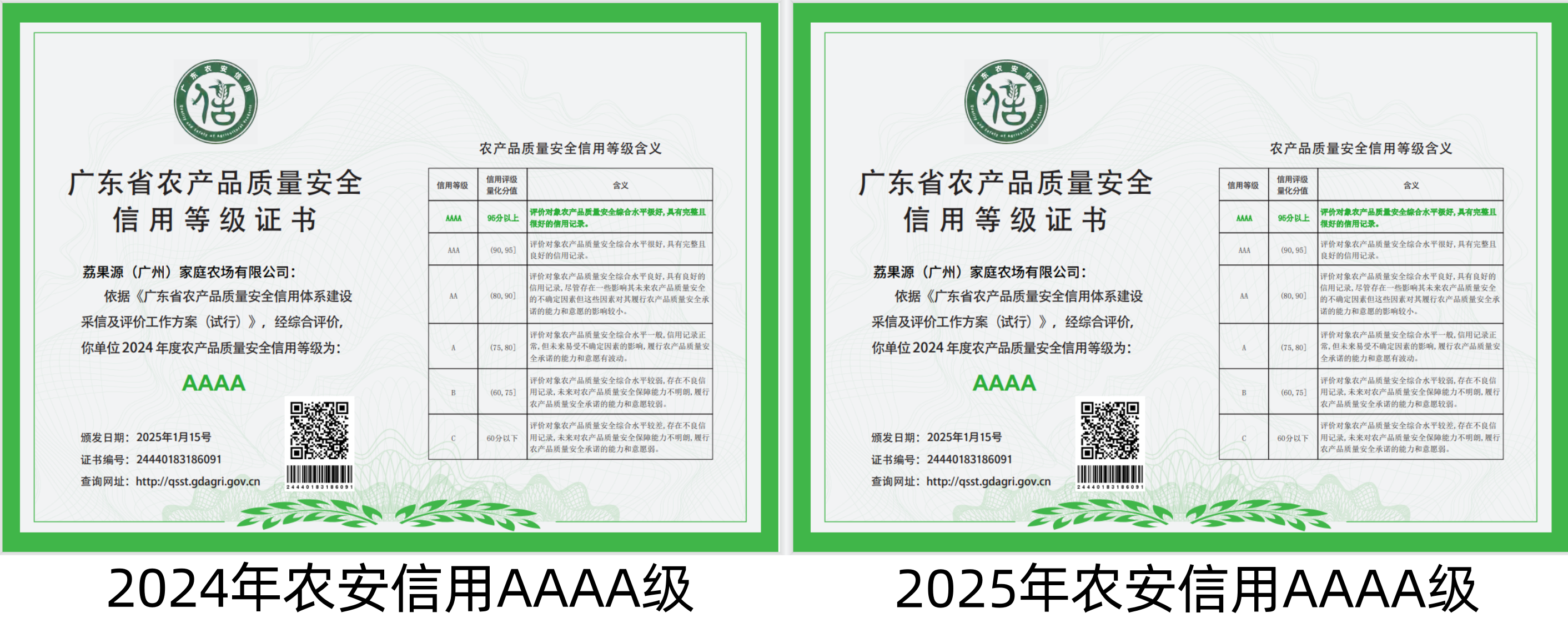 连续2年在广东省的农安信用等级中为AAAA级最高级别农龙企业。