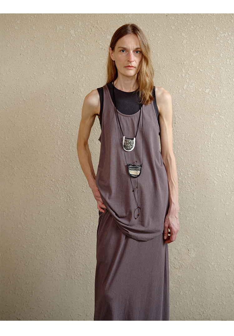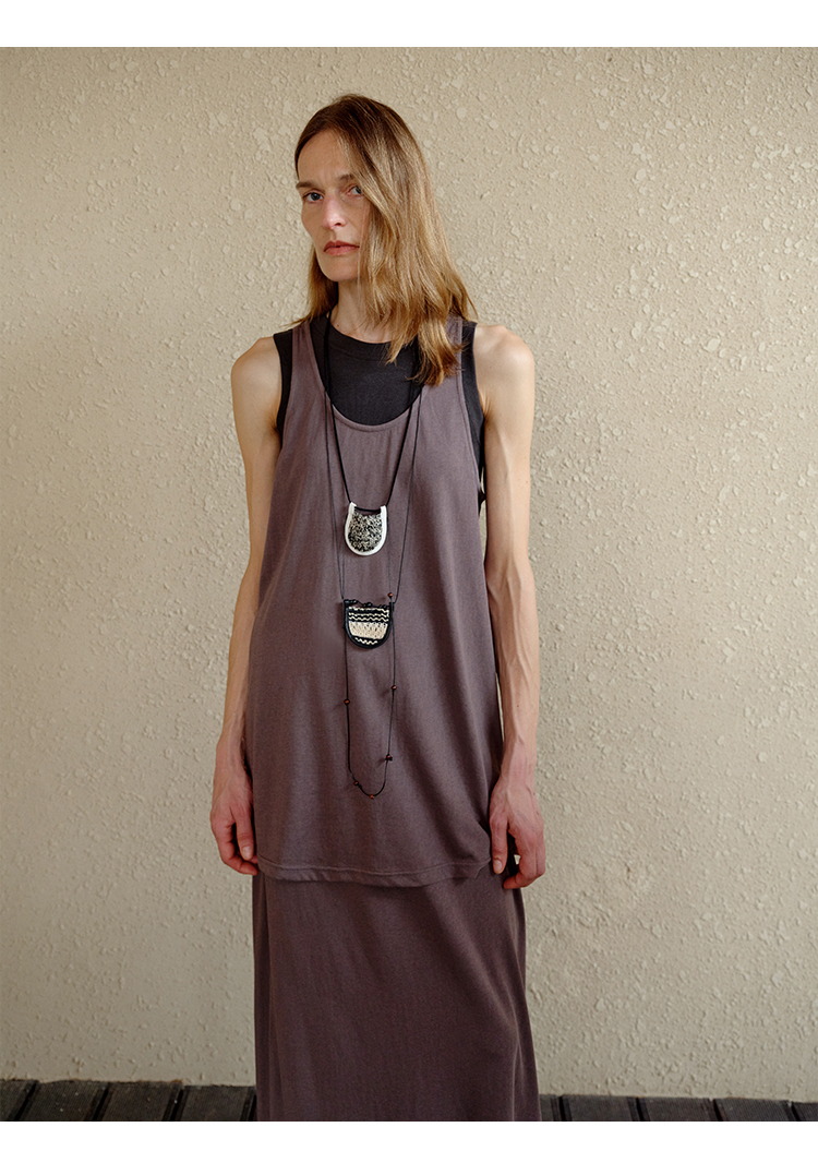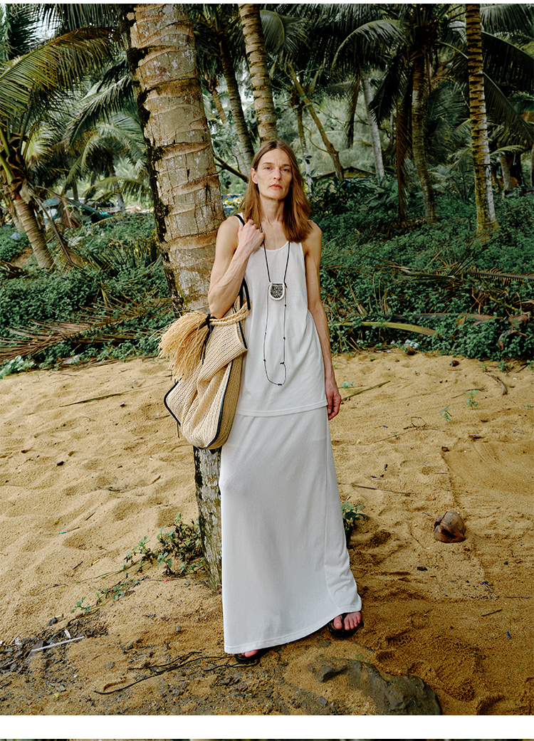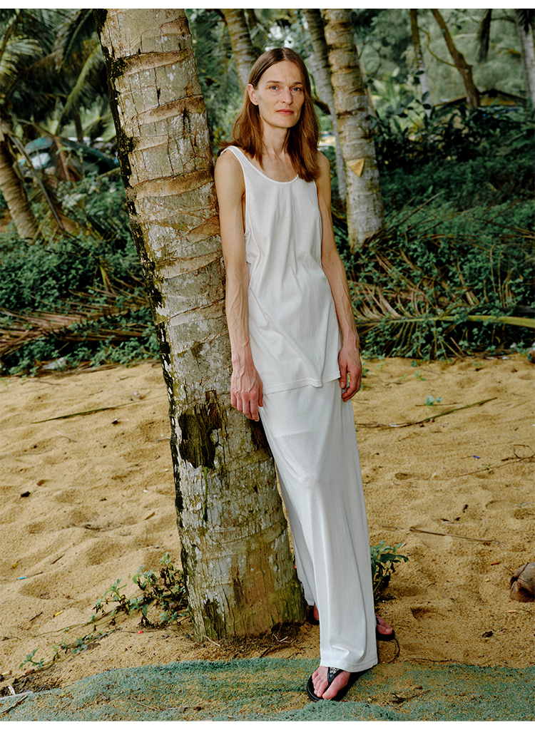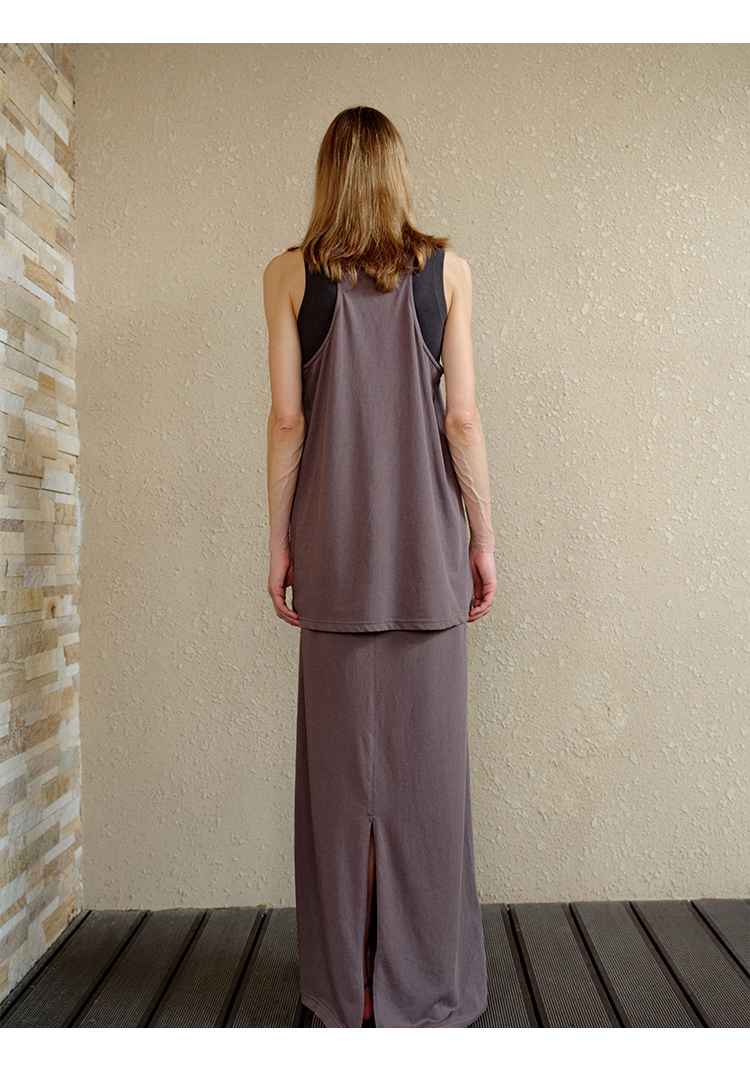 HIDEMI 度假系列极简椭圆领宽松设计感水洗针织背心半裙套装 背心/半身裙