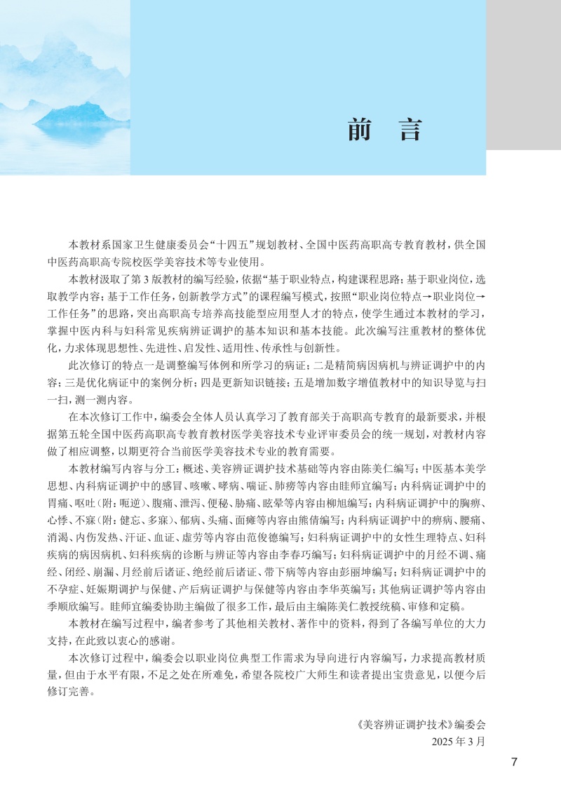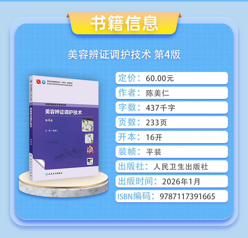 美容辨证调护技术 第4四版 十四五规划教材 全国中医药高职高专教育教材 陈美仁 主编 供医学美容技术等专业用 人民卫生出版社
