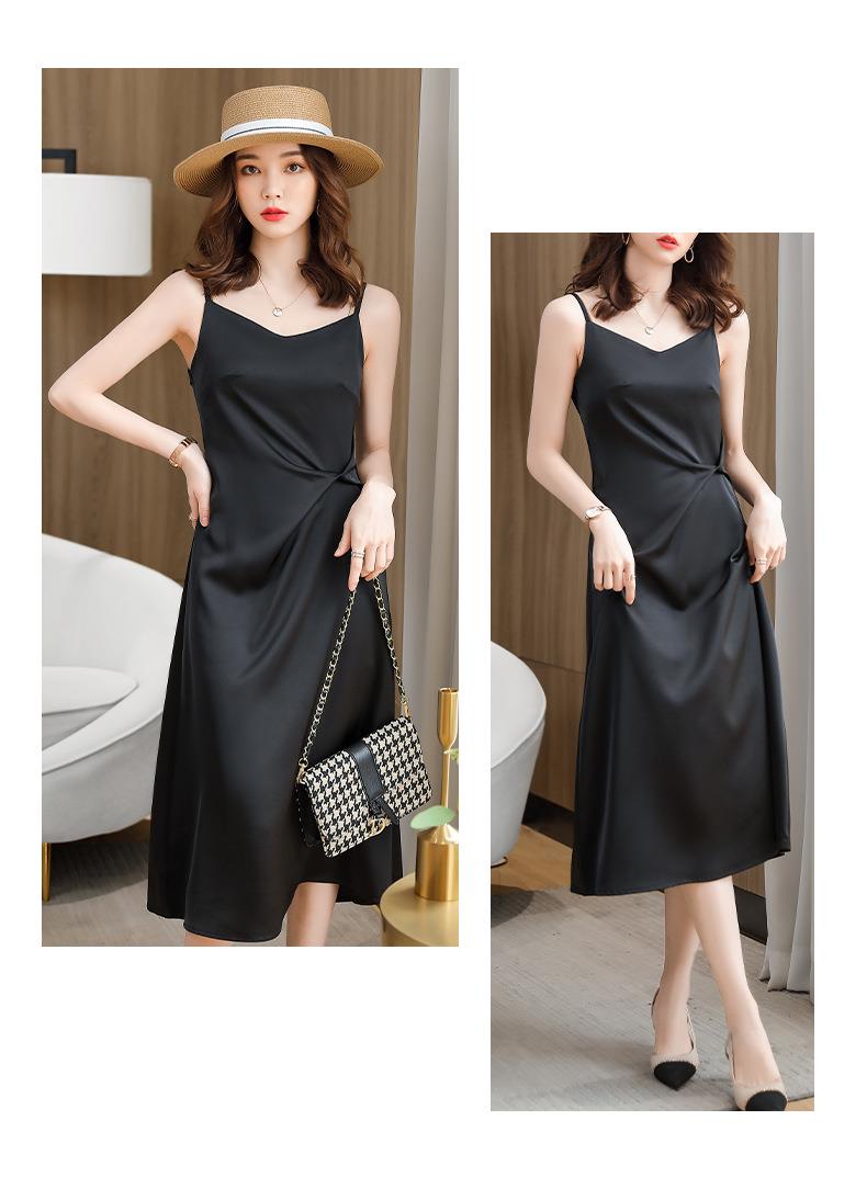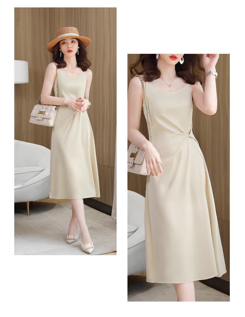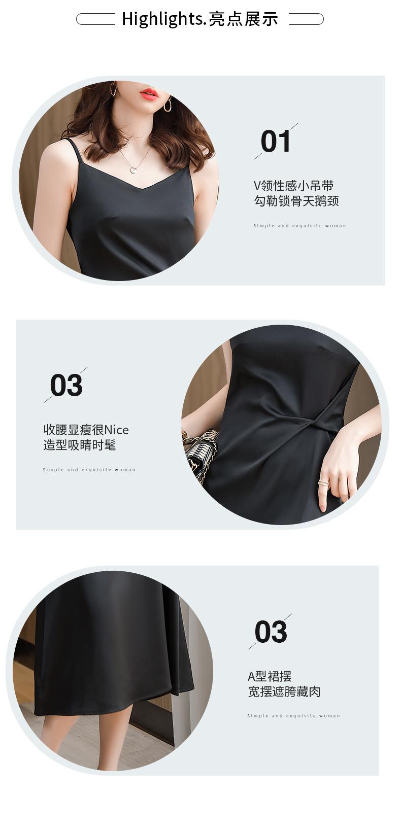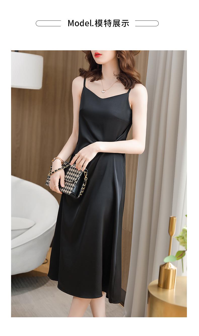 娜璐多 吊带连衣裙女垂坠感2023年夏季新款气质通勤纯色中长款显瘦A字裙