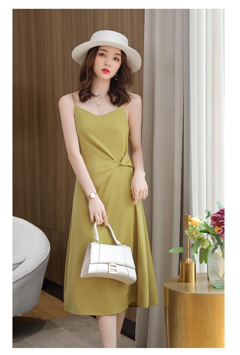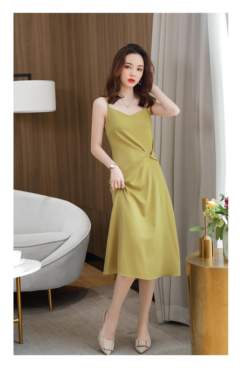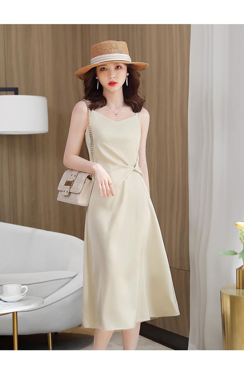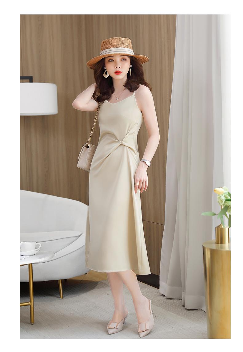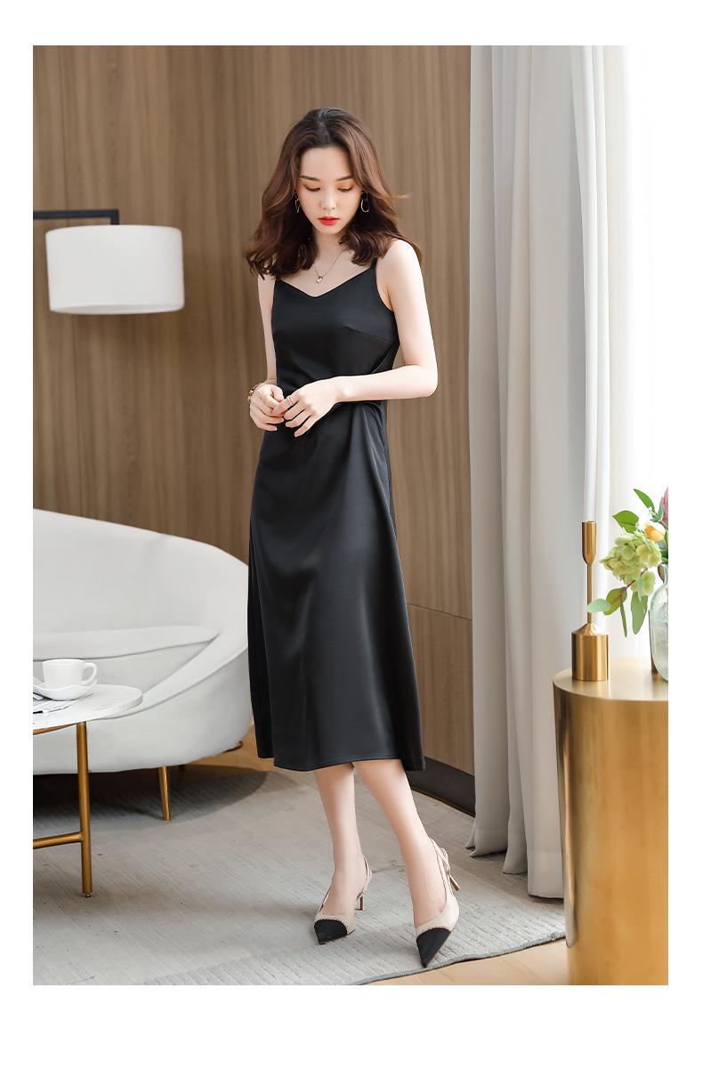 娜璐多 吊带连衣裙女垂坠感2023年夏季新款气质通勤纯色中长款显瘦A字裙