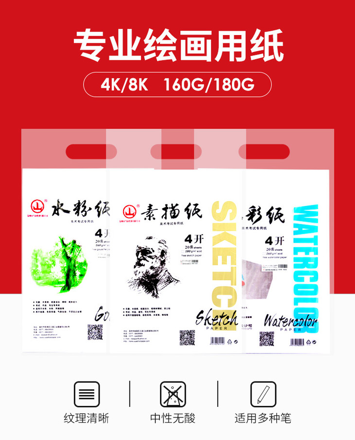 山牌素描纸加厚速写水粉纸铅画纸图画本4k8k包邮批发16开本色白色