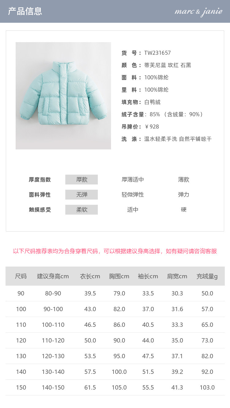 【三防】马克珍妮冬装新款 女童超轻保暖加厚面包服羽绒服231657