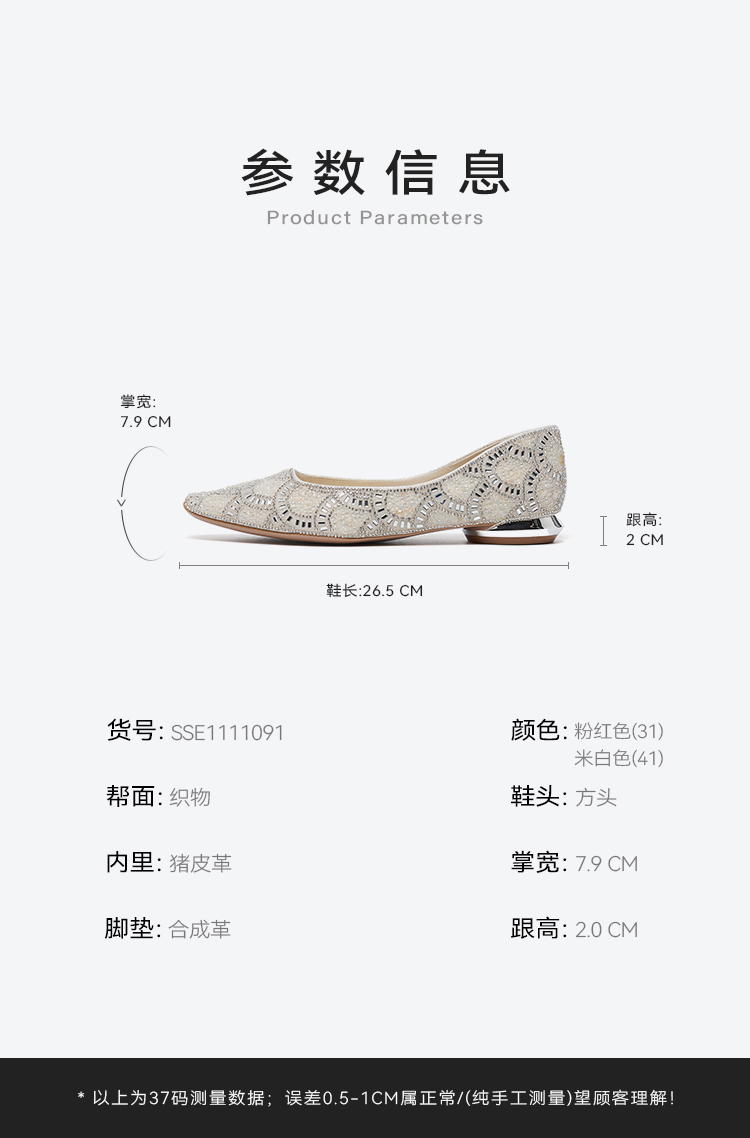 【星空系列】星期六26春新款轻奢满钻方头低跟浅口单鞋SSE1111091