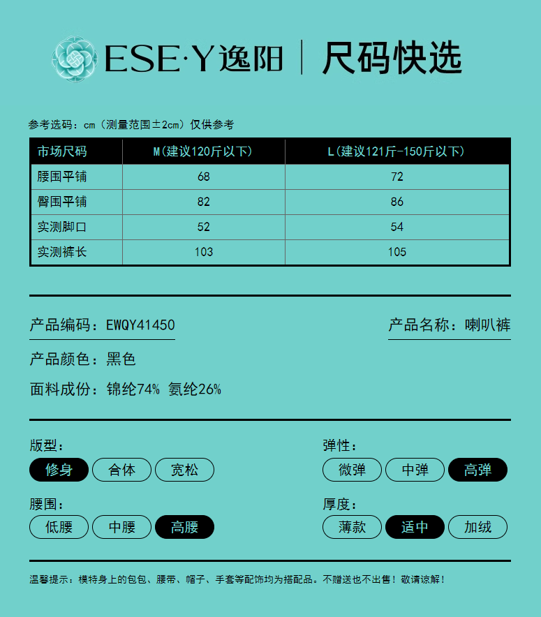 【秋新品-高弹喇叭裤】逸阳高弹修身显瘦提臀马蹄外穿百搭裤子1450