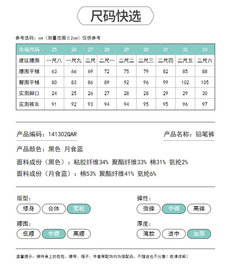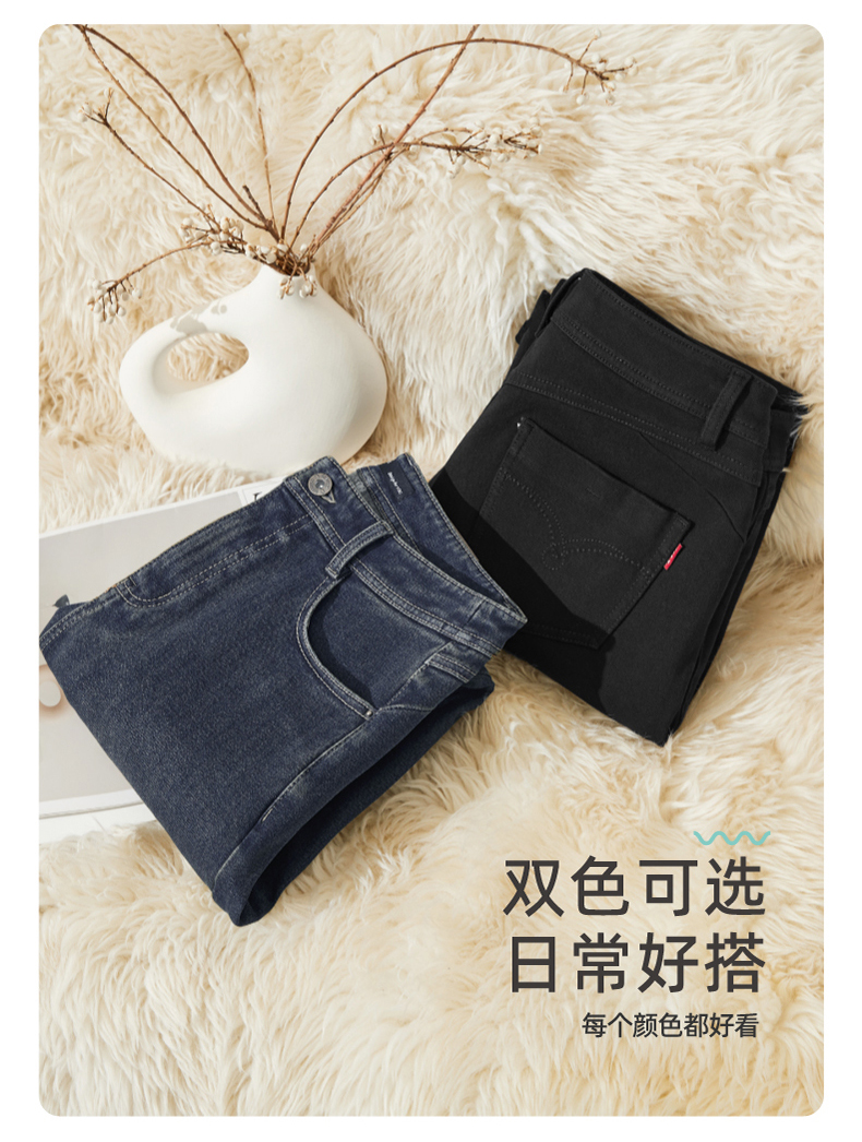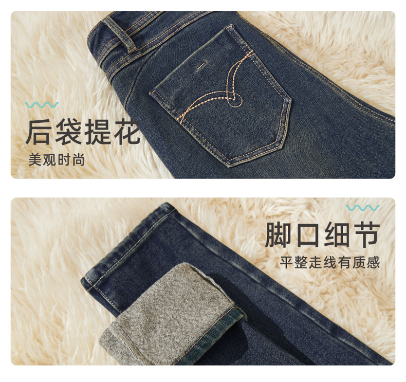 【定制版-加绒-瘦腿裤】逸阳秋冬弹力铅笔塑型保暖牛仔裤子1302R