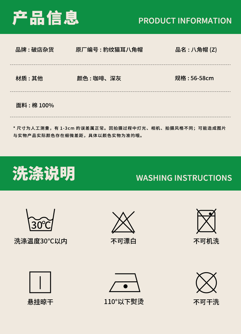 潮流百搭豹纹猫耳八角帽纪念日百货门店同款164746538
