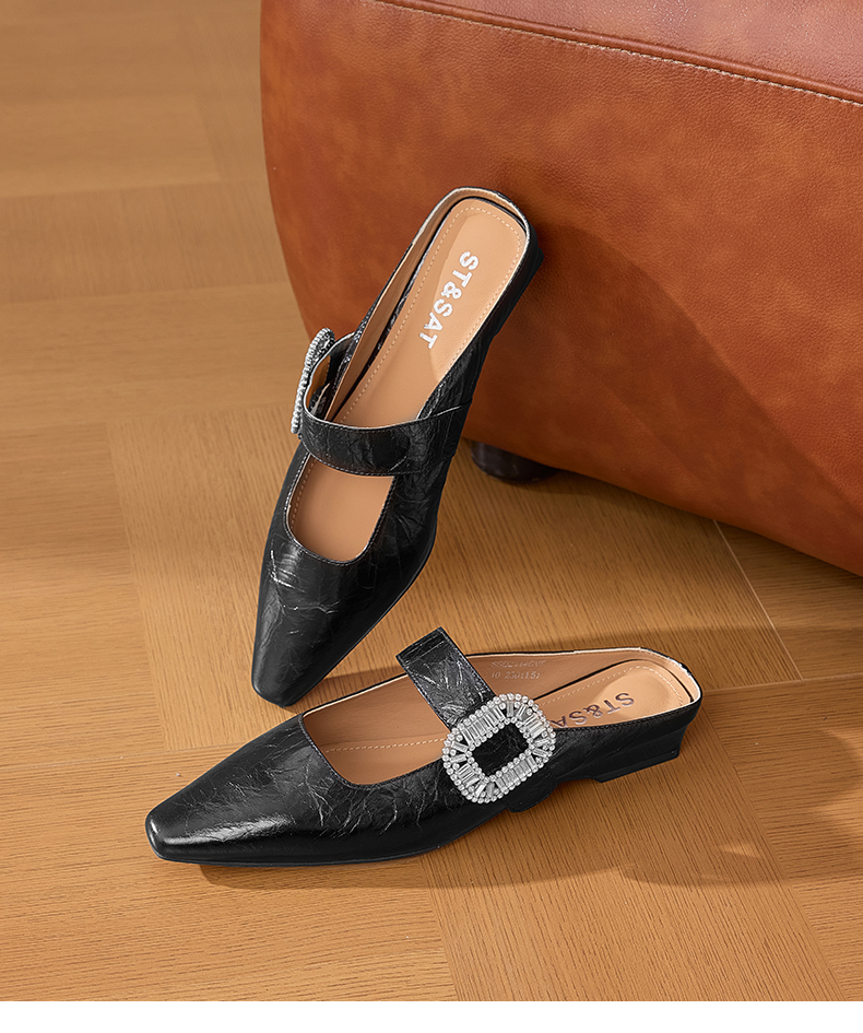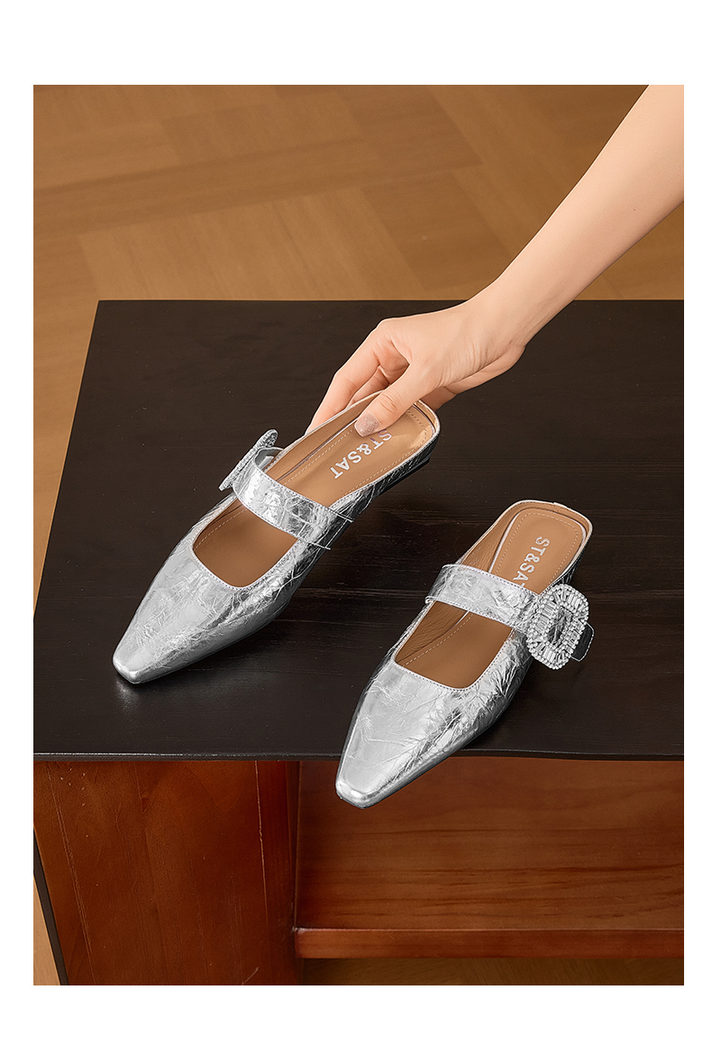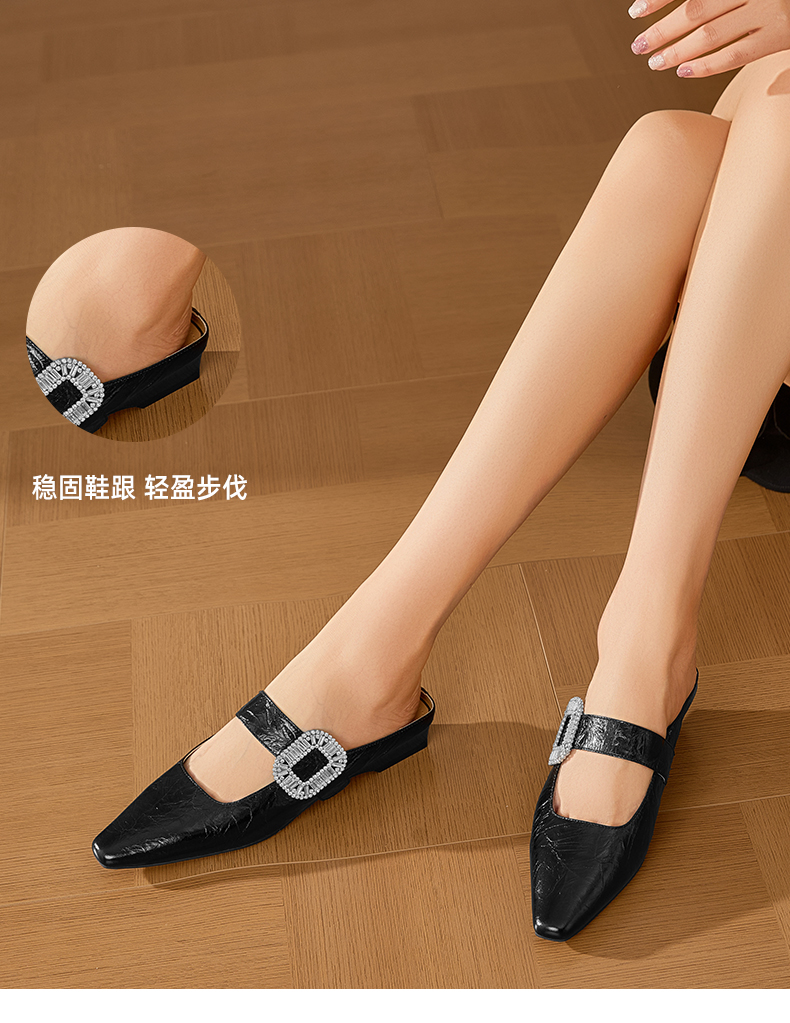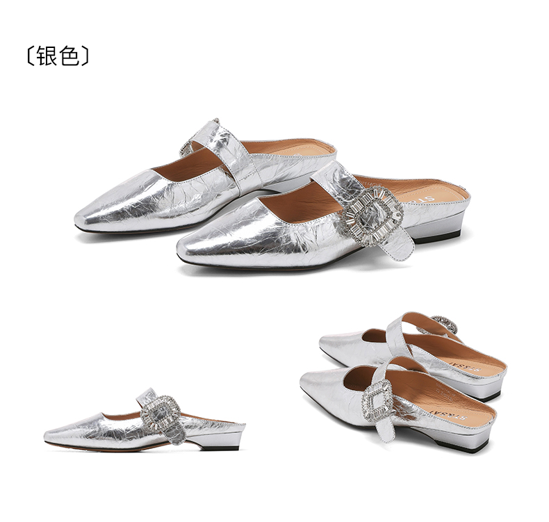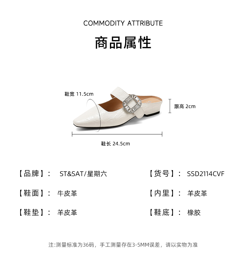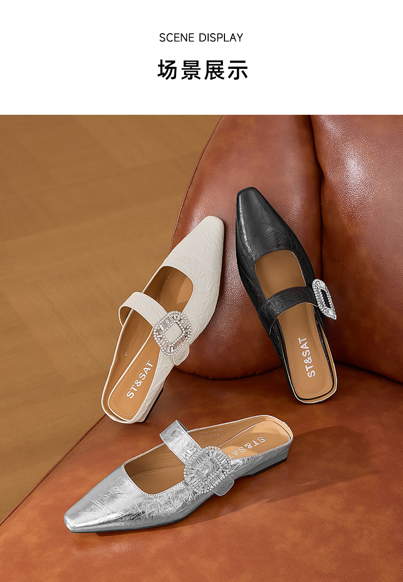 星期六褶皱设计包头方扣玛丽珍穆勒拖SSD2114CVF