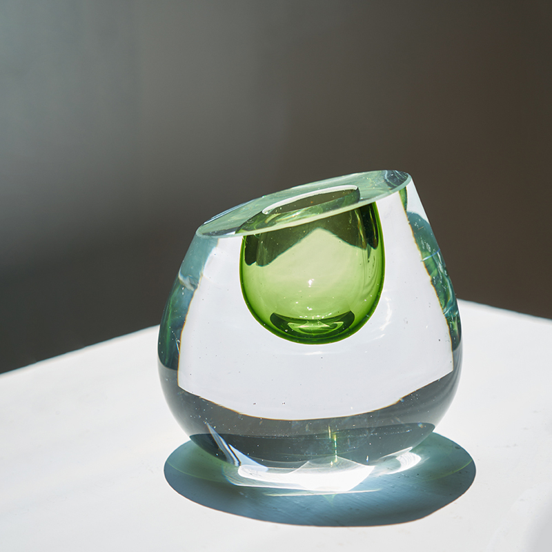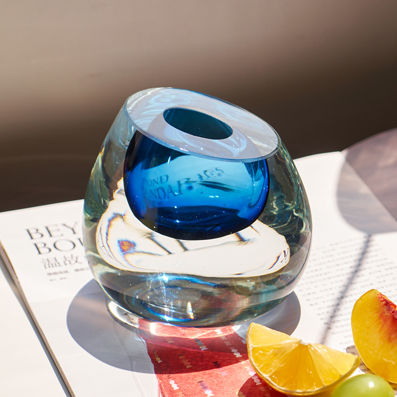北欧高级感斜口彩色琉璃厚重迷你玻璃花瓶居家桌面水培单支小口瓶