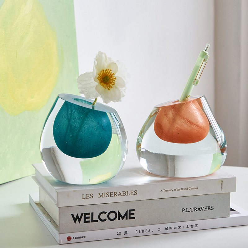ins风简约北欧彩色厚底玻璃花瓶水培鲜花客厅酒店餐桌台面迷你瓶