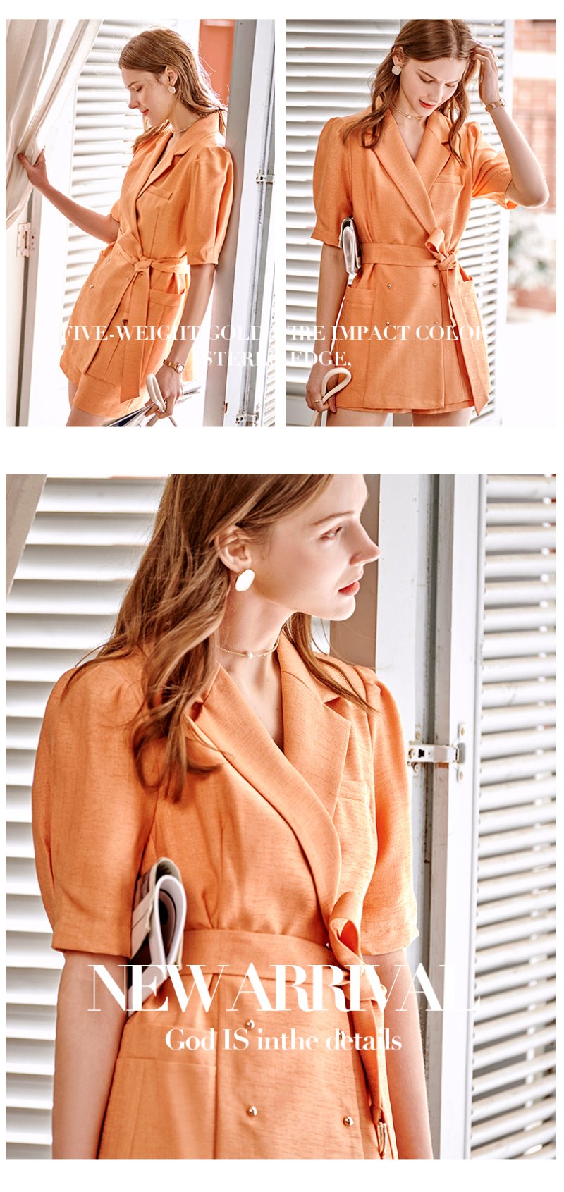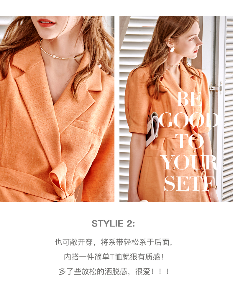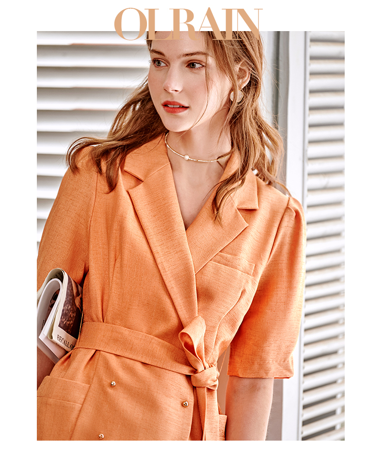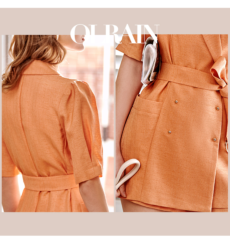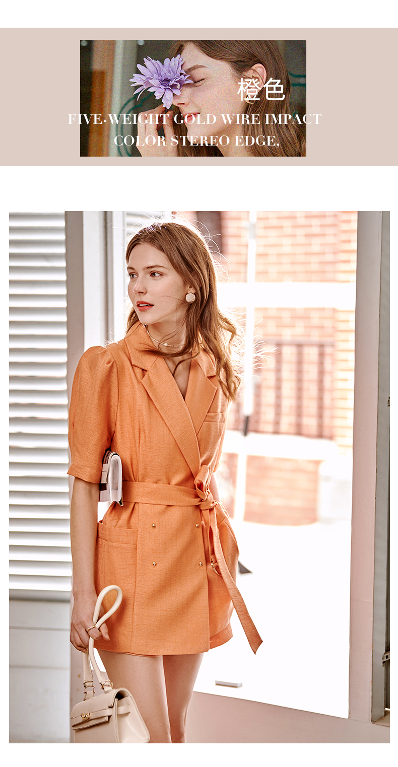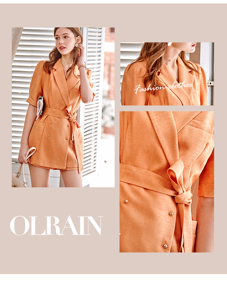 欧芮儿西装时尚套装女2021春夏新款双排扣外套+A字短裤气质两件套