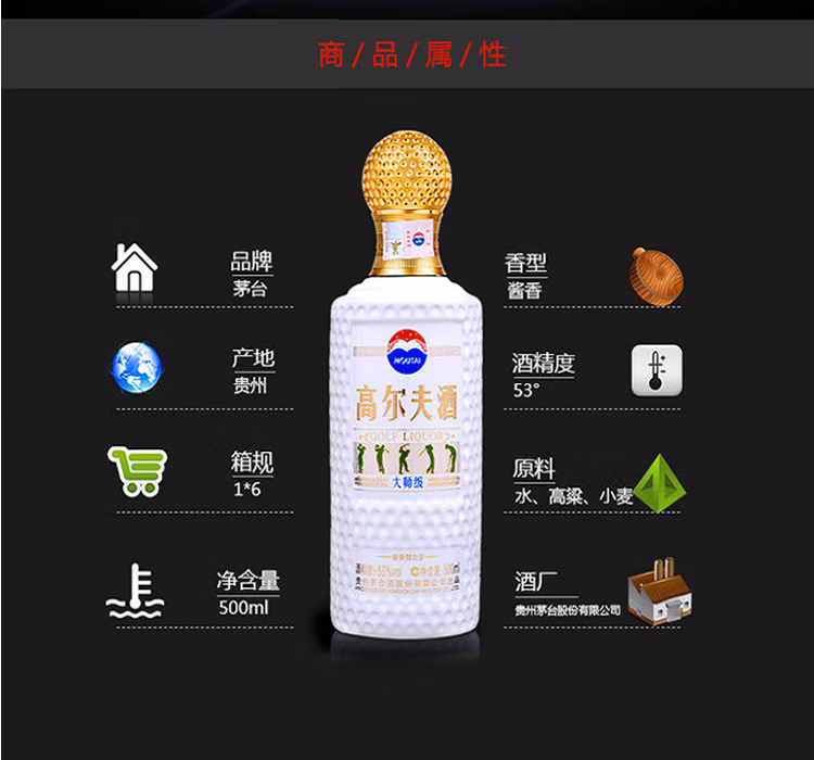 贵州茅台高尔夫大师级酒酱香型白酒53度500ml*1瓶/2瓶/6瓶