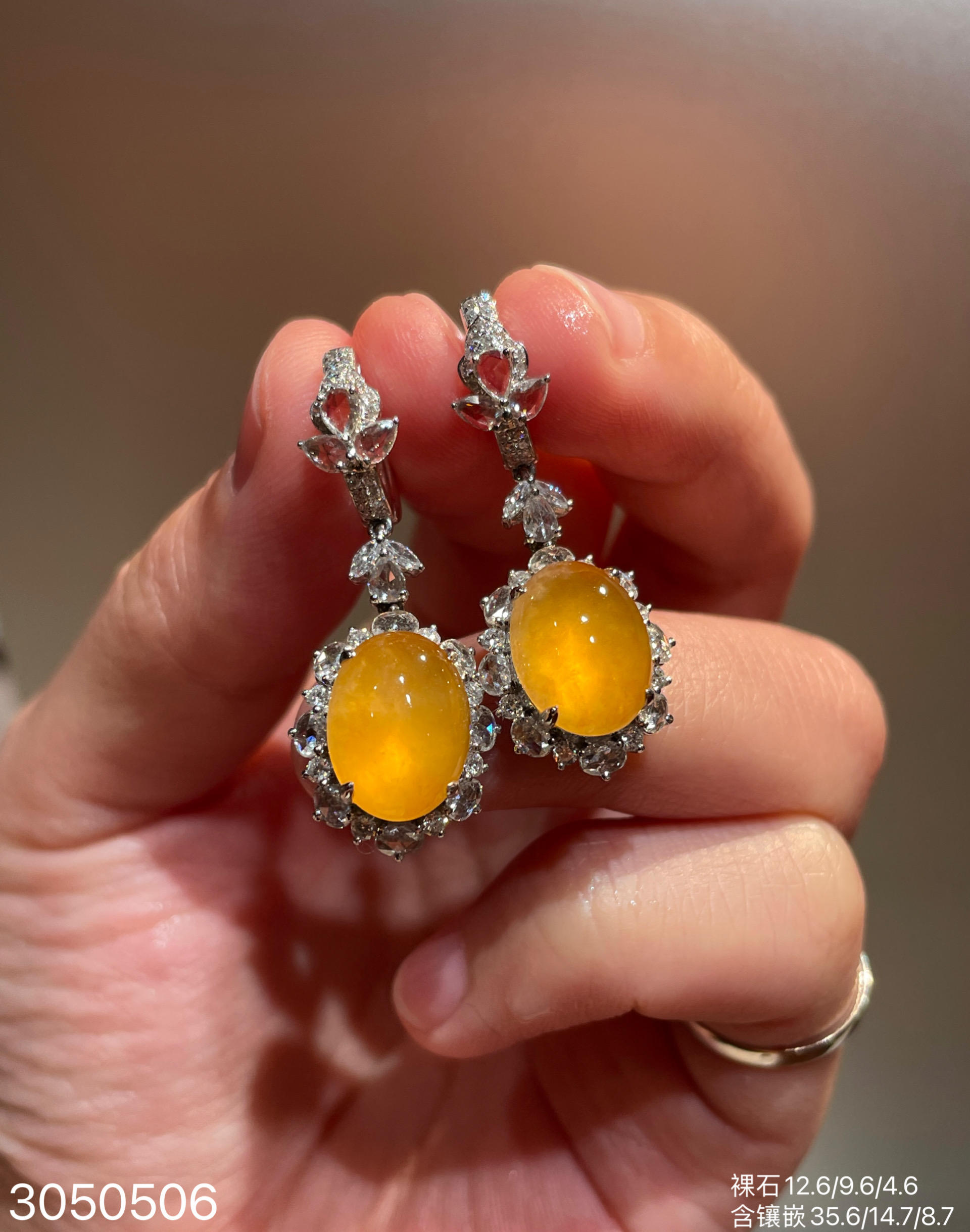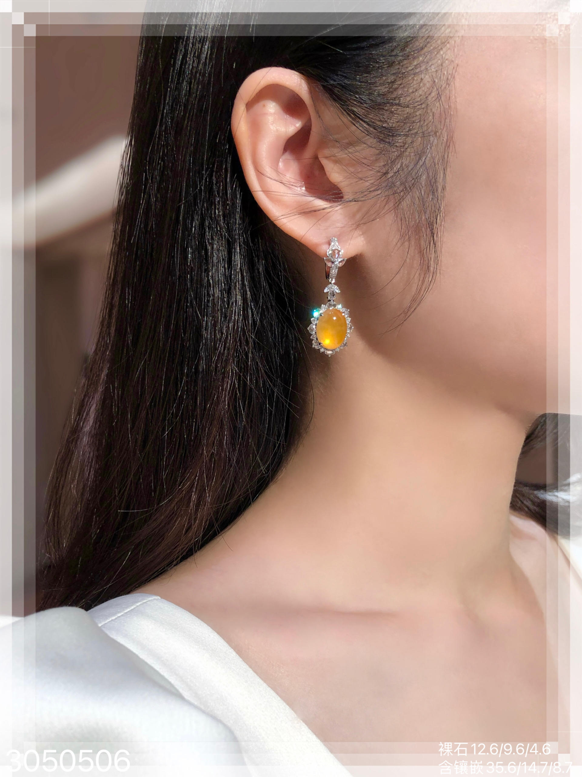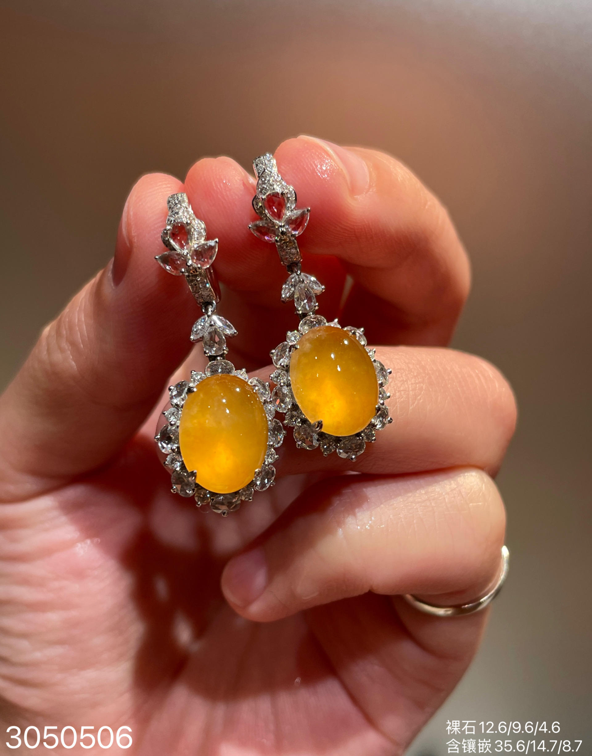 3050506、近玻璃金翡蛋面耳坠。具体价格微信咨询