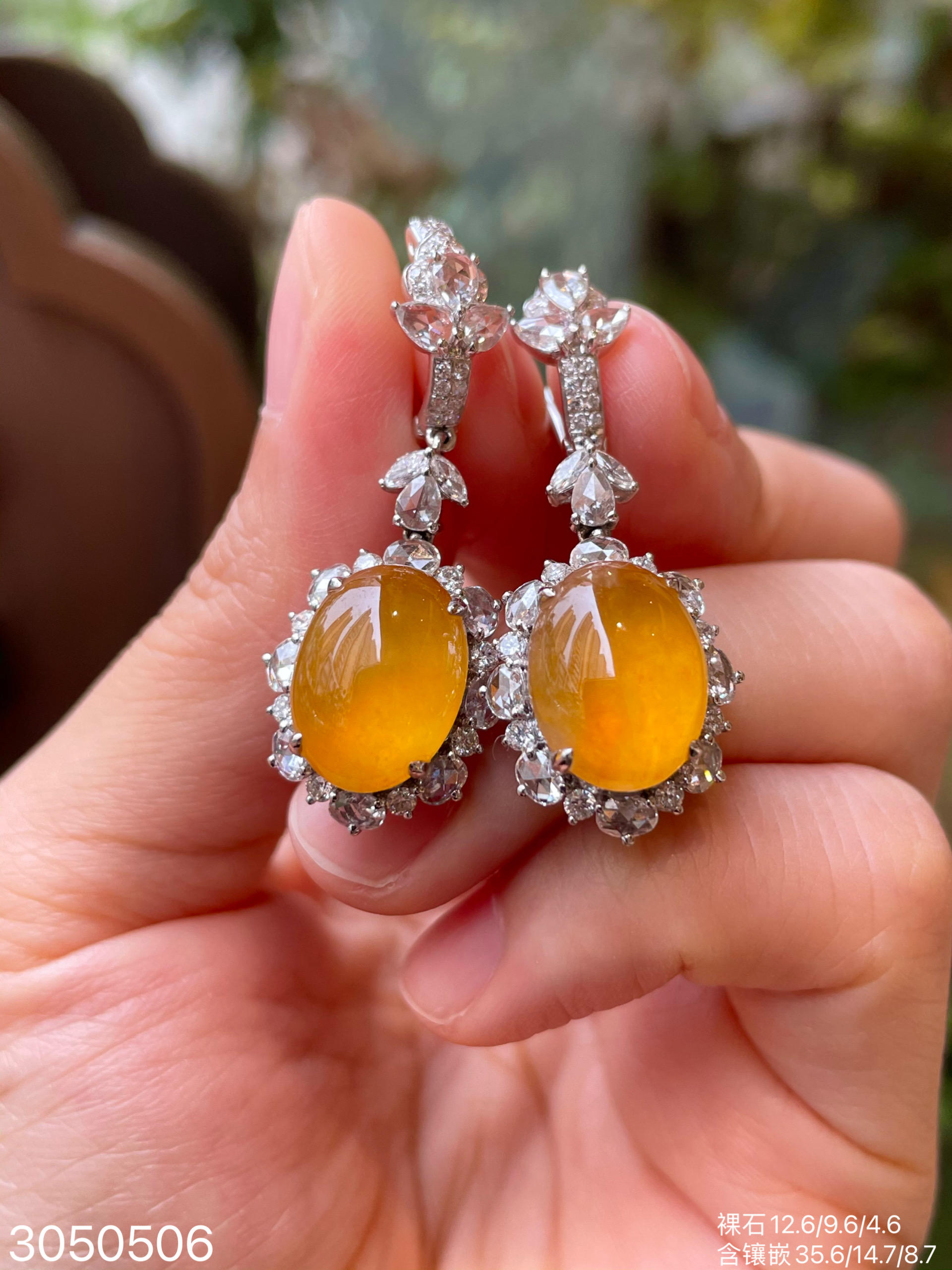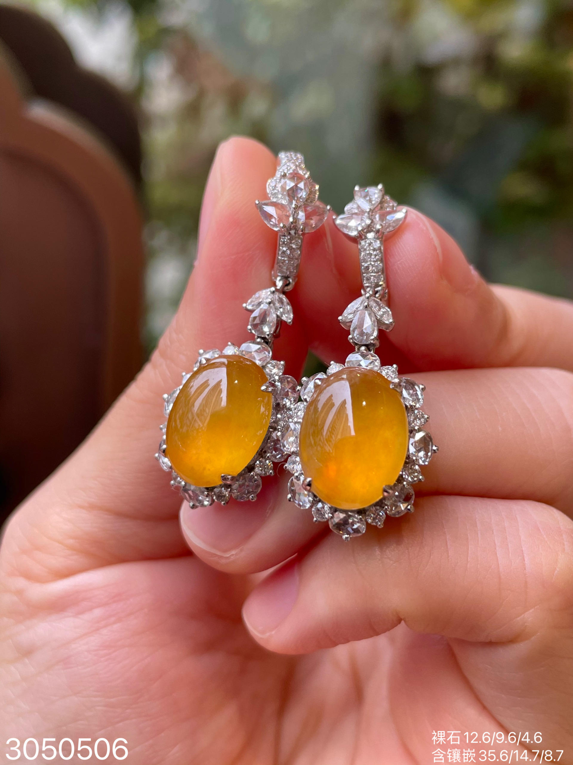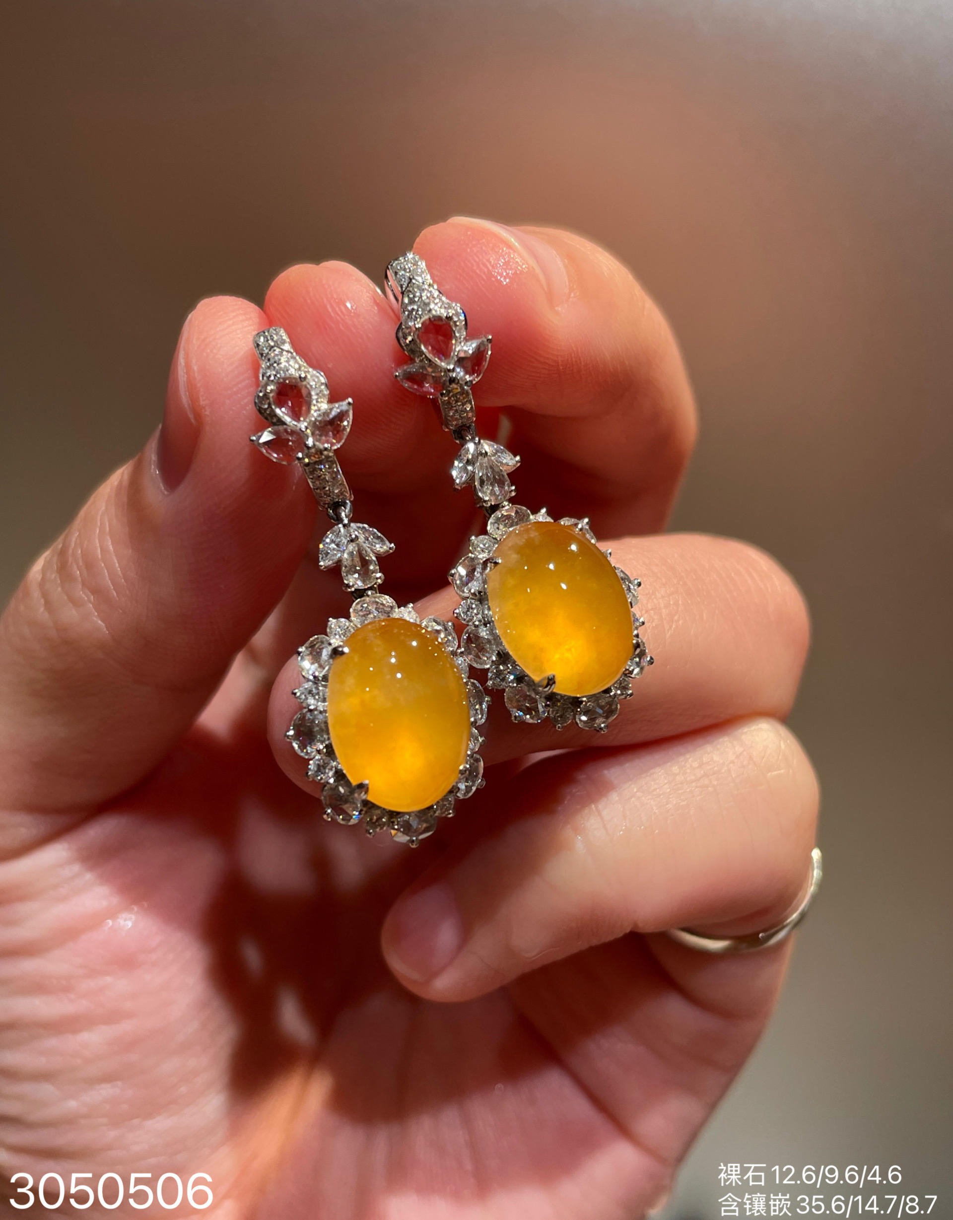 3050506、近玻璃金翡蛋面耳坠。具体价格微信咨询