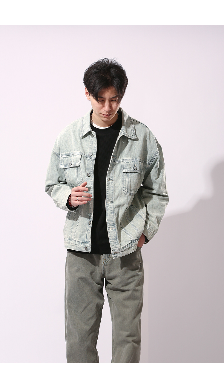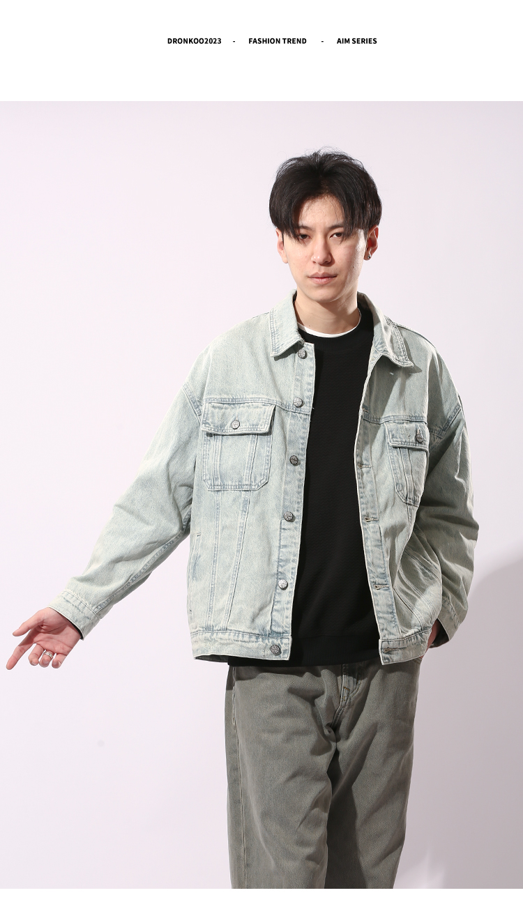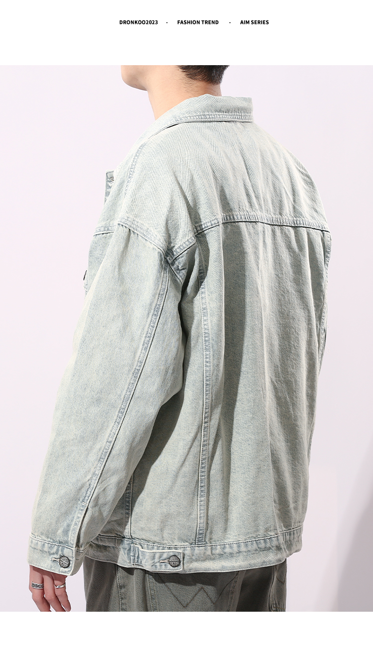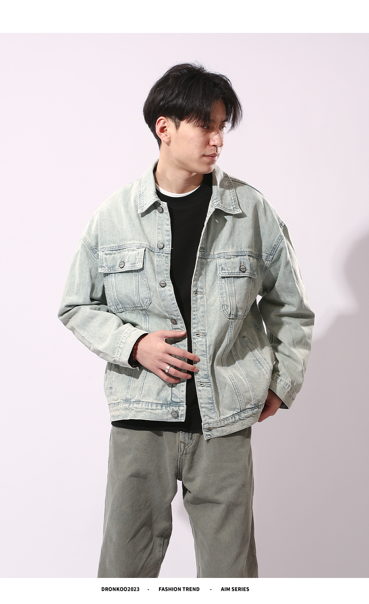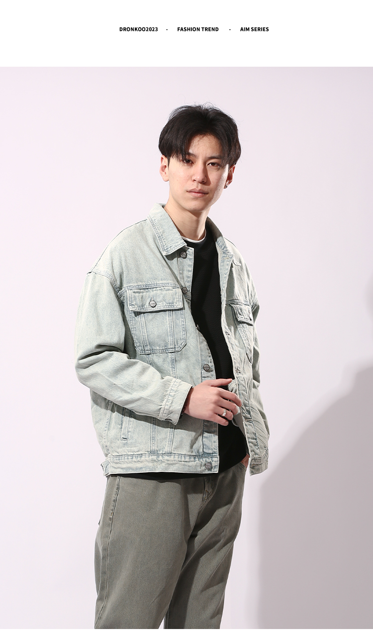 DRONKOO 2024 翻领前盖袋双分割结构浅色牛仔中厚夹克
