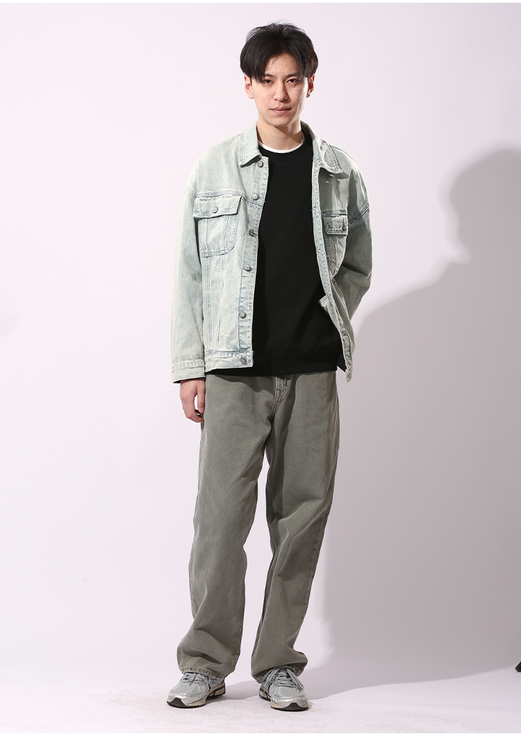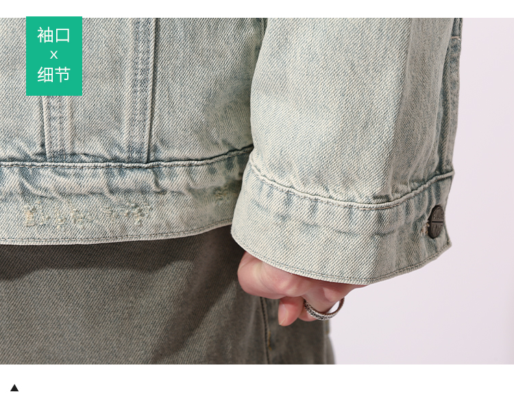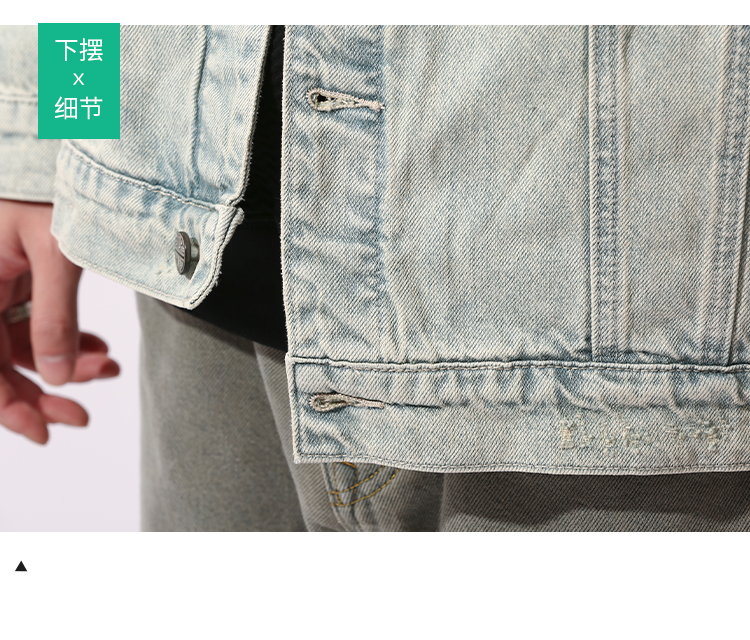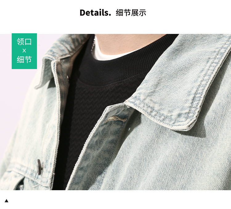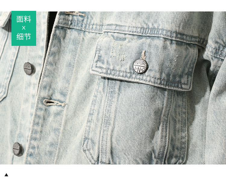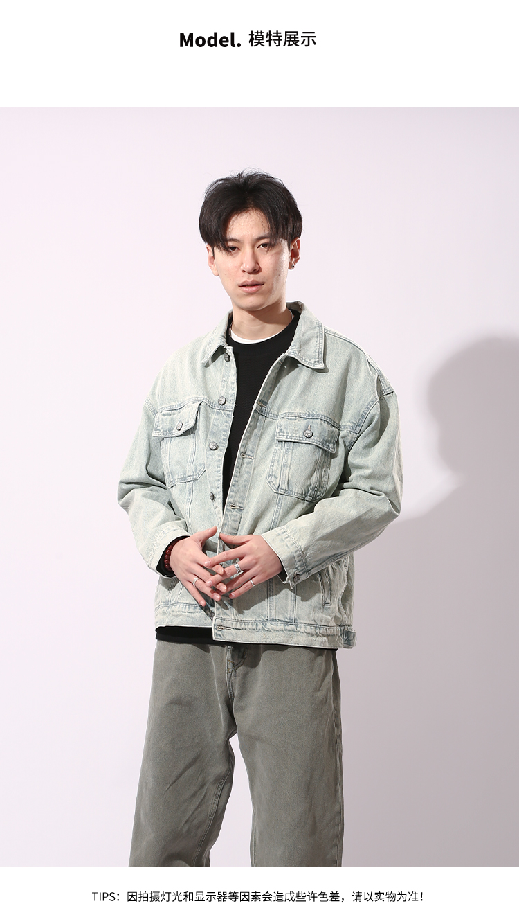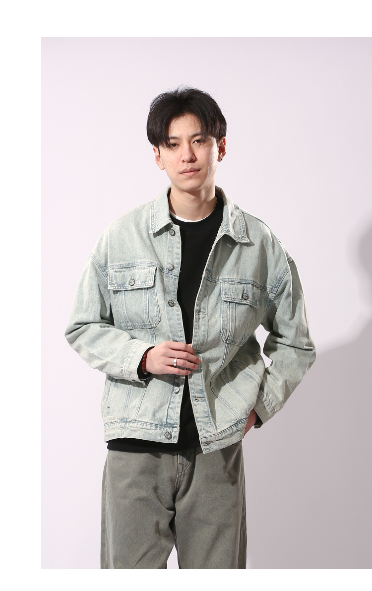 DRONKOO 2024 翻领前盖袋双分割结构浅色牛仔中厚夹克