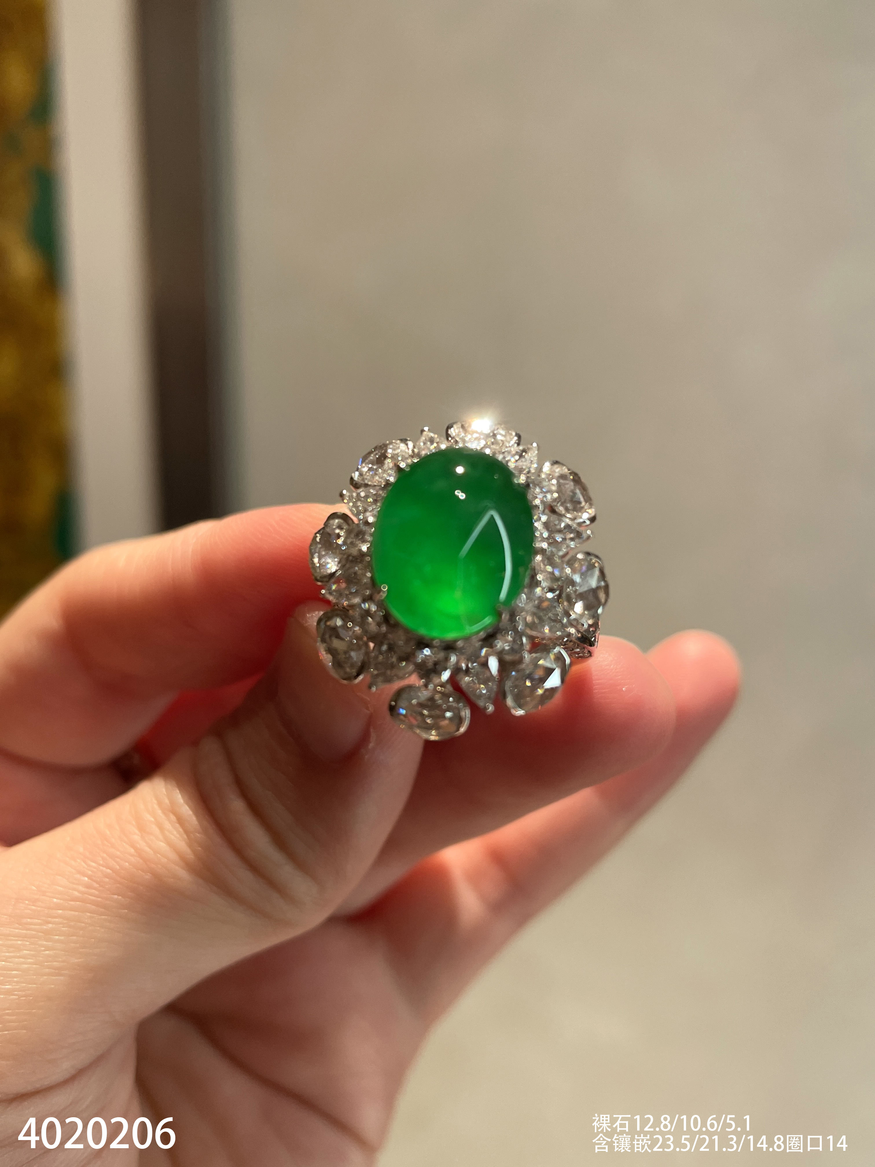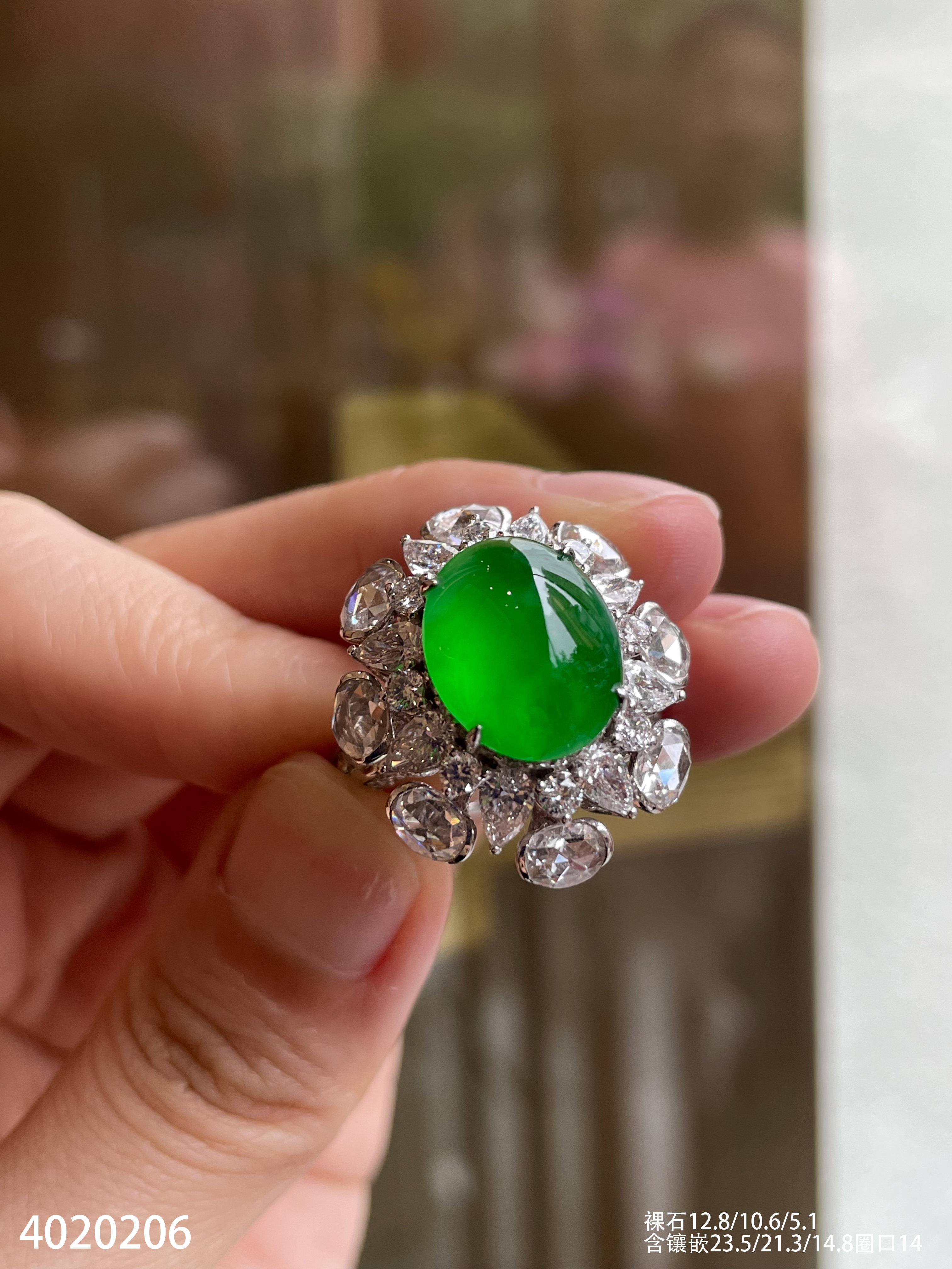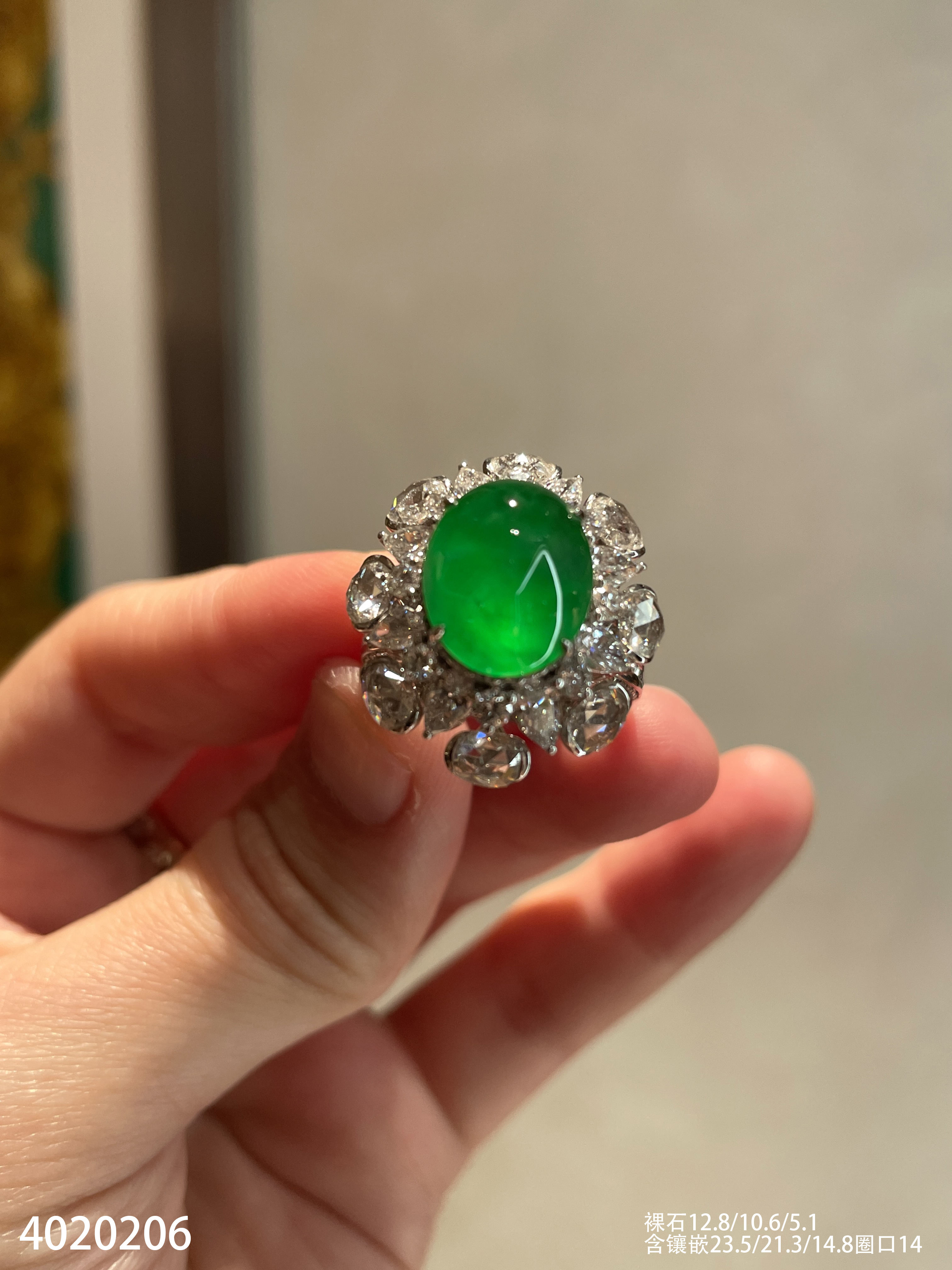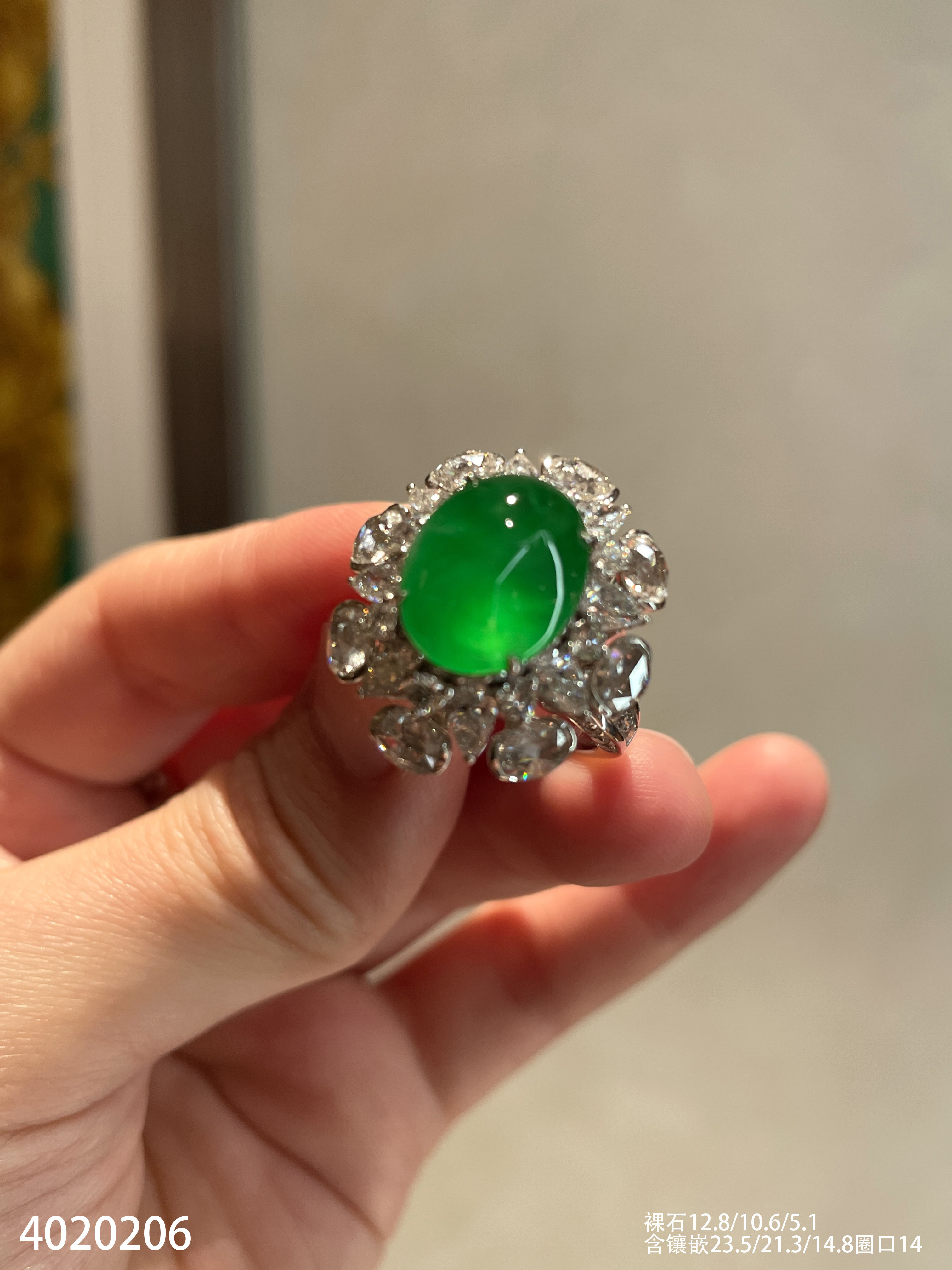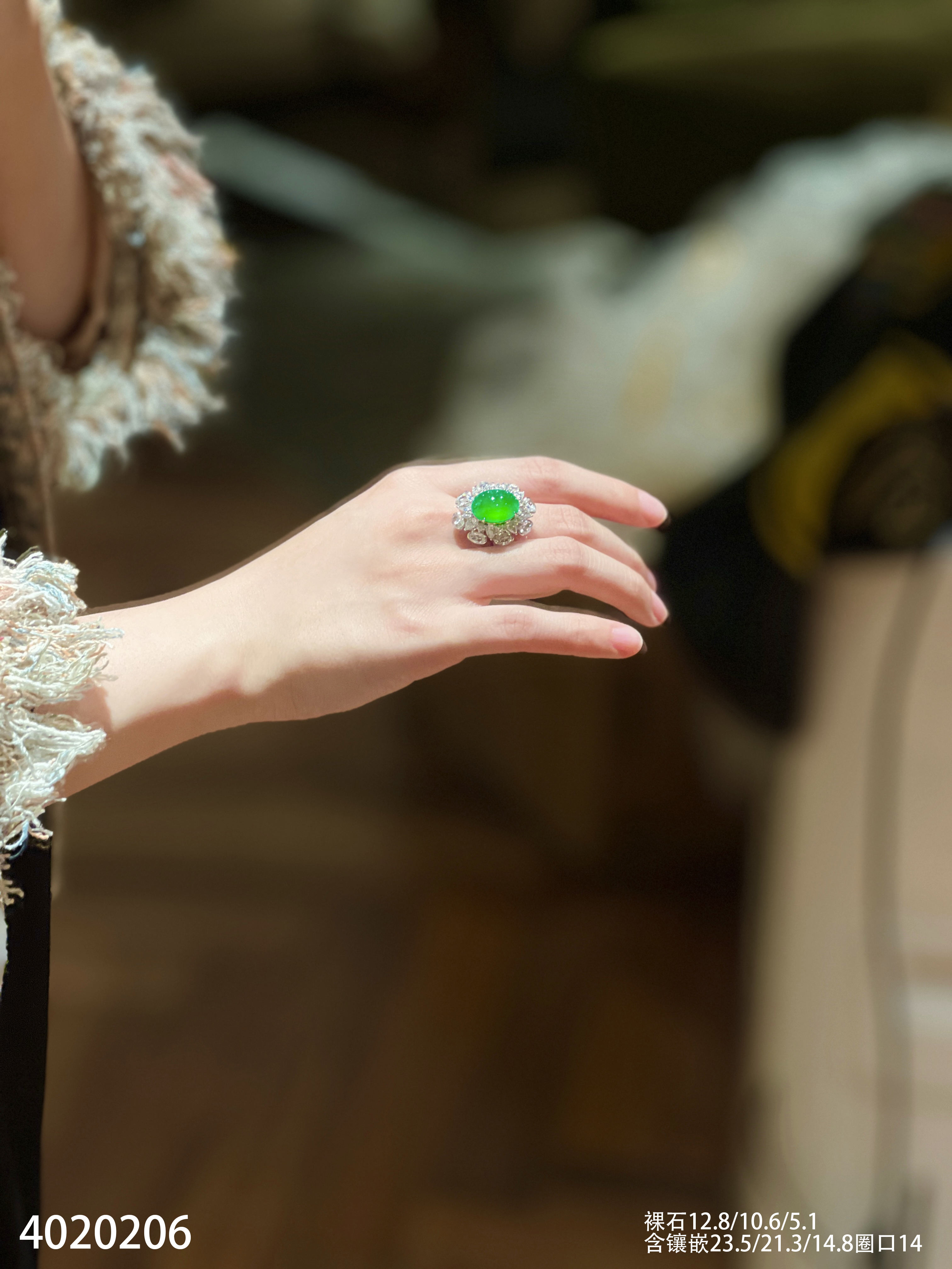 老坑玻璃种艳绿蛋面戒指【4020206】具体价格微信咨询