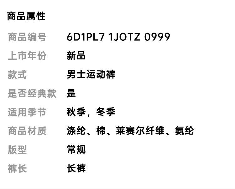 EMPORIO ARMANI 阿玛尼 男士莱赛尔混纺针织休闲运动裤 黑色 6D1PL7 1JOTZ 0999