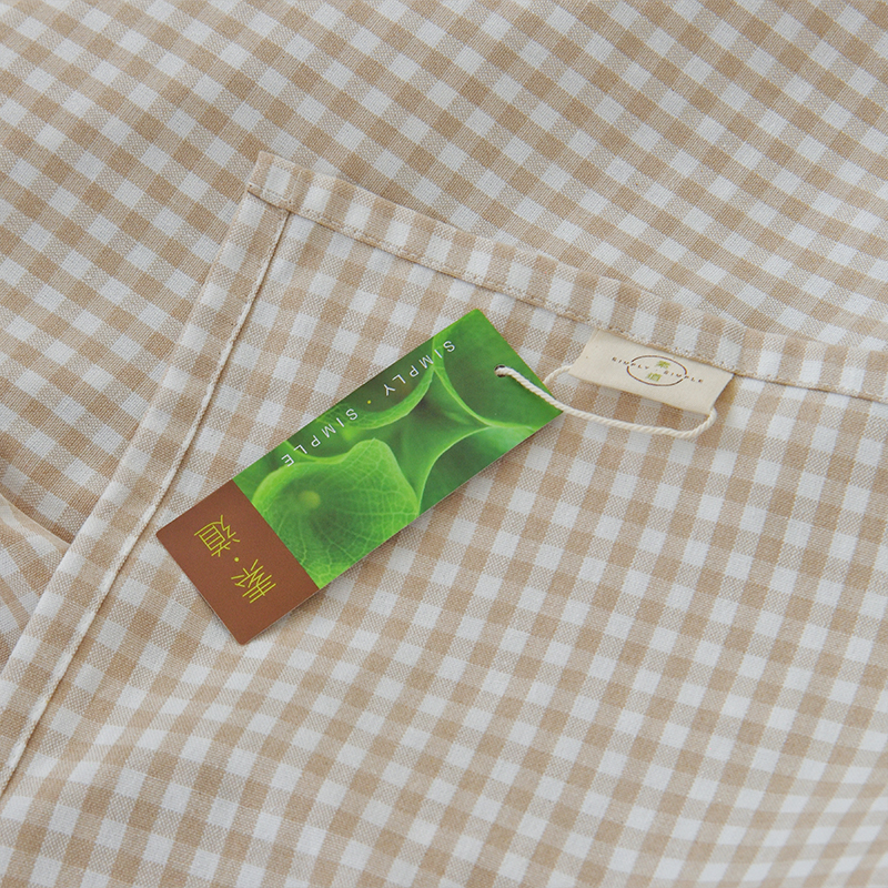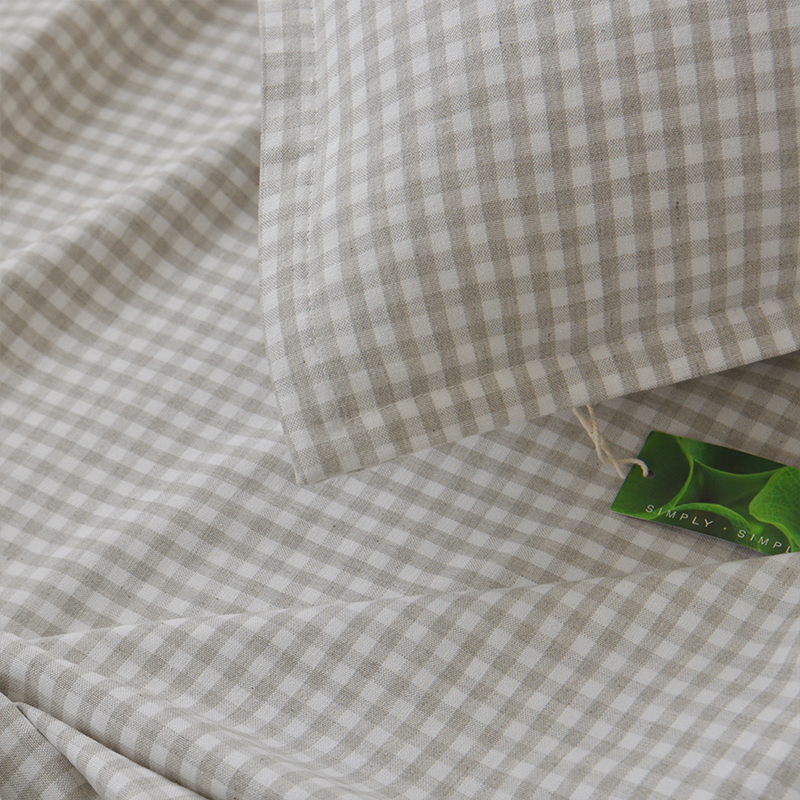 产品卖点:图案主题【灰白格】【棕白格】清新文艺的小格子面料,简约棉麻的质感,苎麻纤维粗空隙大、独有空腔导汗结构特别适合夏季使用,清爽不易粘身,颜色是由选自特优品种苎麻+有机彩棉棉花原本的颜色,颜色和图案是提花织出来的,不是印染,简单静好,安全感满满。