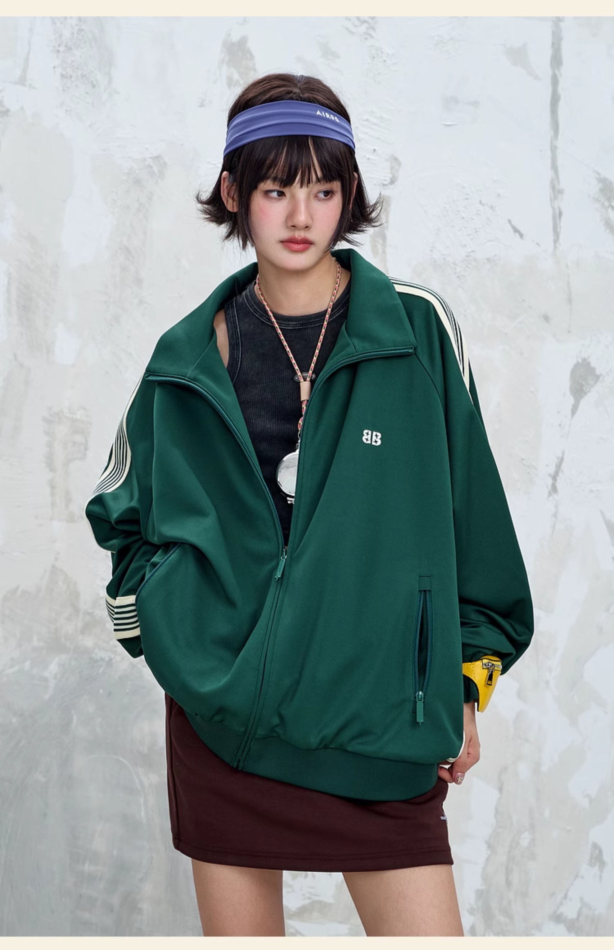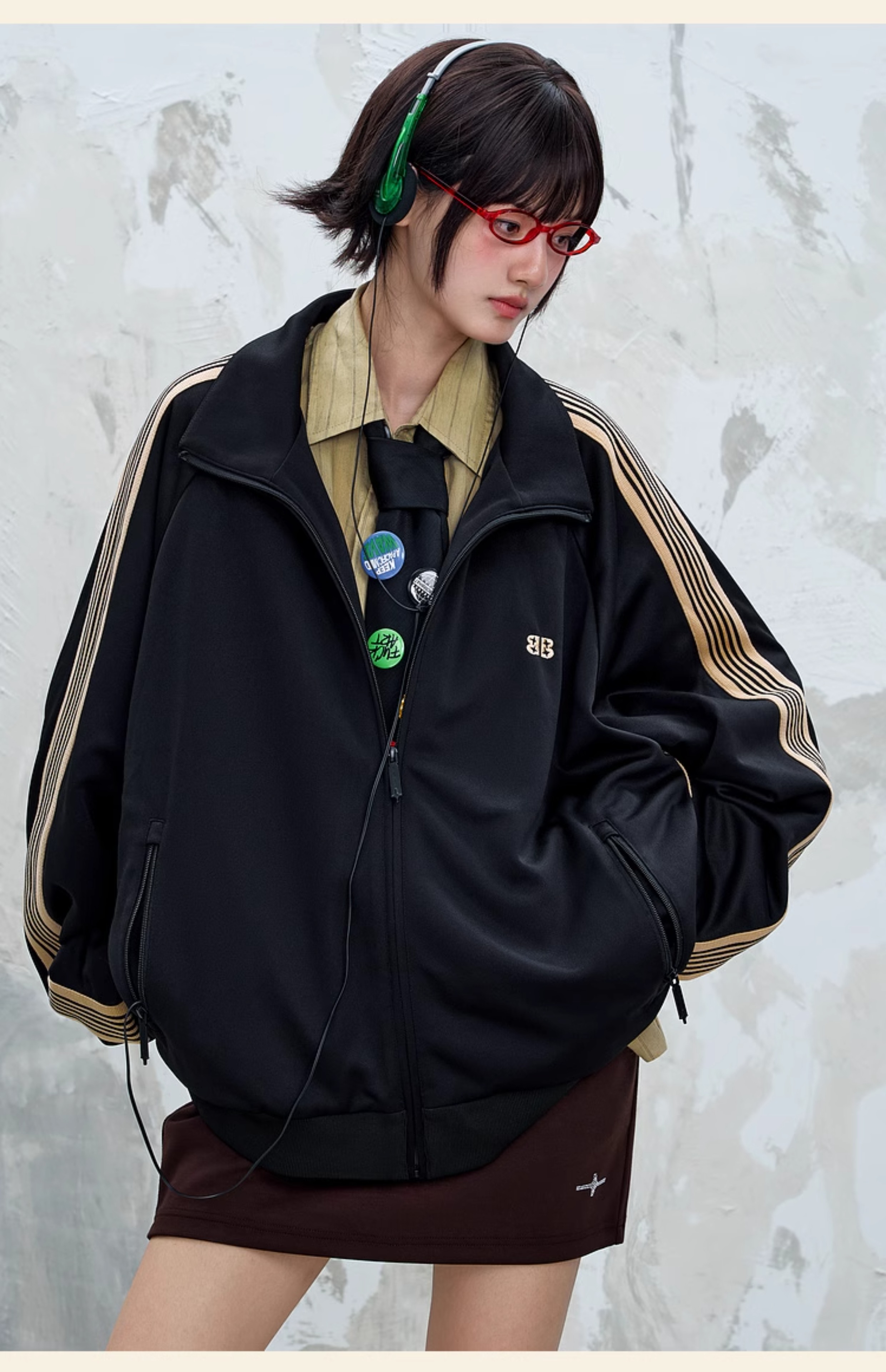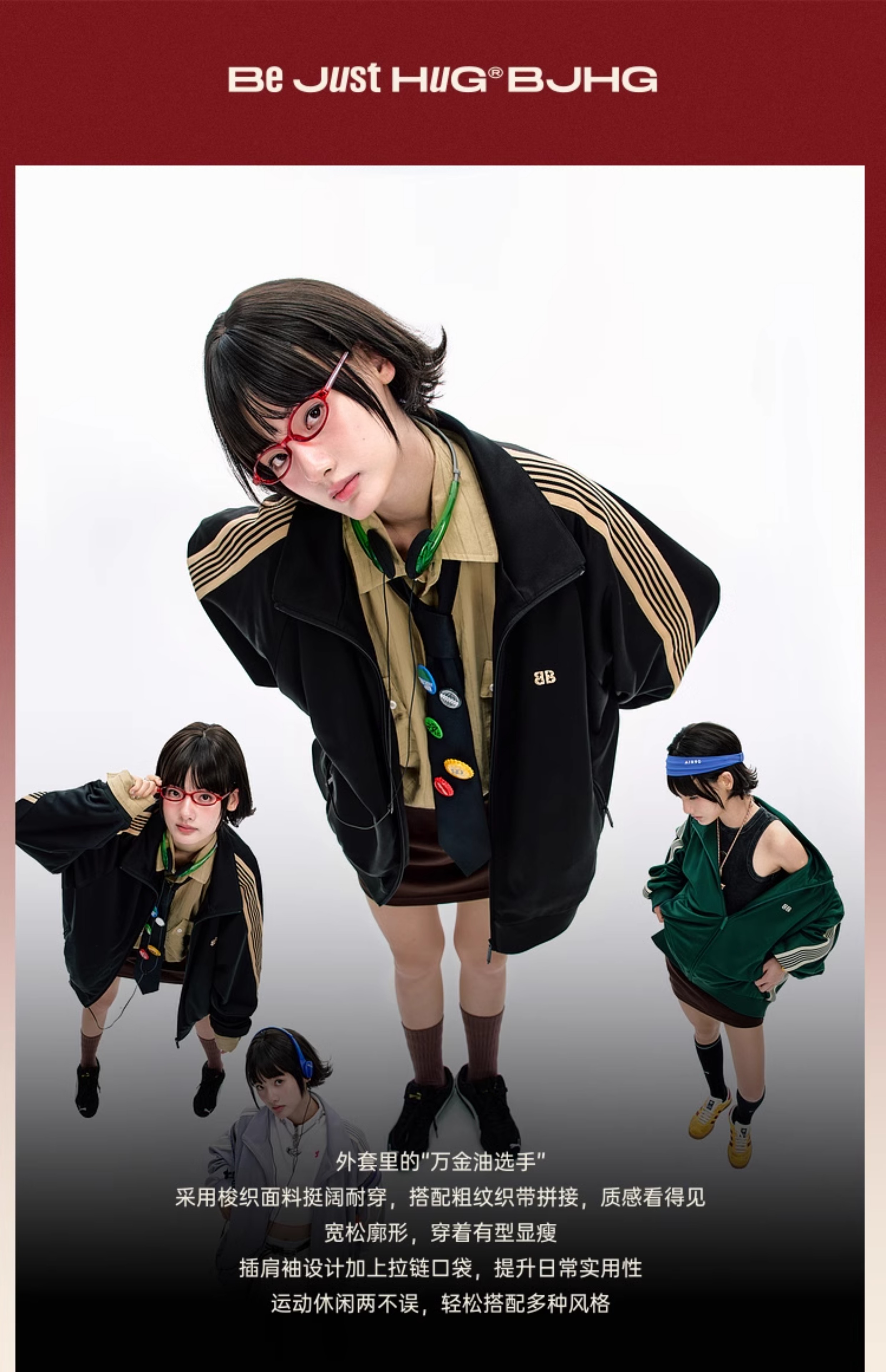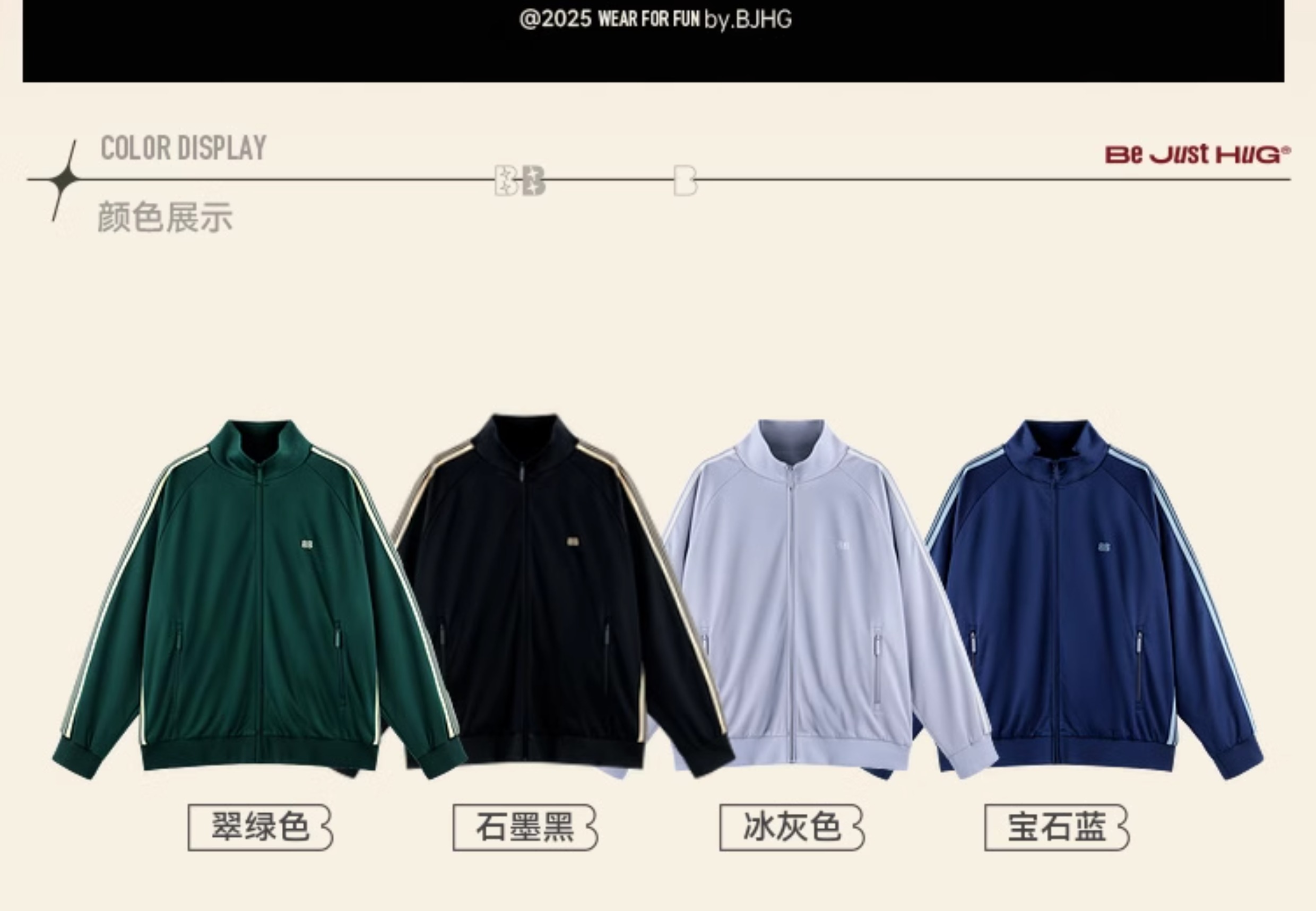 BJHG不计后果休闲运动男士外套秋季2025新款百搭拼接插肩袖夹克
