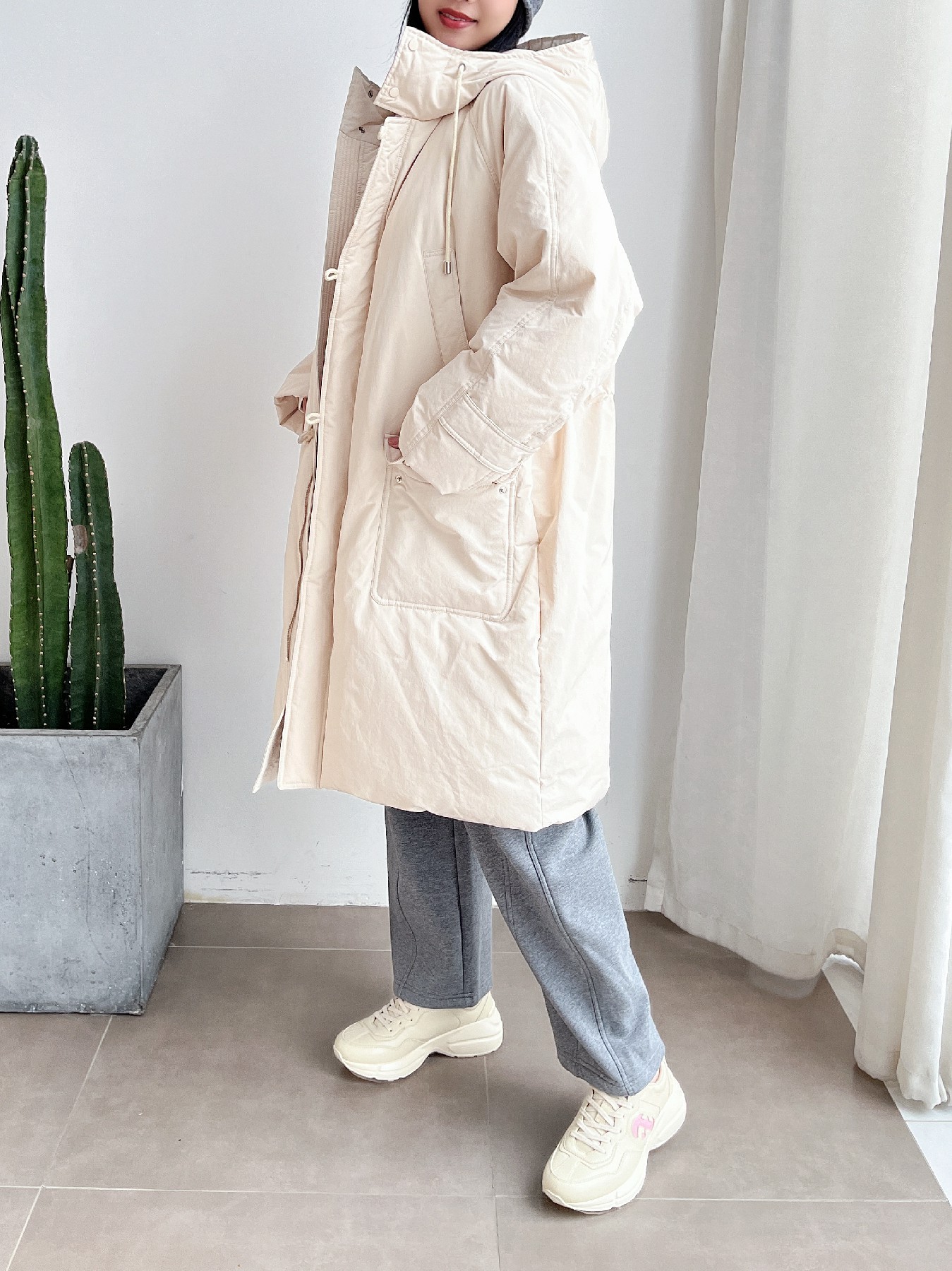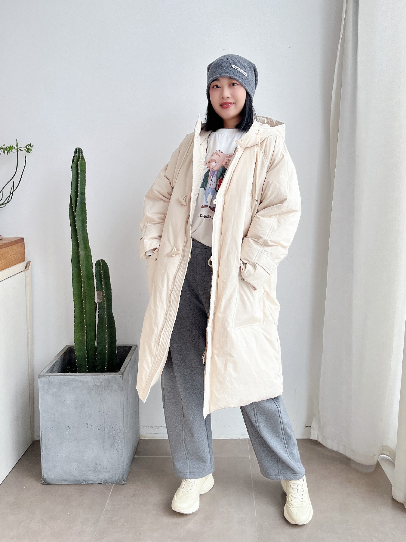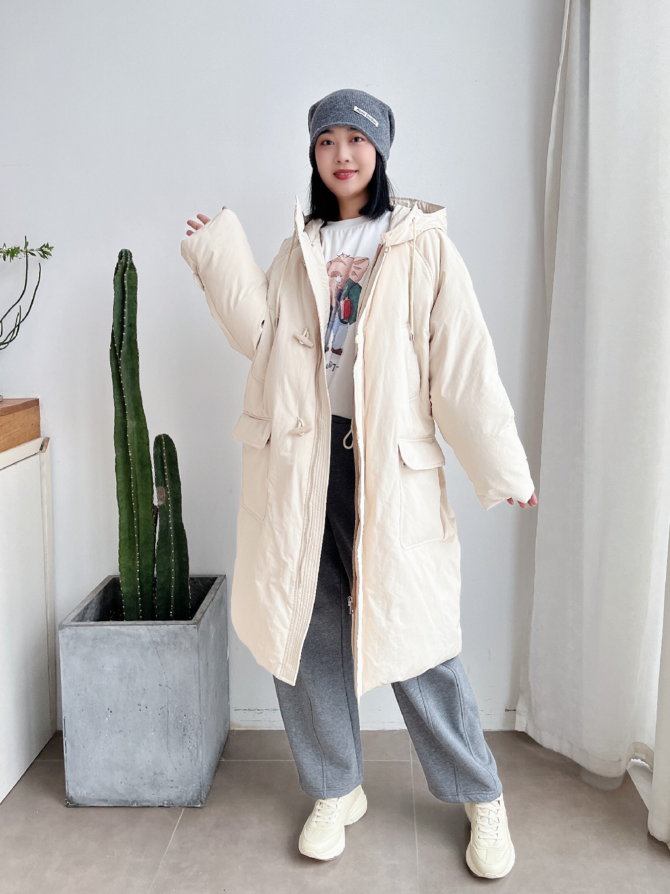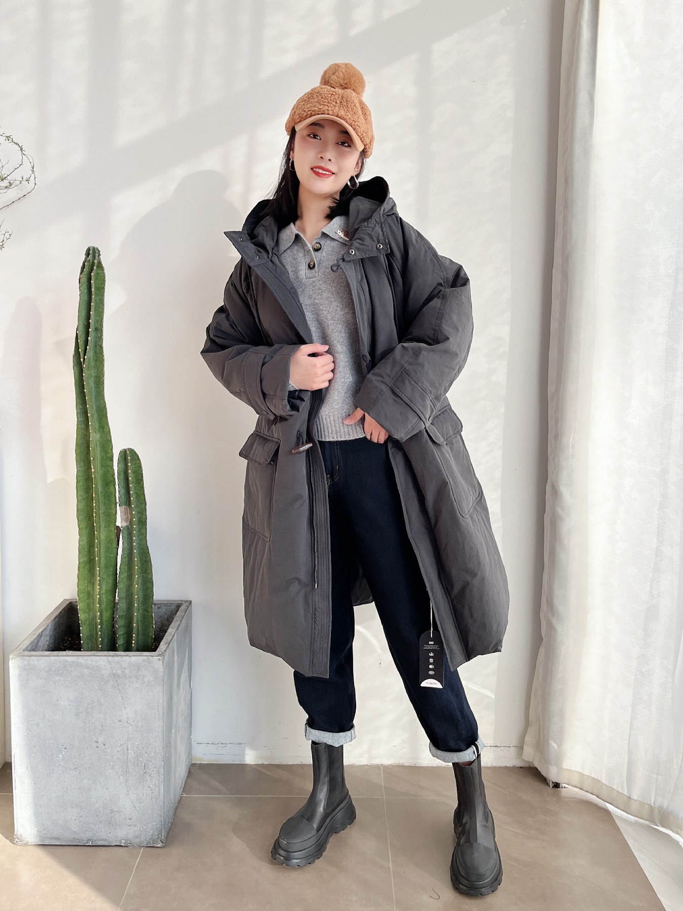 新款牛角扣鹅绒长款加厚羽绒服