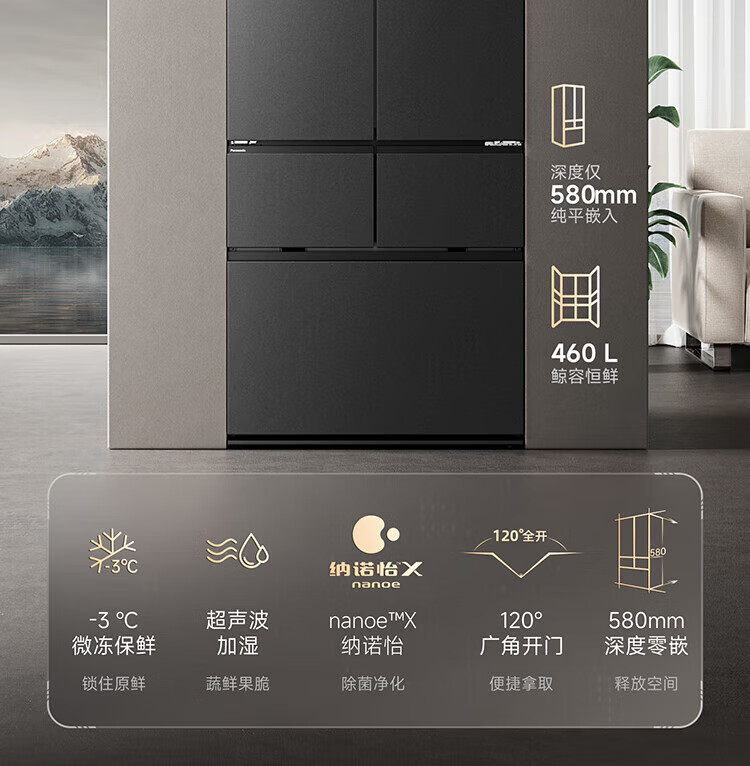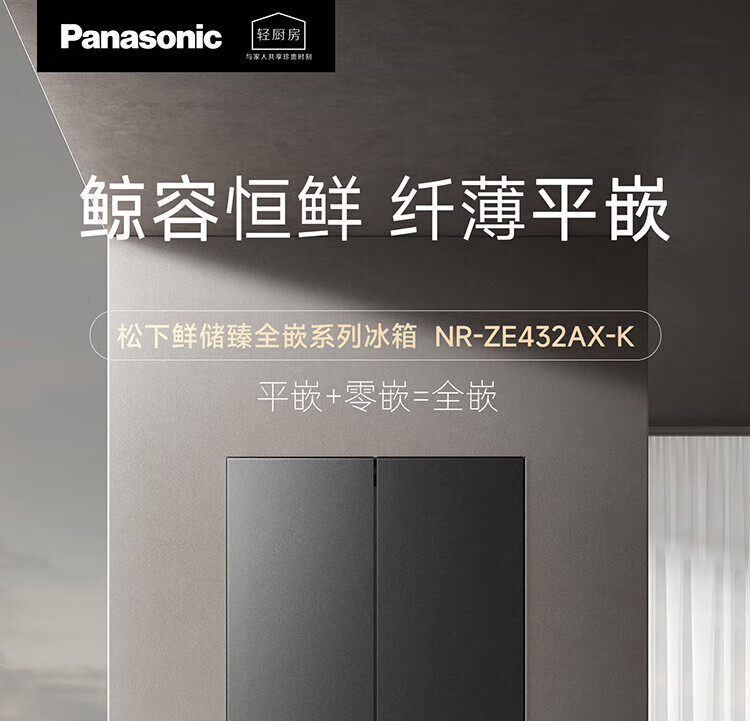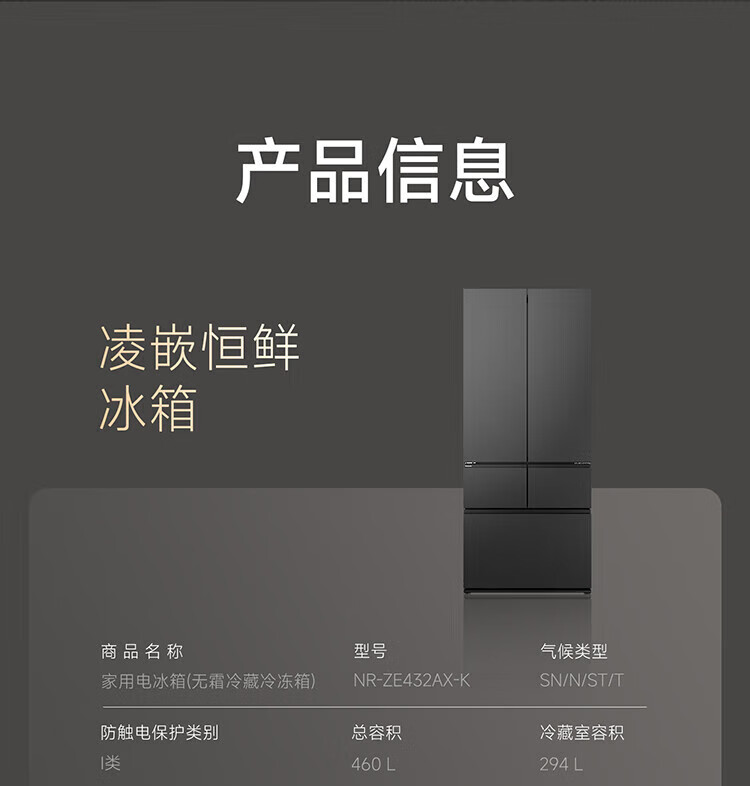 松下(Panasonic)新大白PRO460升58CM超薄全嵌零嵌 一级能效风冷无霜多门冰箱纳诺怡X自动制冰双循NR-ZE432AX-K