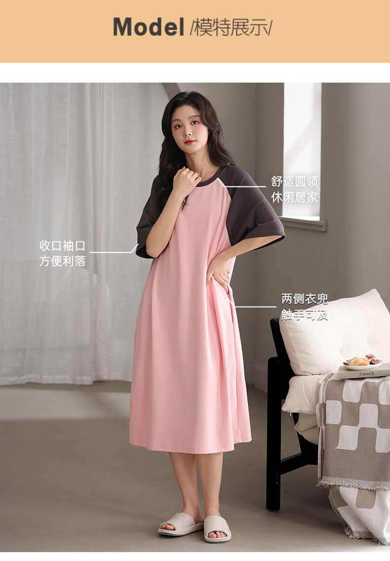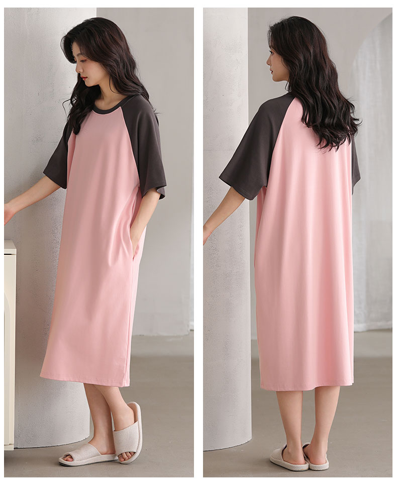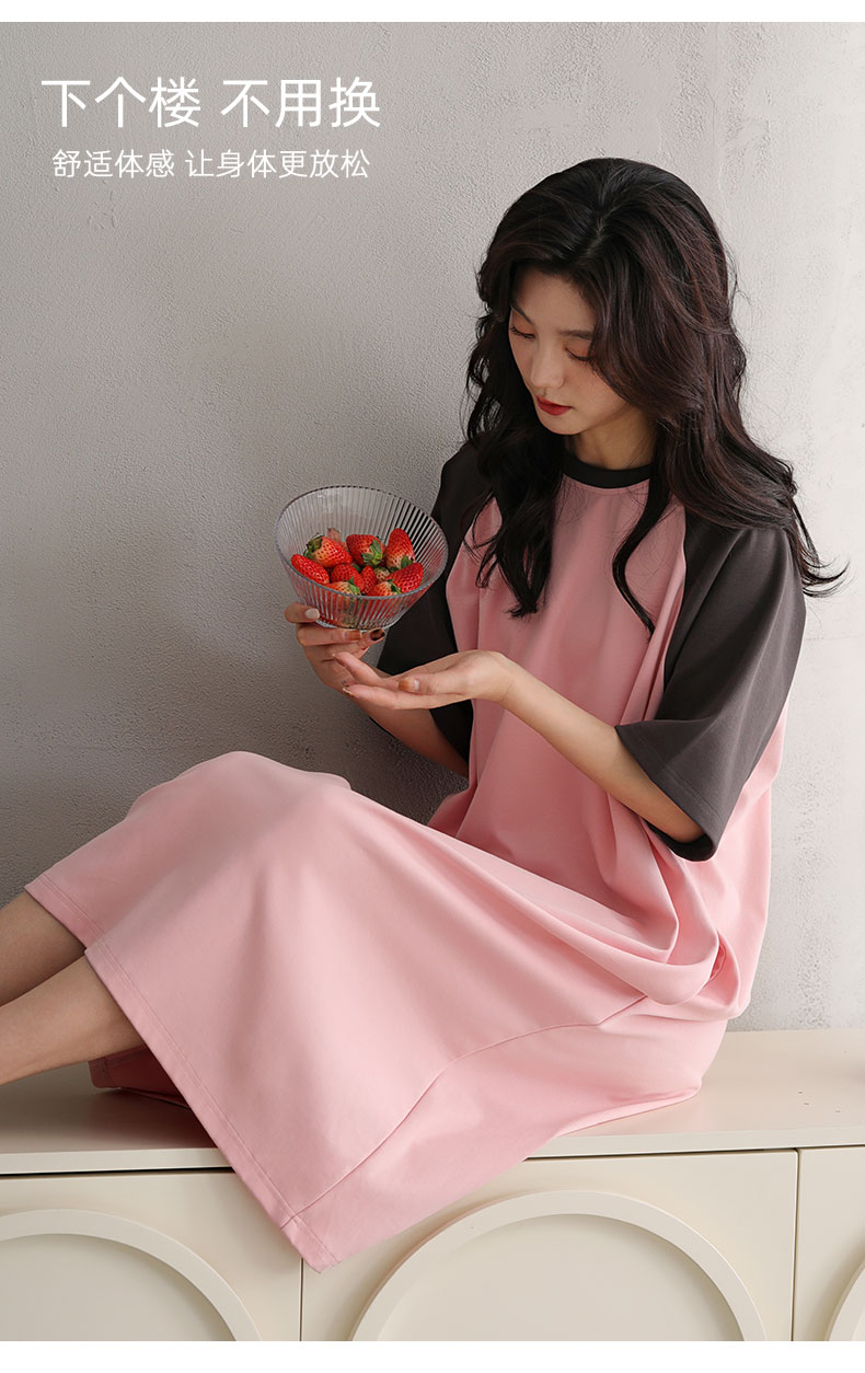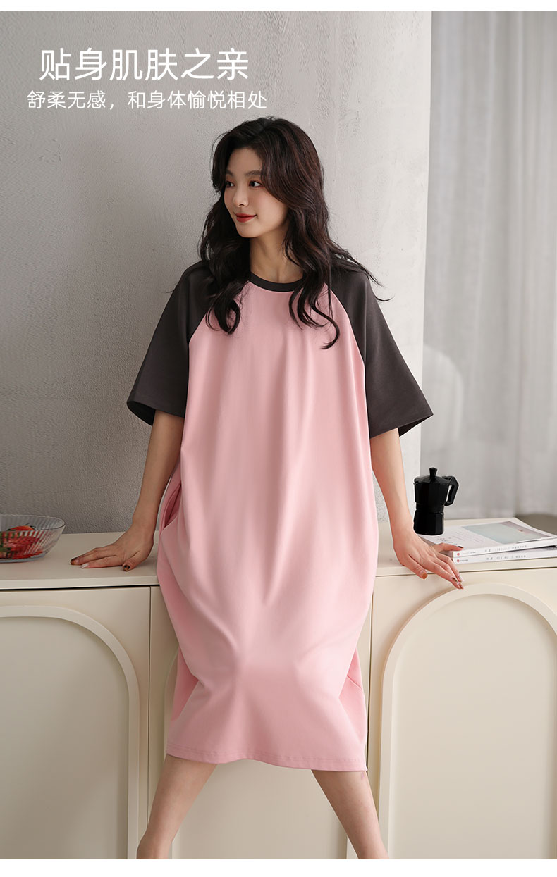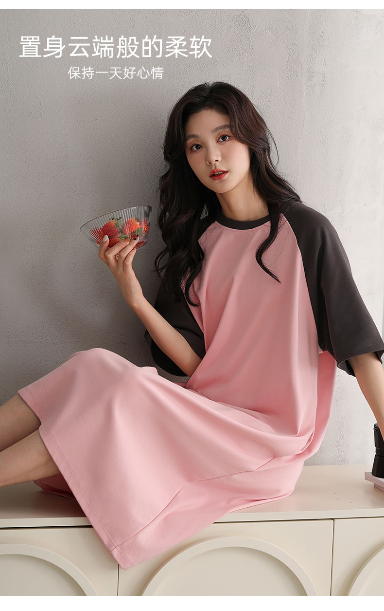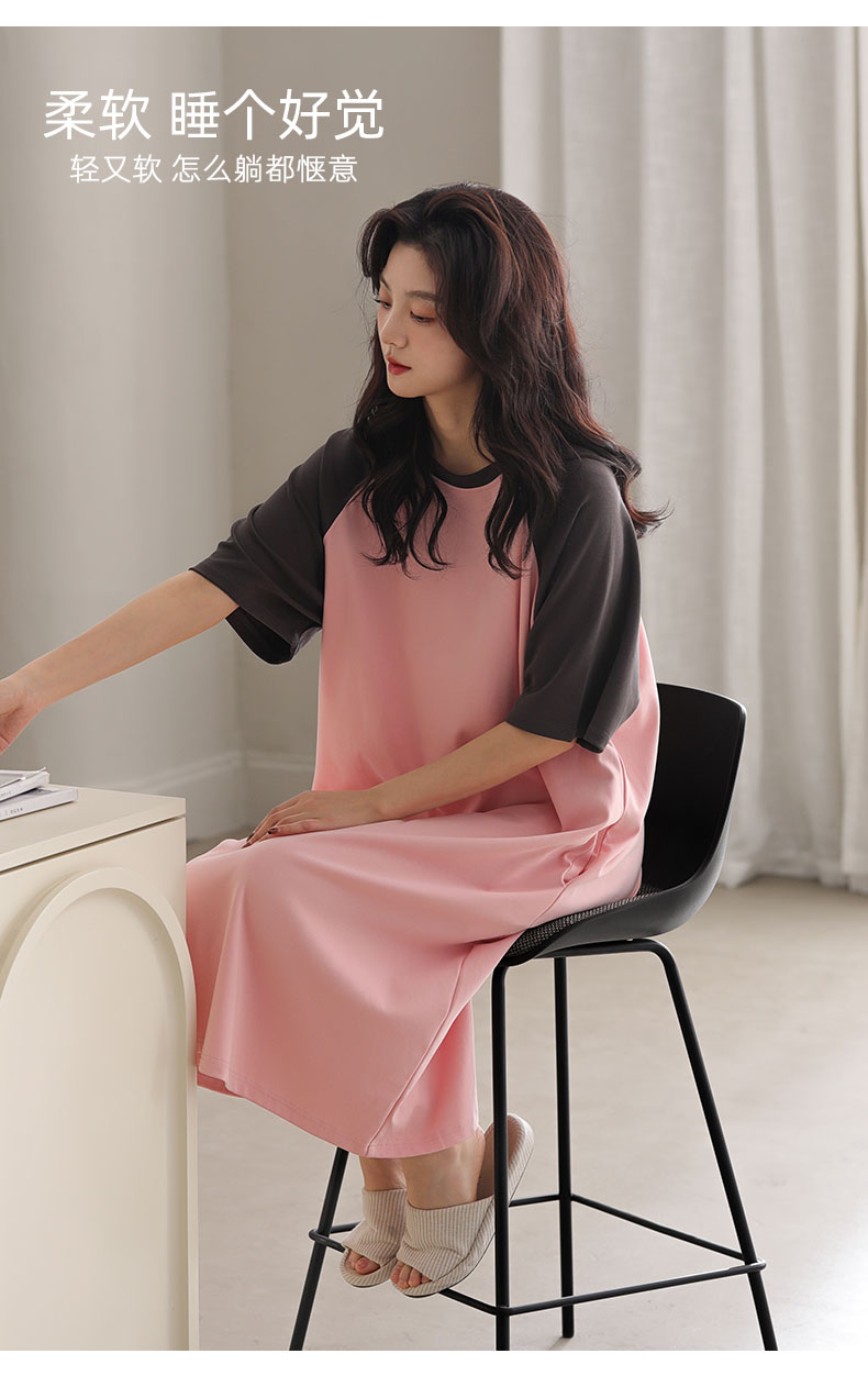 洁丽雅正品女士大码过膝长裙气质女孩短袖睡裙舒适大码宽松家居服