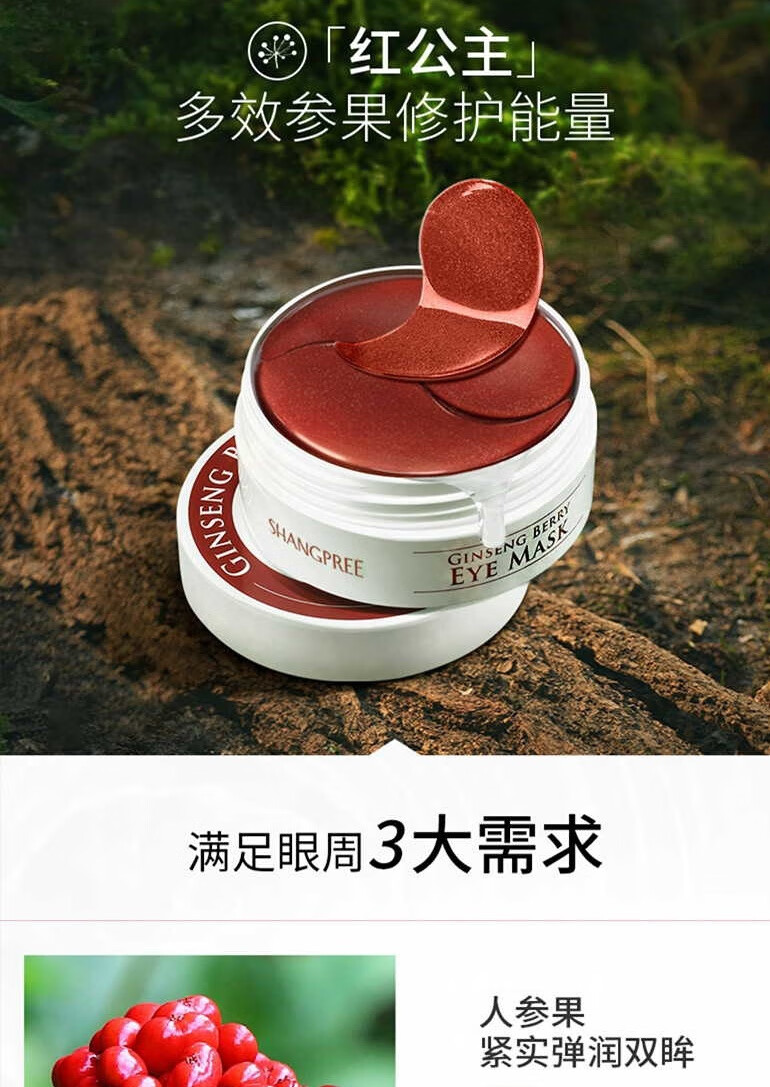 香蒲丽 红公主人参果眼膜贴60片(淡化细纹抗皱补水眼膜男女眼膜贴)