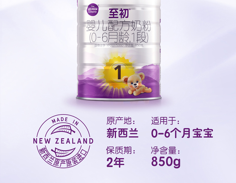 【整箱6罐】新国标A2至初1段新生婴幼至初牛奶粉一段850g克新西兰原装进口/A2-960819