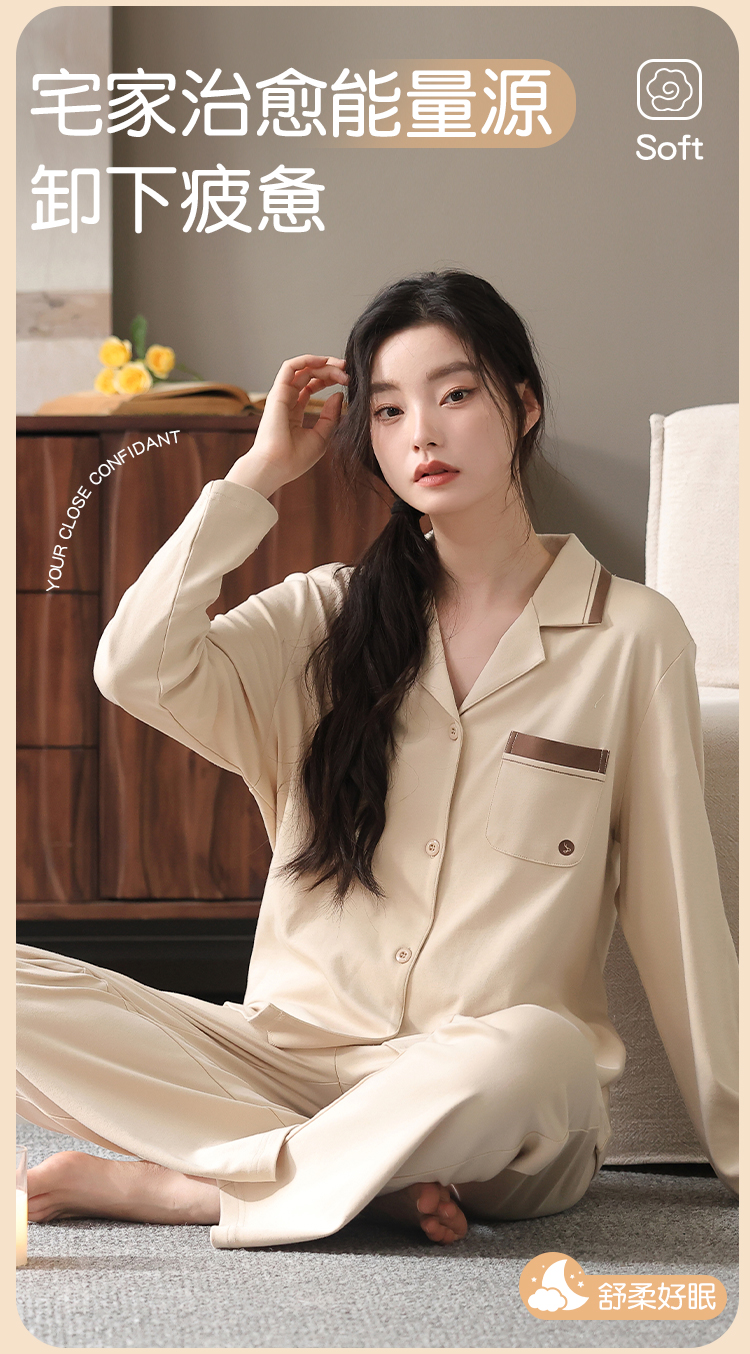 【清仓捡漏】【M-XXL】【秋鹿】女士春秋纯棉家居服开衫套装