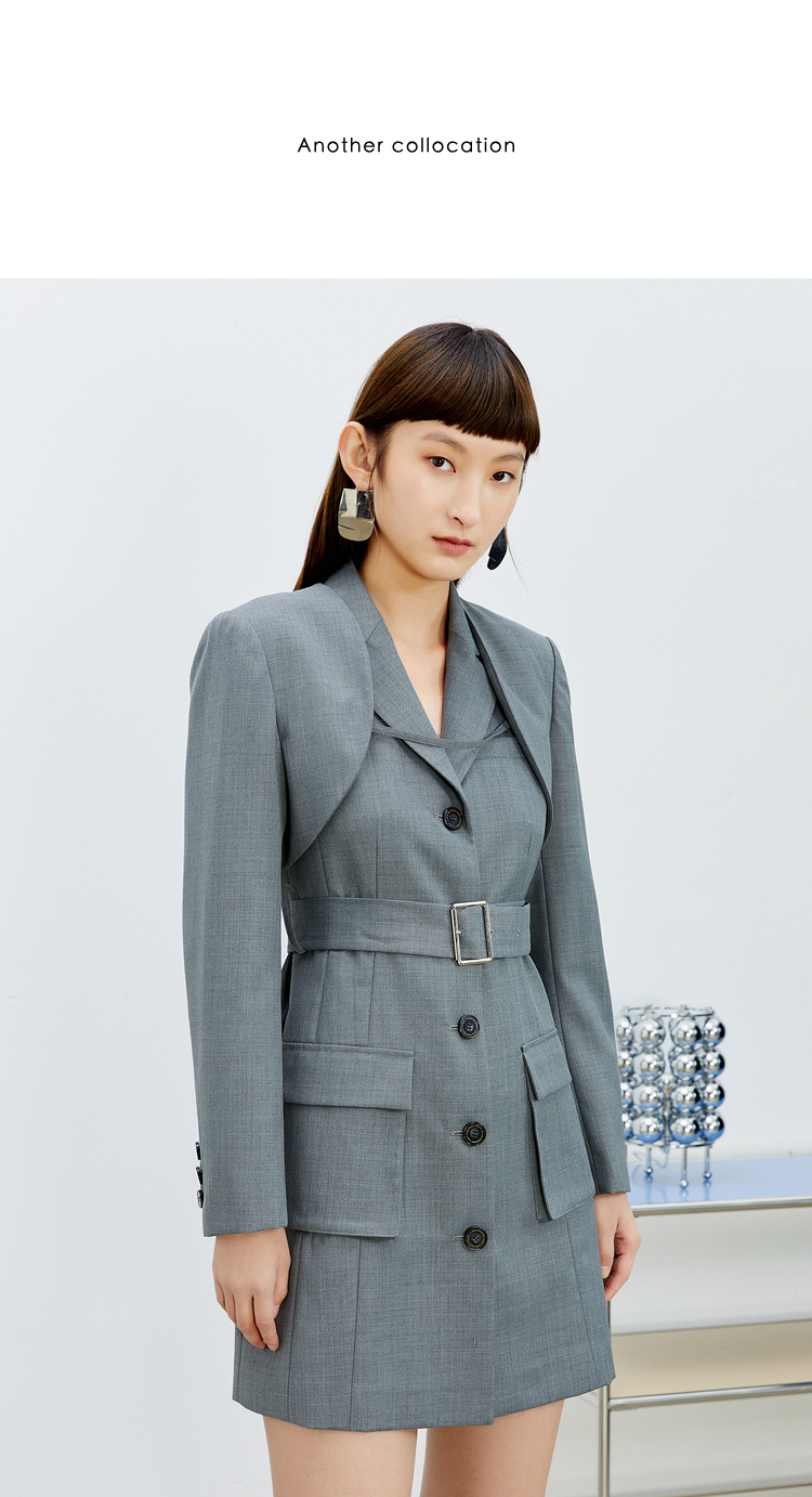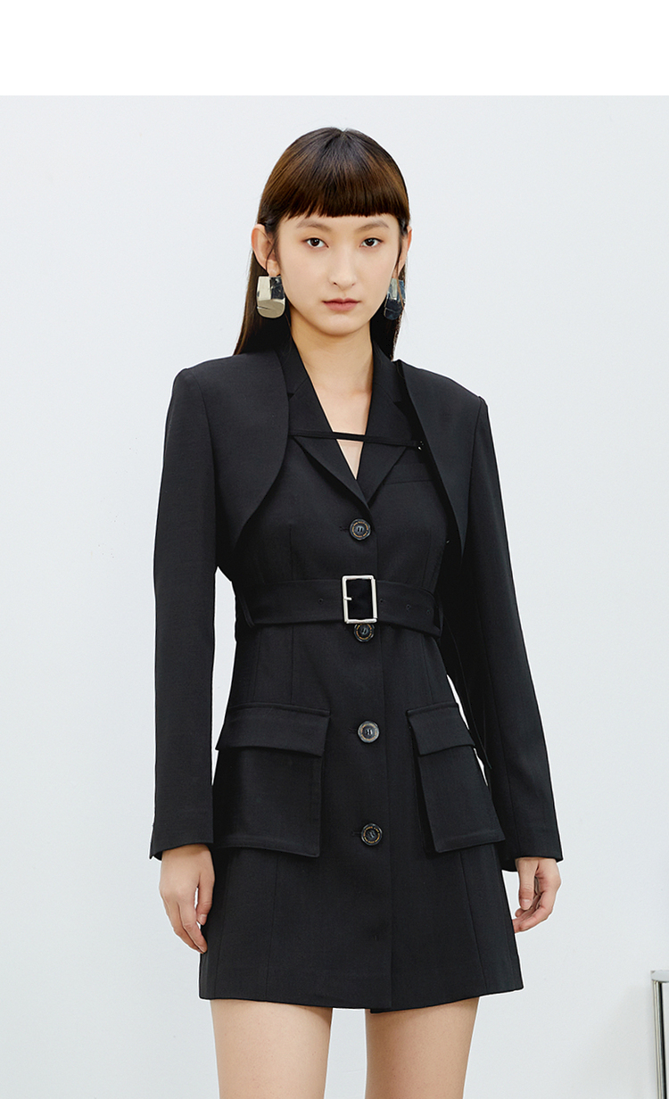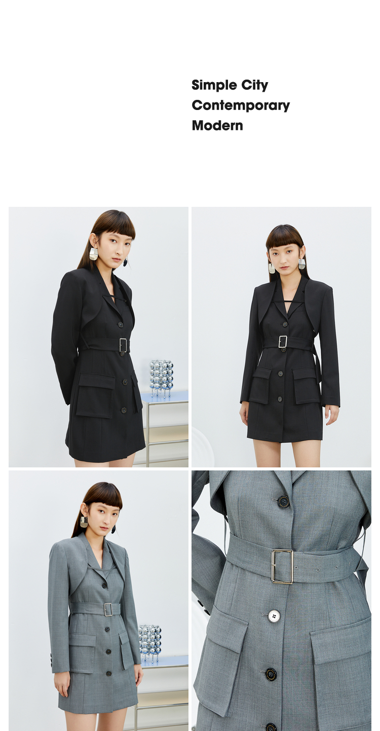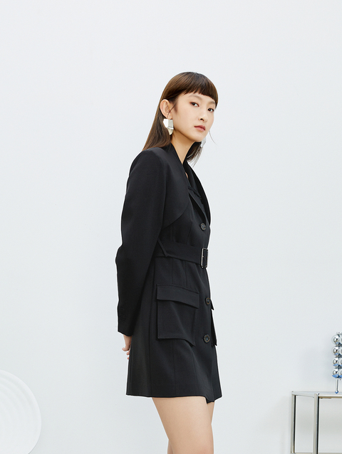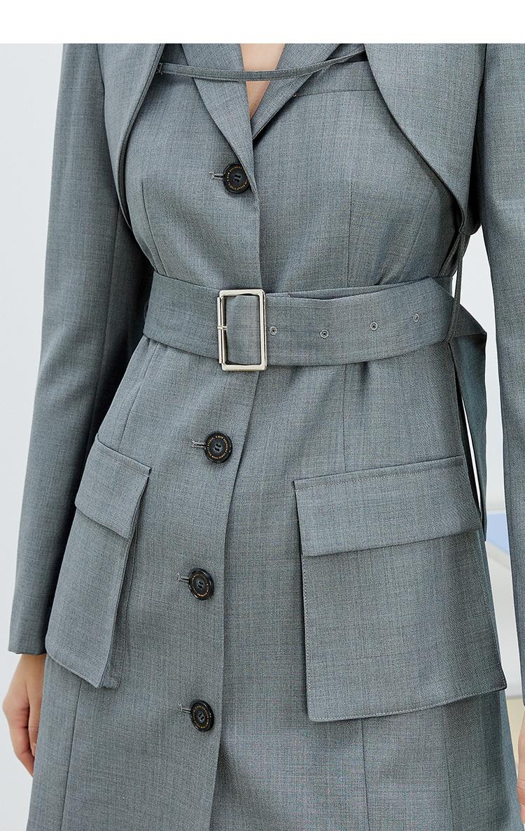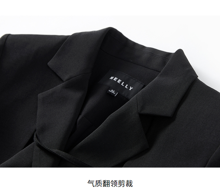 NEELLY纳俪西装连衣裙女中长款单排扣收腰A字裙气质通勤A字裙个性N22031Y01138
