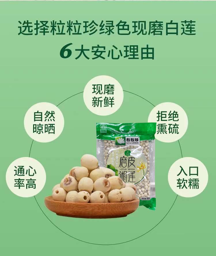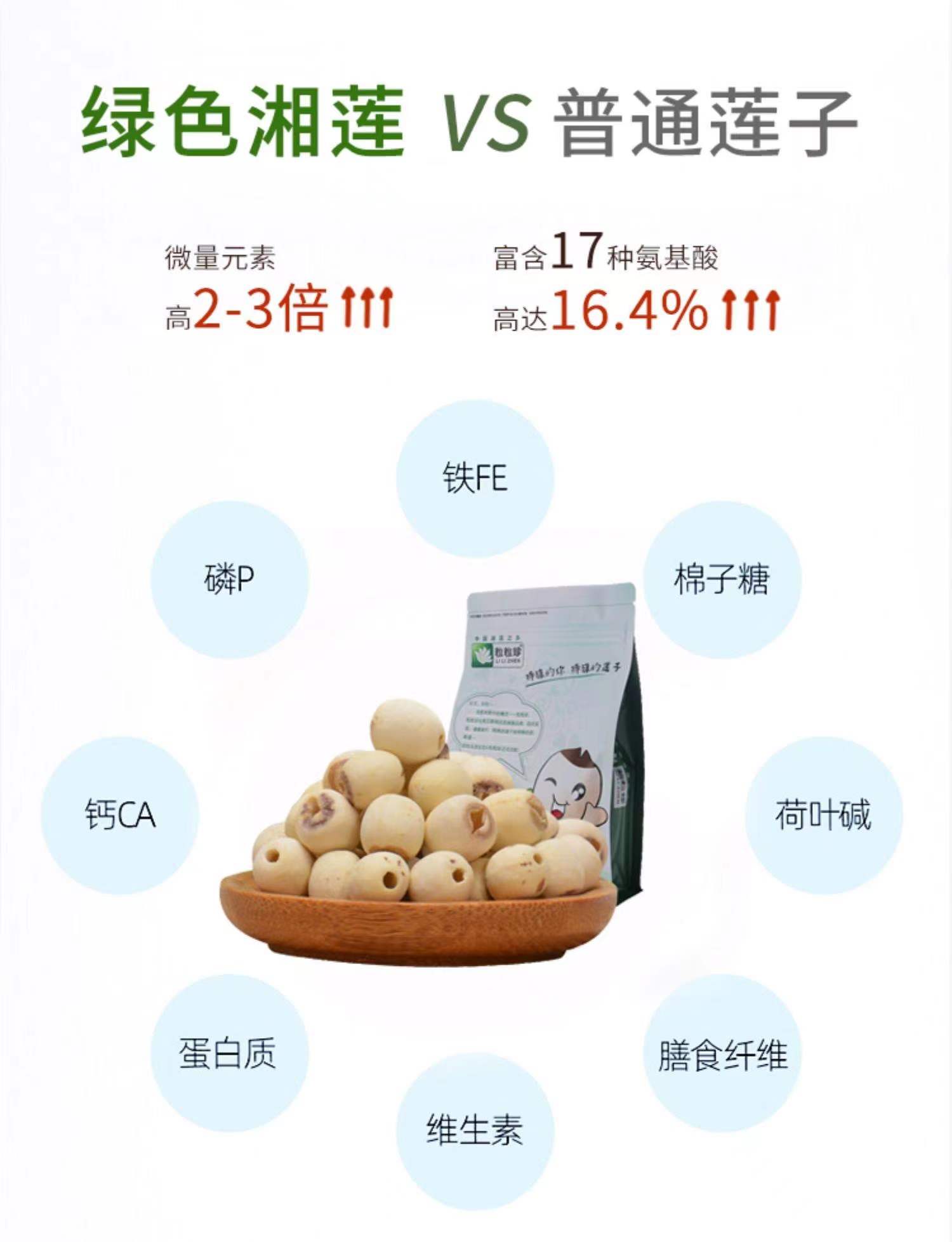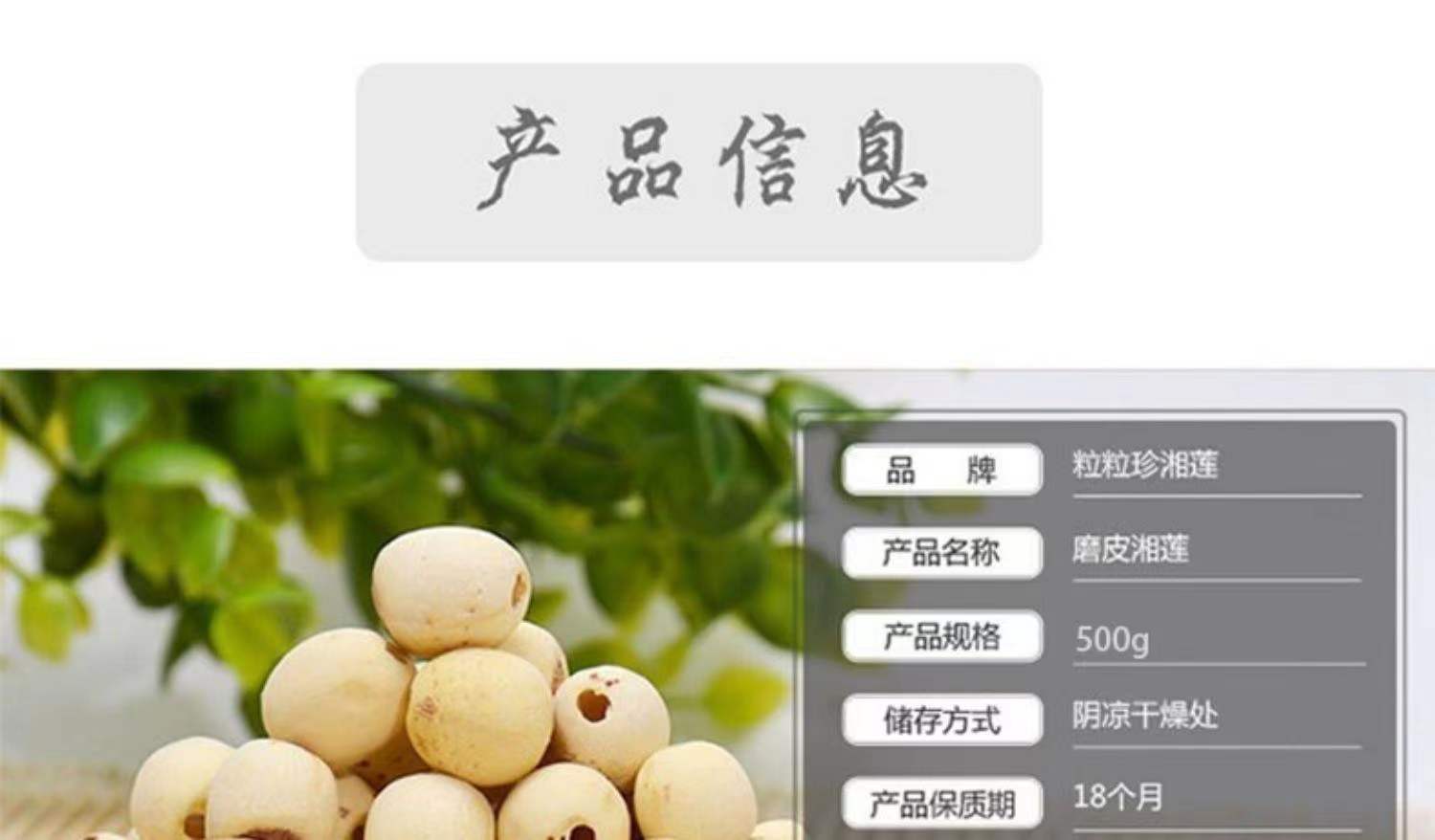 湘潭湘莲干货500g 去芯磨皮白莲子 绿色食品无熏硫 去芯湘莲
