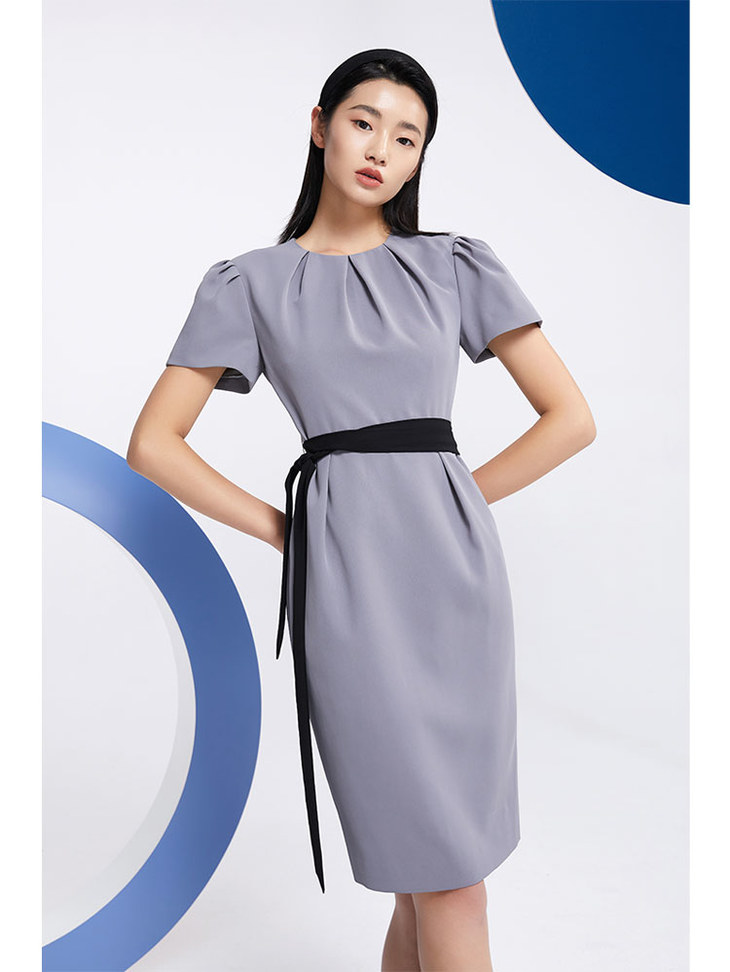 AtelierMissLu—职场大女人高级灰褶皱系带连身裙-0000592