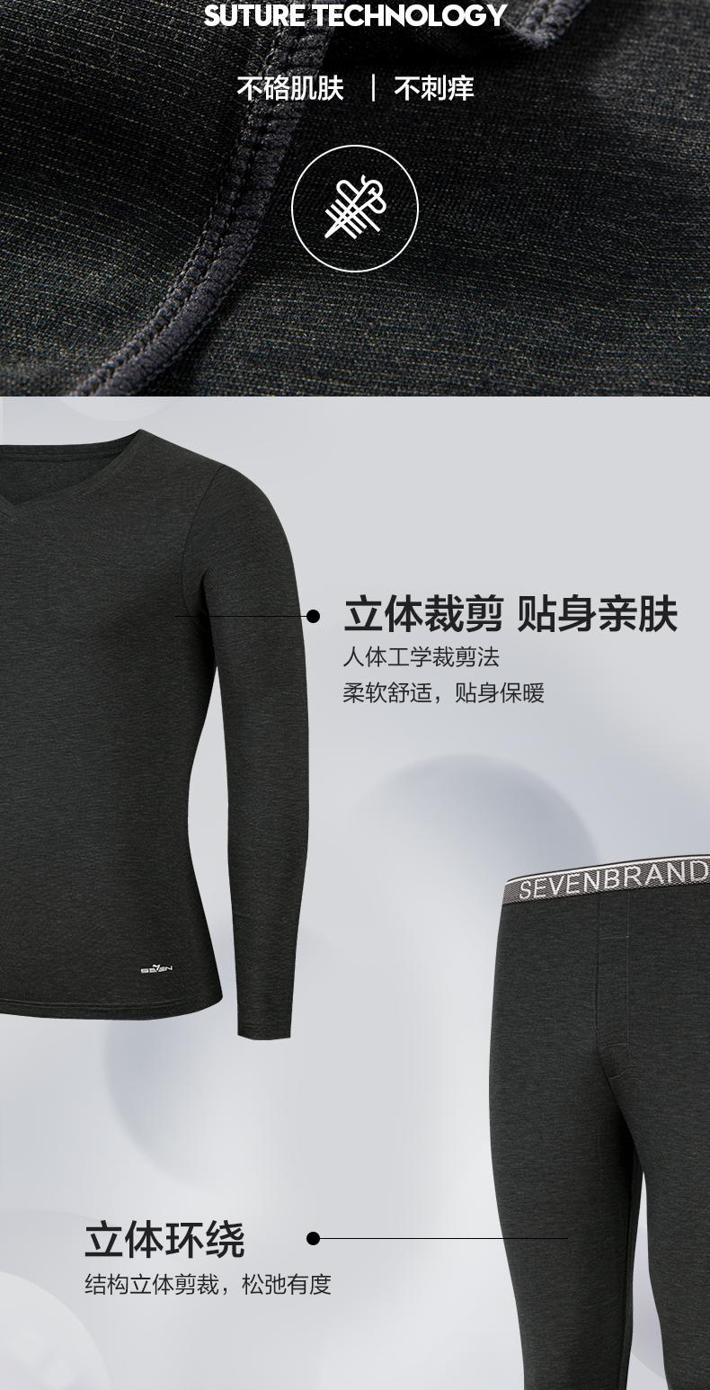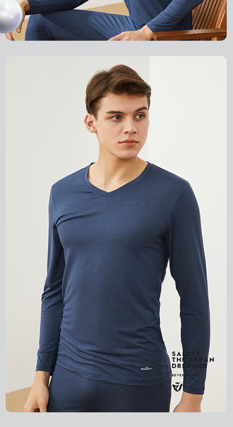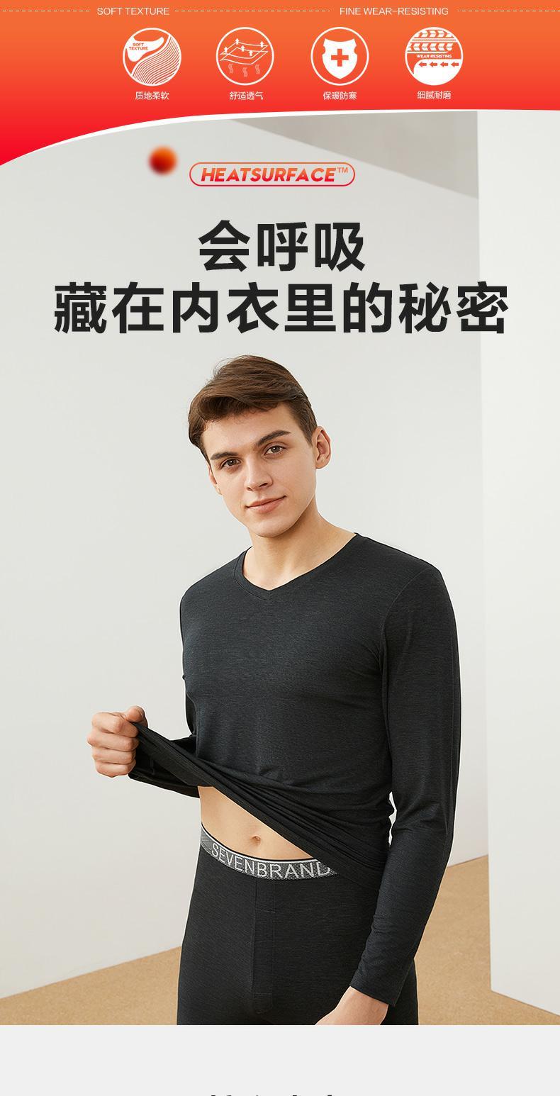 【套装】柒牌男士保暖内衣套装莫代尔V领青年秋衣裤抗菌弹力打底保暖衣服 121F70050