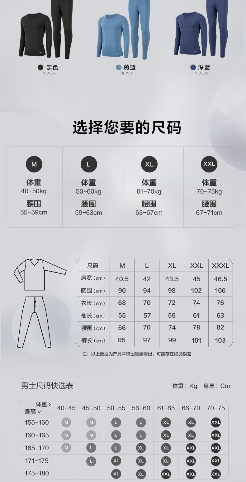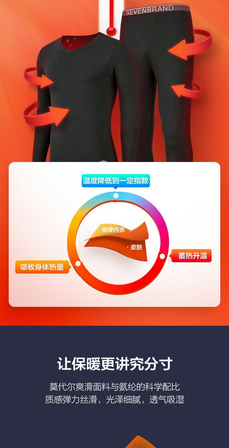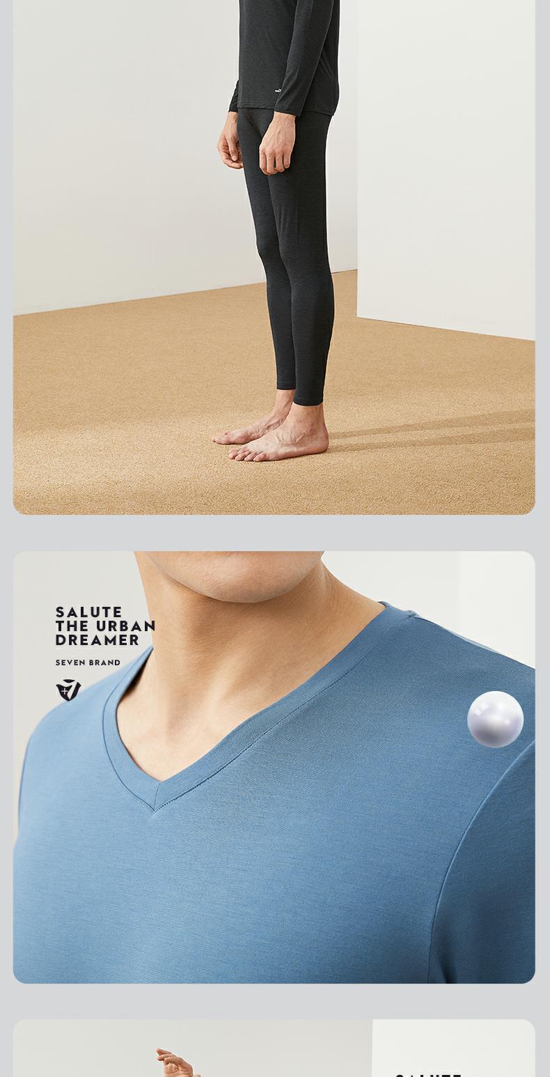 【套装】柒牌男士保暖内衣套装莫代尔V领青年秋衣裤抗菌弹力打底保暖衣服 121F70050